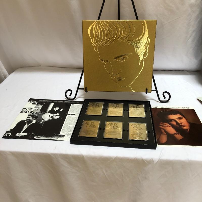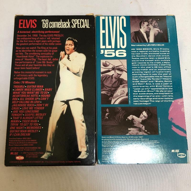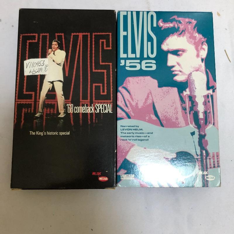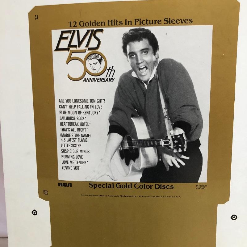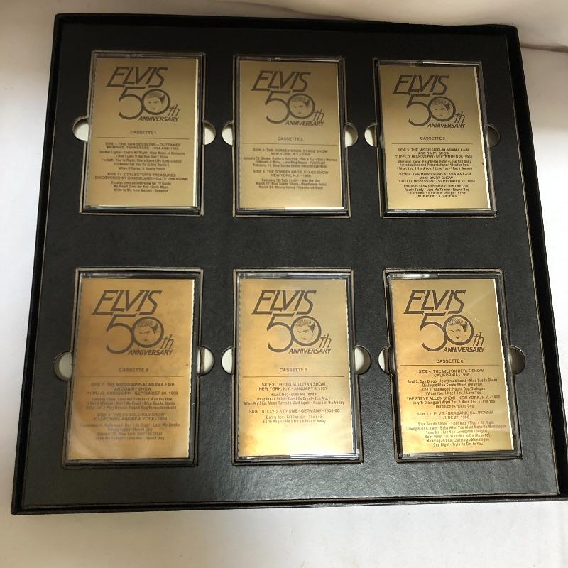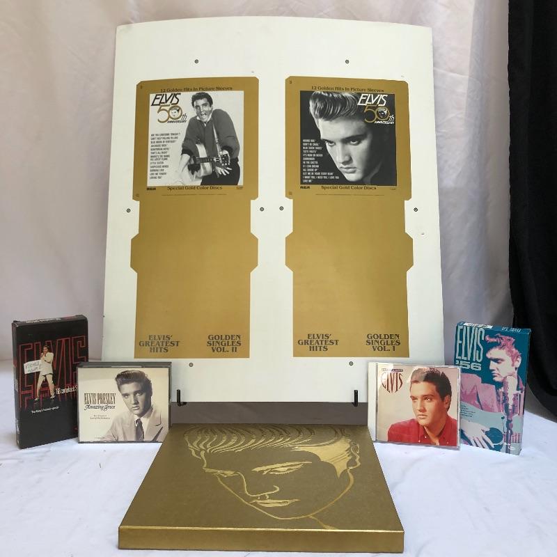 A great gift for the fan of the king of rock and roll. Lot includes two CDs, two VHS specials, fiftieth anniversary cassette set and a rare uncut double- record sleeves measuring about 22” x 26.”