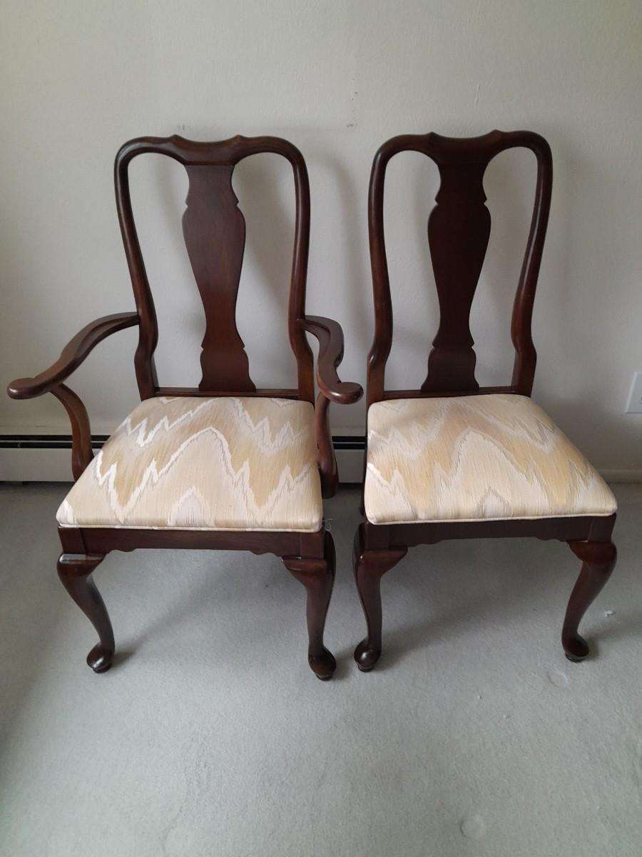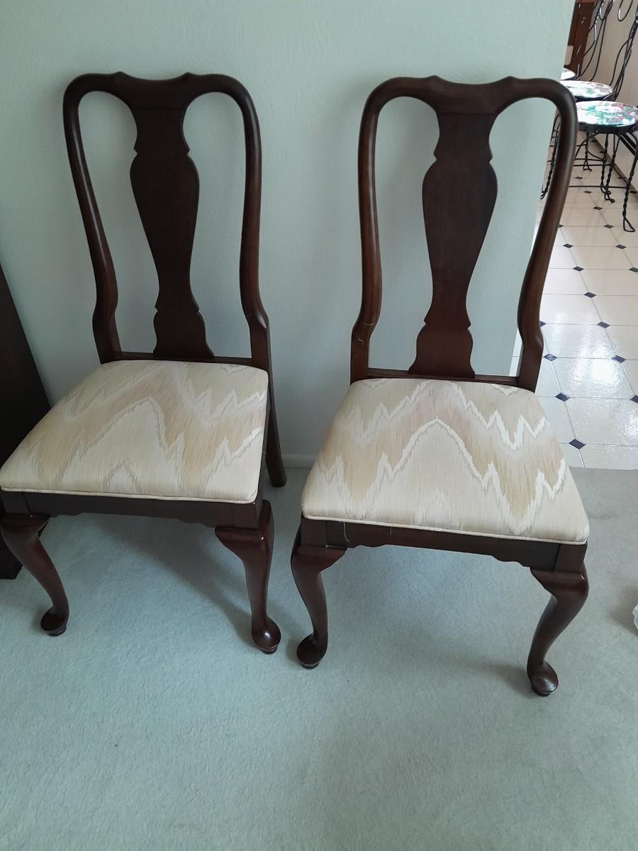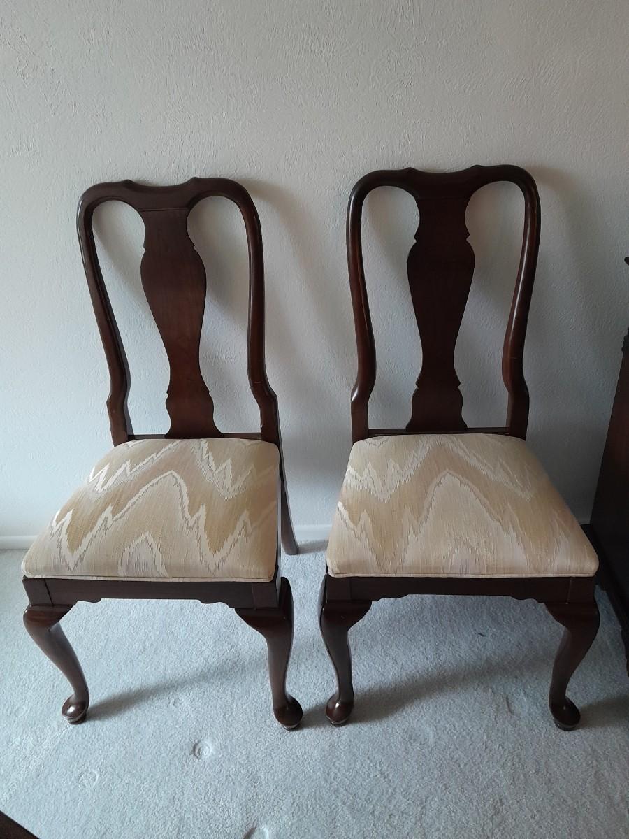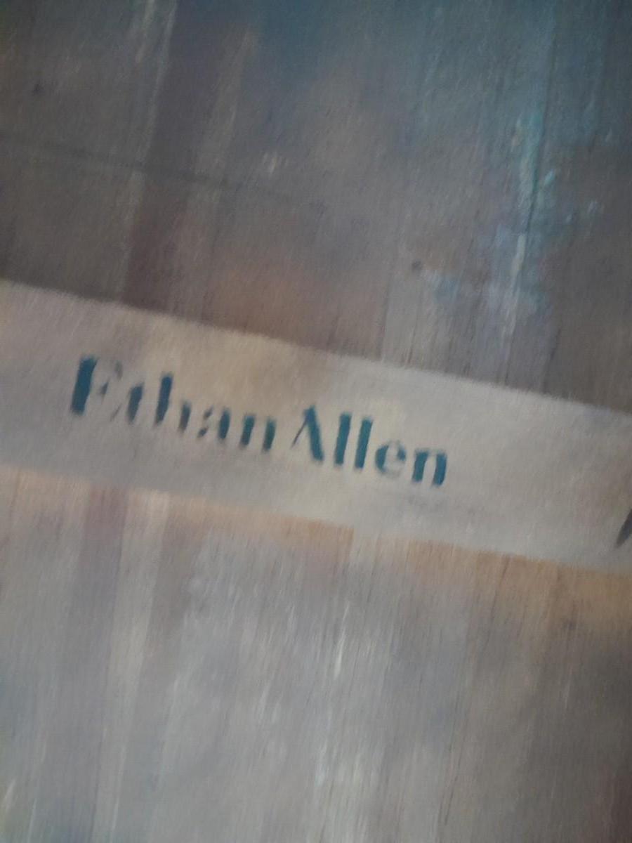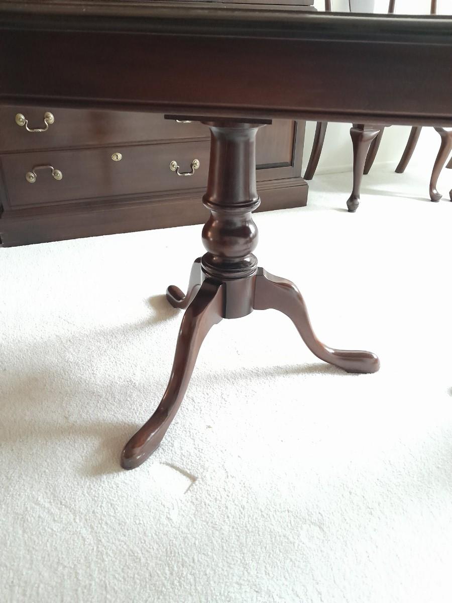 ETHAN ALLEN TABLE 29" X 66" X 42" TWO LEAVES 42" X 18" EACH. 6 CHAIRS, AND TOP PROTECTORS.