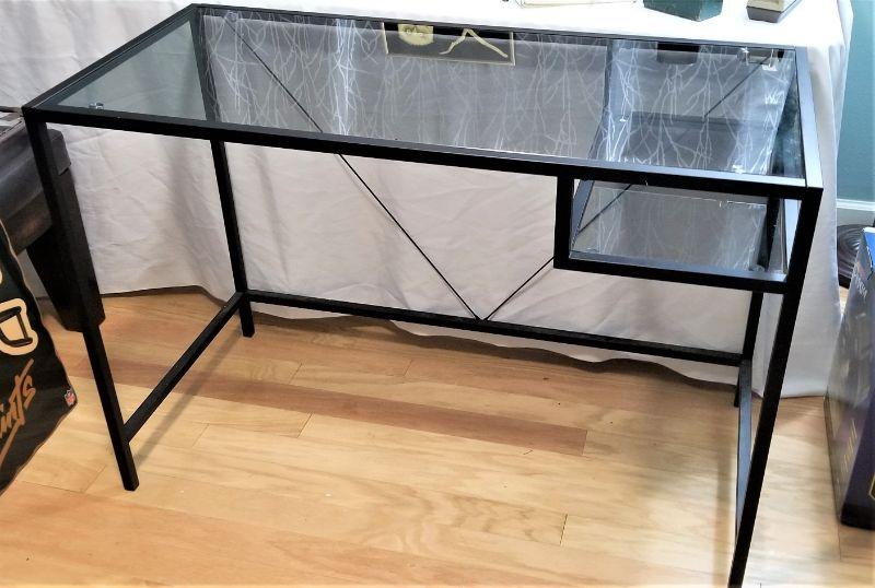 Good condition - glass/metal computer or gaming desk. Measures 43.5" across, 20.5" deep, 25.5" tall.