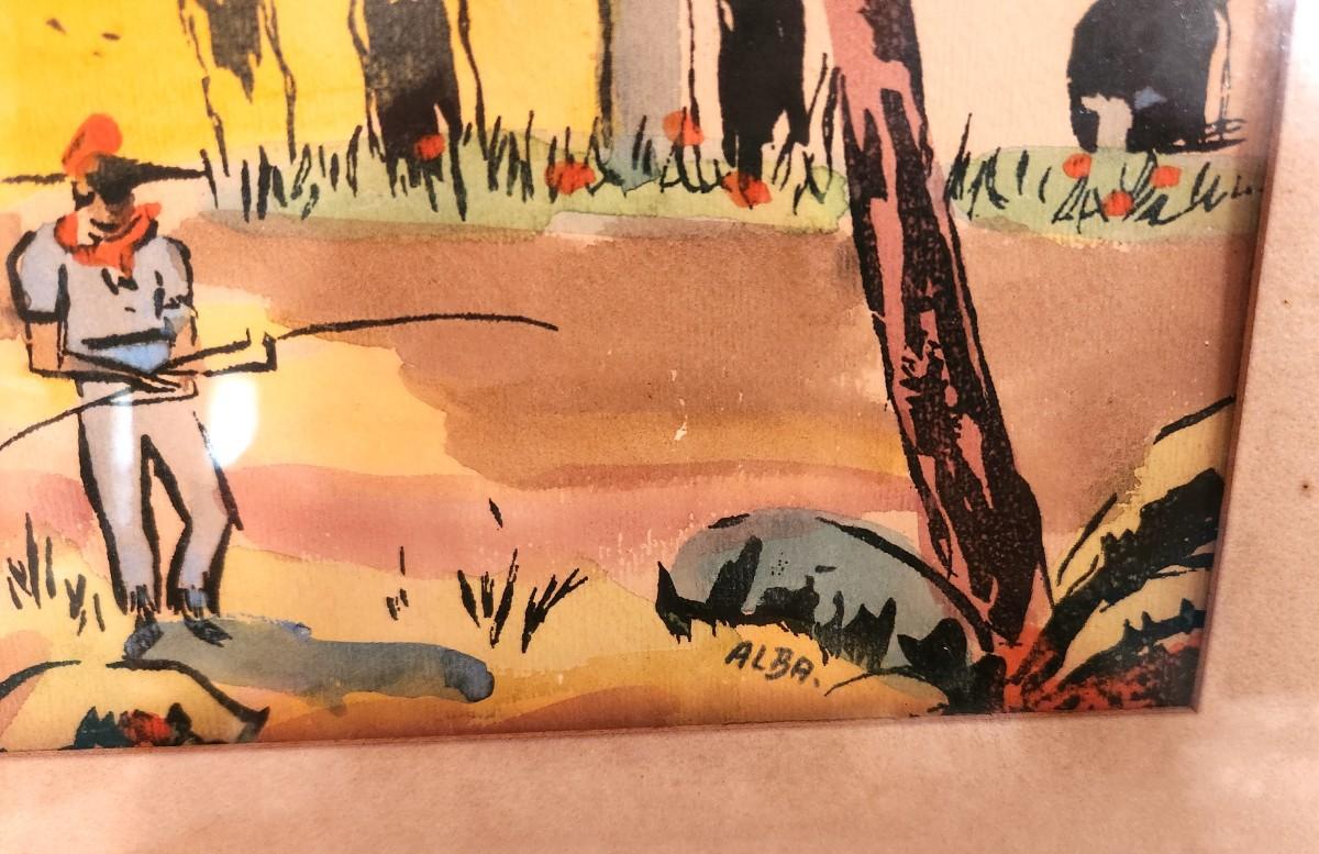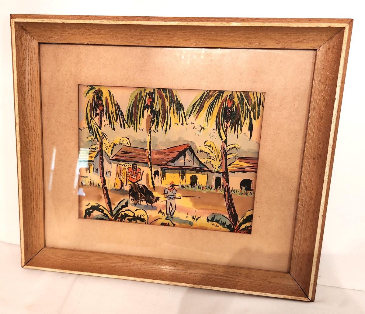Lot #93 Great Mid-Century Modern Watercolor - Tropical Scene - signed