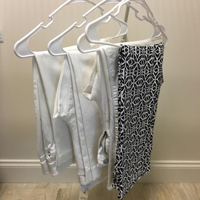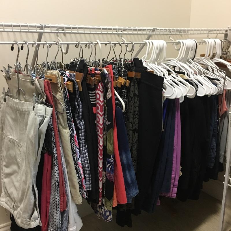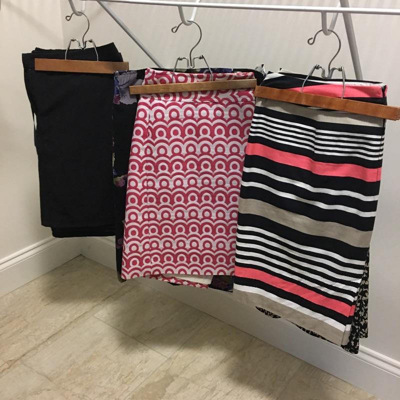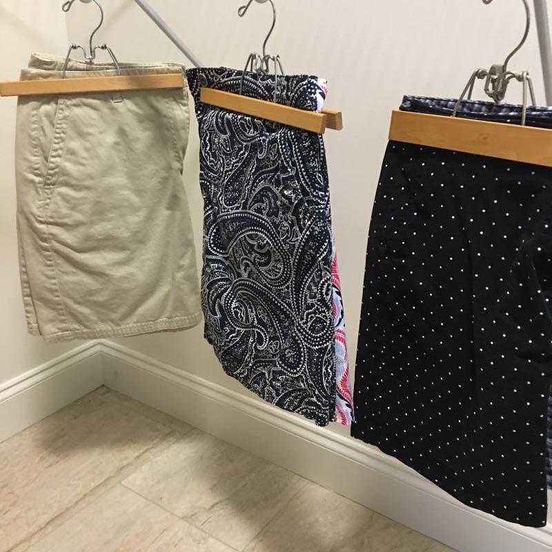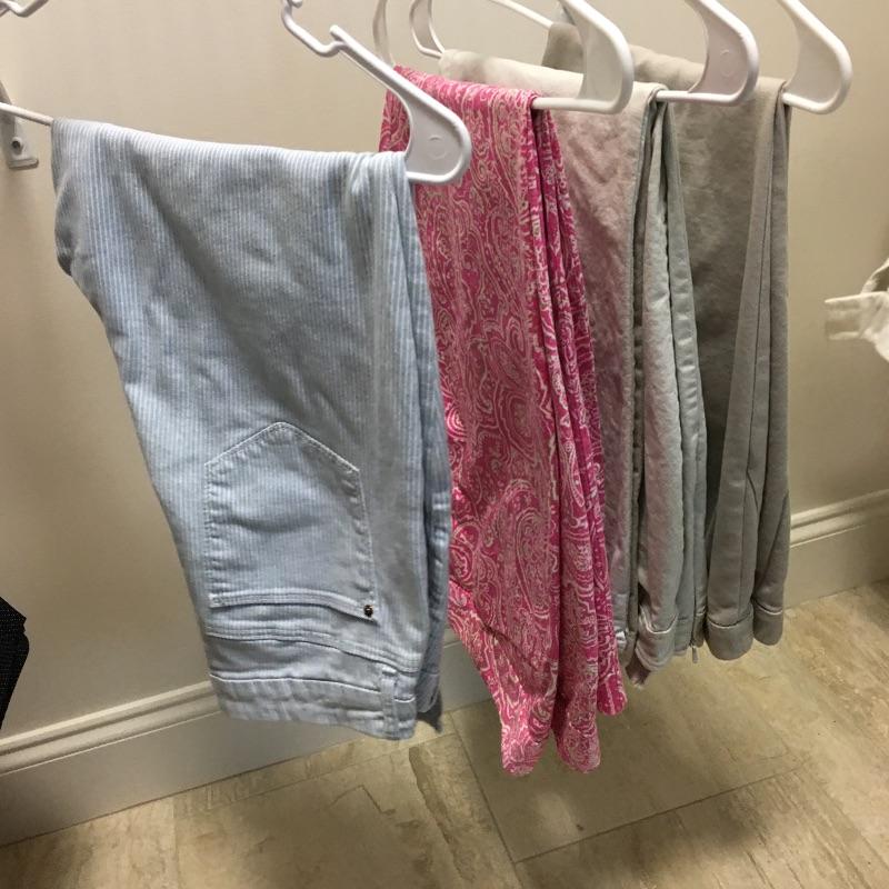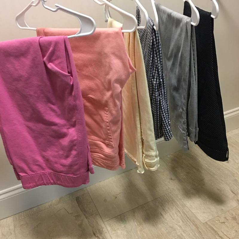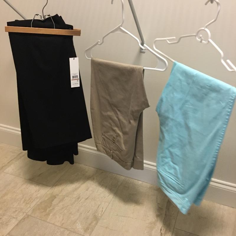 Large lot of bottoms to go with all of your tops! Lot includes a plethora of ladies pants, shorts and skirt s in a variety of colors, styles and materials. Brands include Lauren, St. John’s Bay Charter Club, Calvin Klein, Talbots and more. Most are sized petite L-XL. All hangers included including the wooden ones!