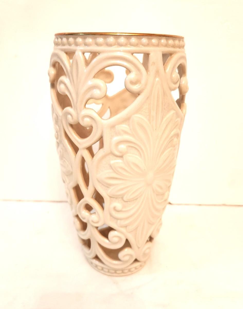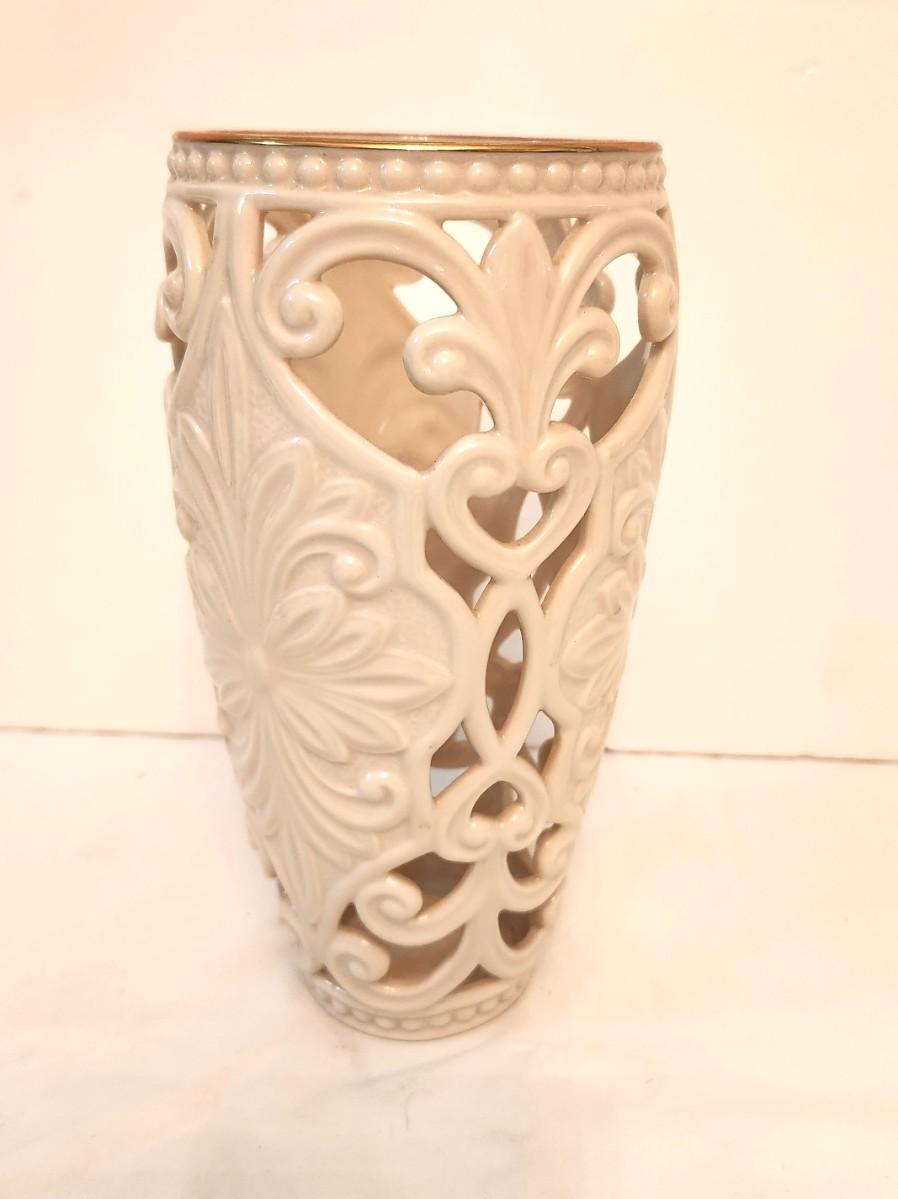 Pretty LENOX brand porcelain pierced vase - good condition, 8" tall.