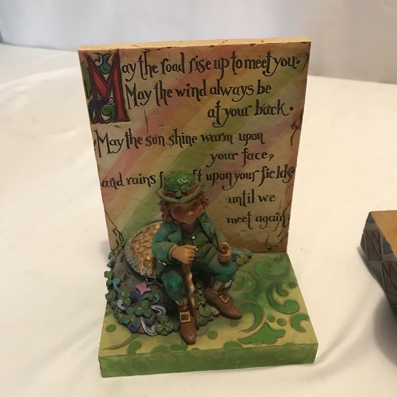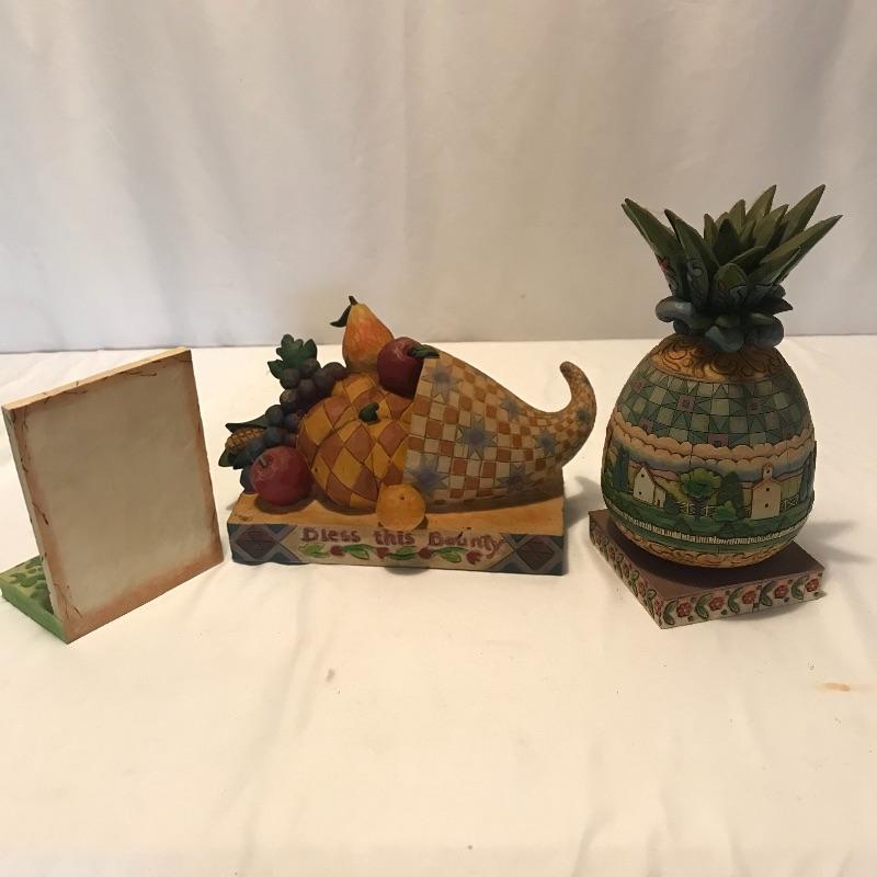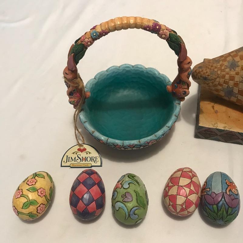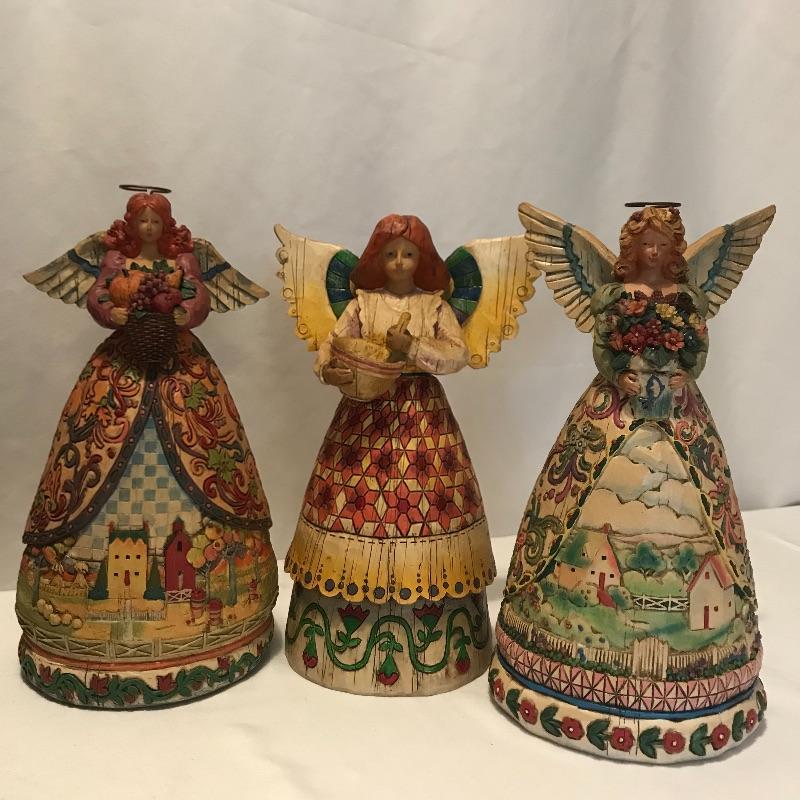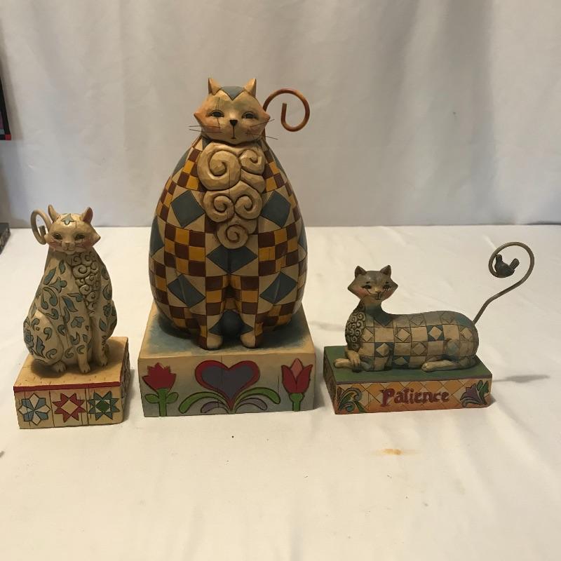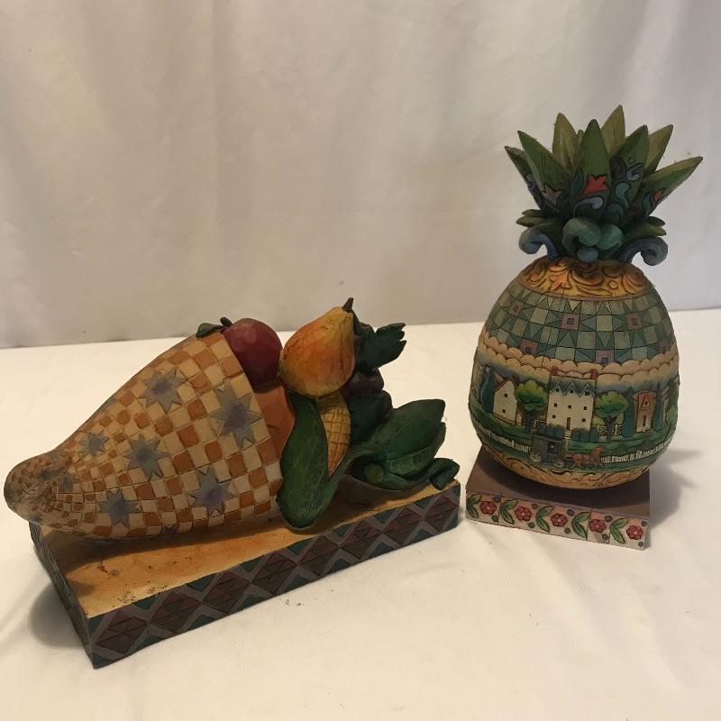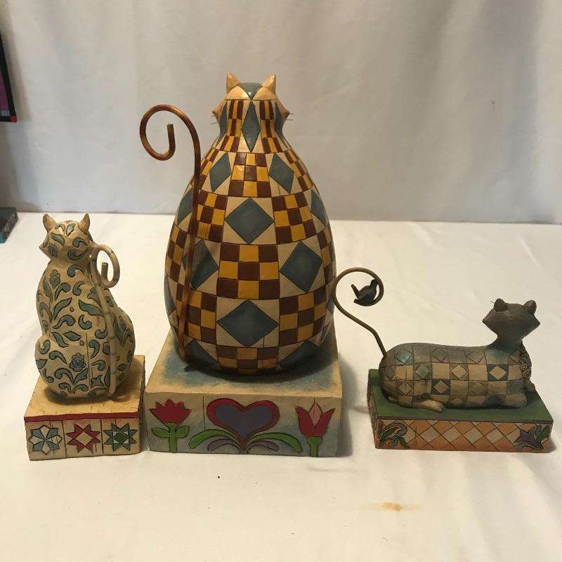 Fifteen Jim Shore collectibles to adorn your house with “quilted” colors! A hanging cross, five large angels with various themes and a 12” tall woman titled “Give Thanks”. Lot includes other holidays like Easter and St. Patrick’s Day themes. Two stunning Amish people, three cats and a Pineapple to round out the lot. This large lot is available to ship, but please call UPS at 828-252-6930 for a quote prior to bidding.