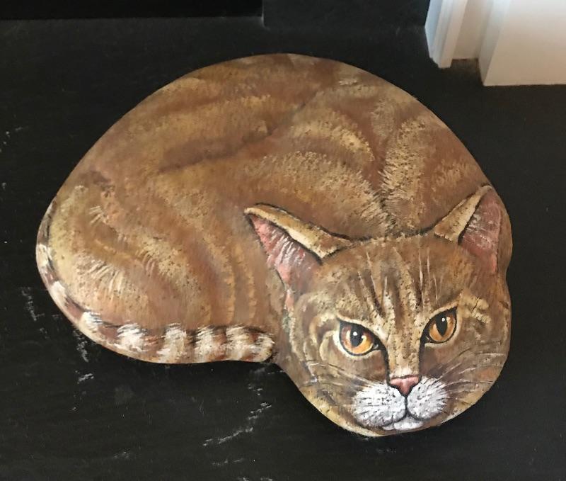 Lot #93 Handpainted Cat Rock Signed by Sandra