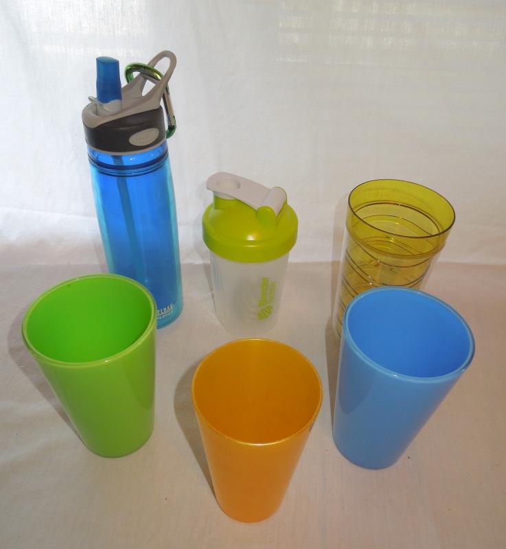 One Camel Bak Water Bottle; Four plastic Pool glasses and One Shaker/Blender Pouring Cup. all like new and clean.