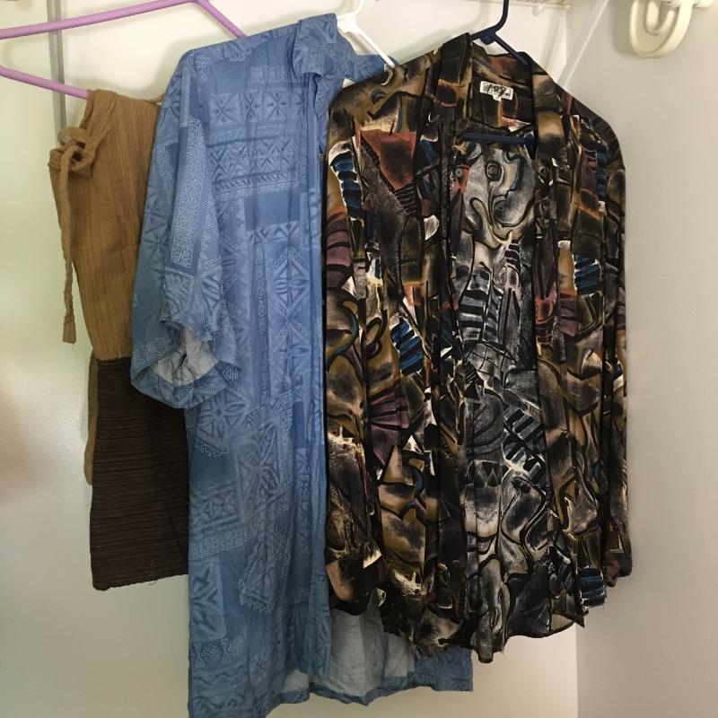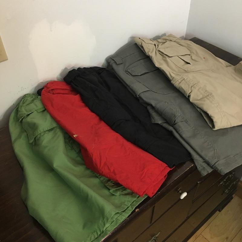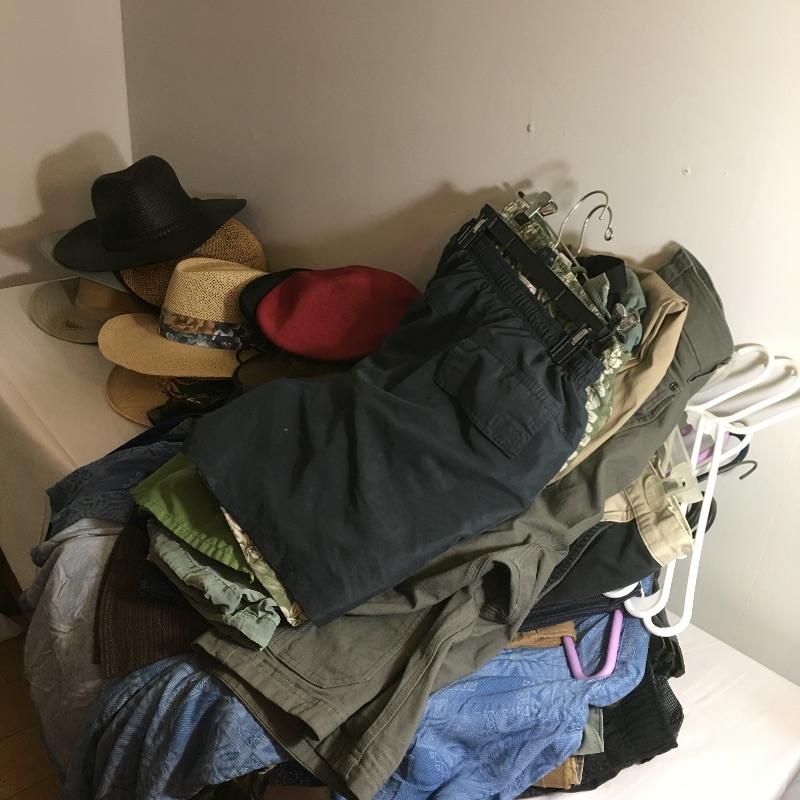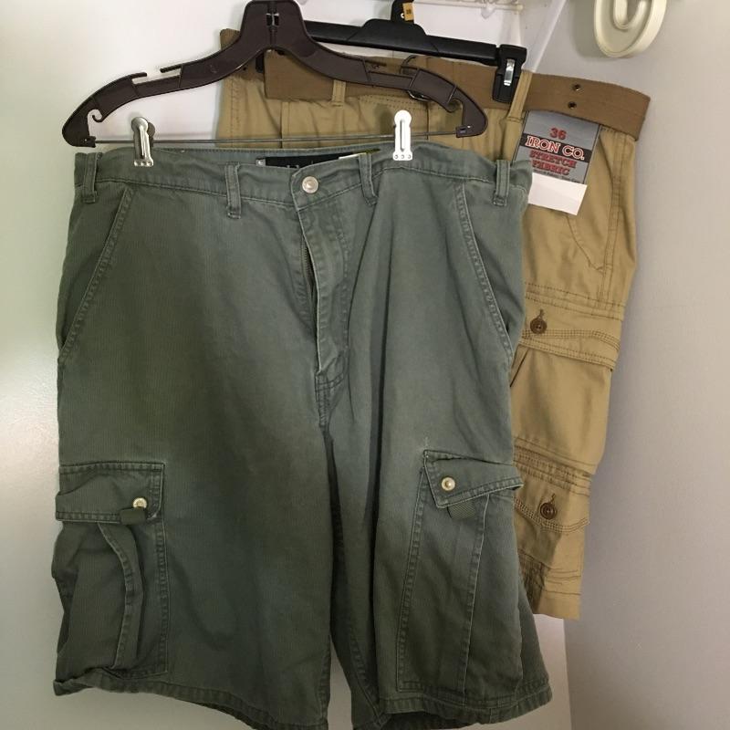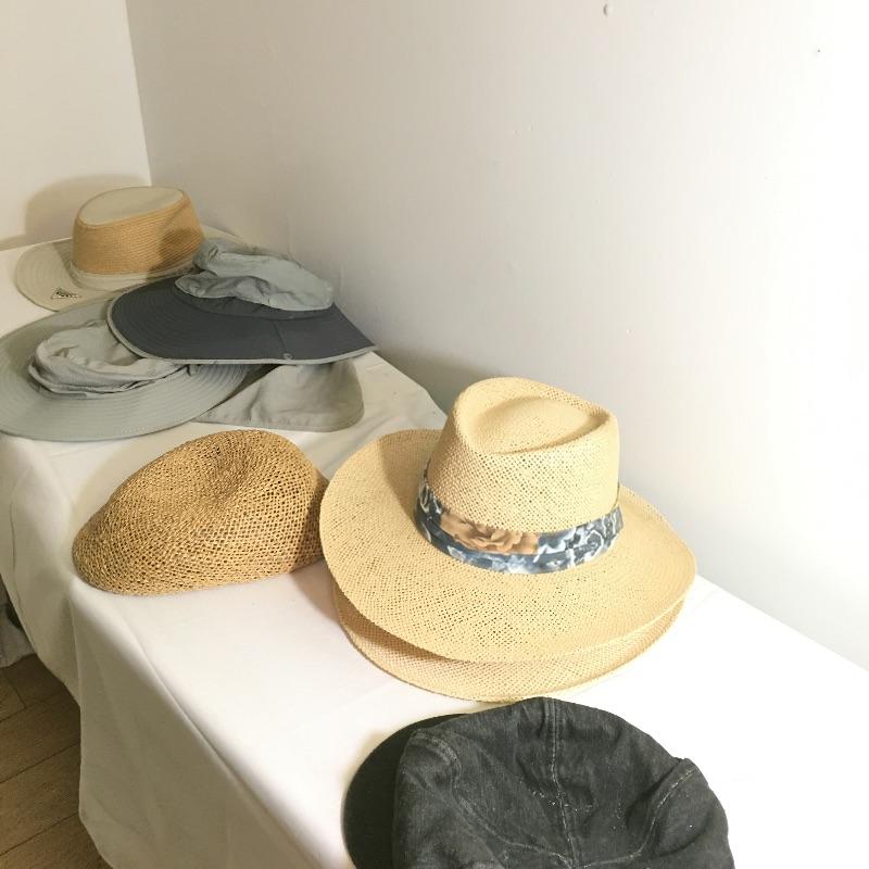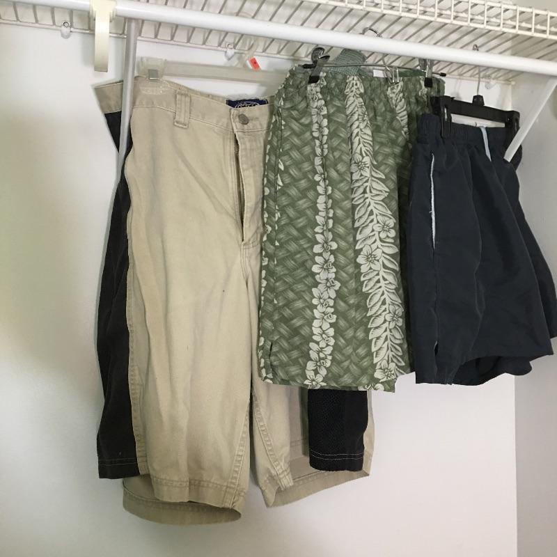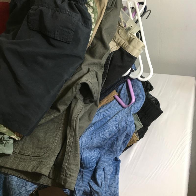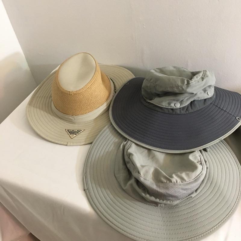 Summer styling. Lot includes hats in a variety of styles including a red Kangol hat, PFG hat, shorts by Duluth Trading, Cargo Supplies and more. Clothes are marked medium and large with some shorts marked 36. See photos for more name brands.