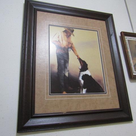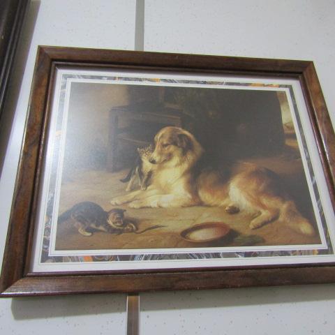 SIGNED FRAMED PHOTO, DOG AND CATS & MAN AND DOG