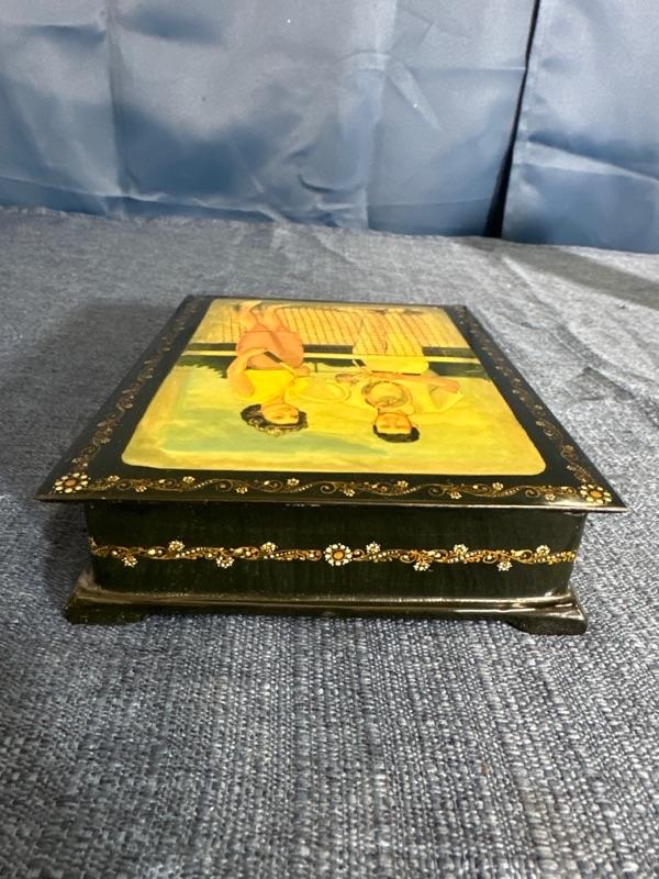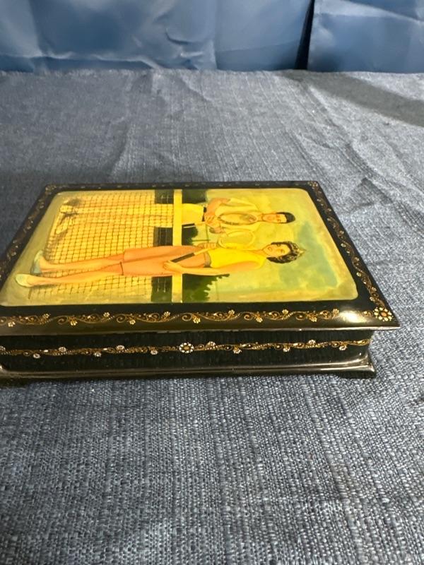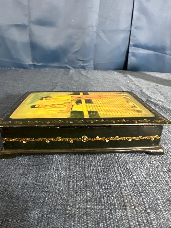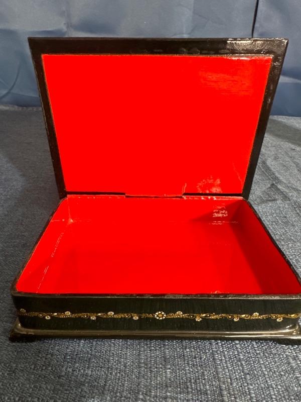 Lot 93 vintage black Lacquer box with inlay