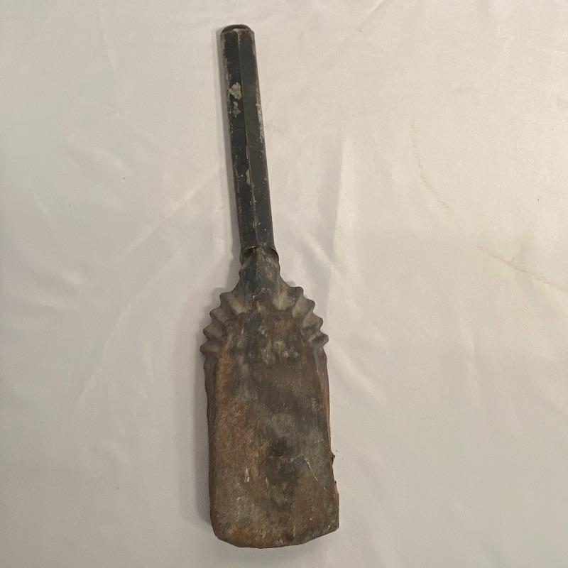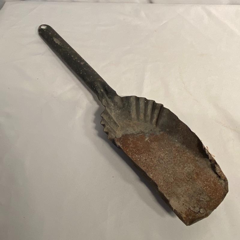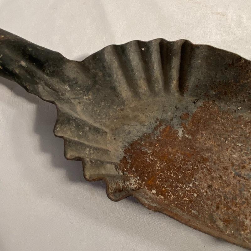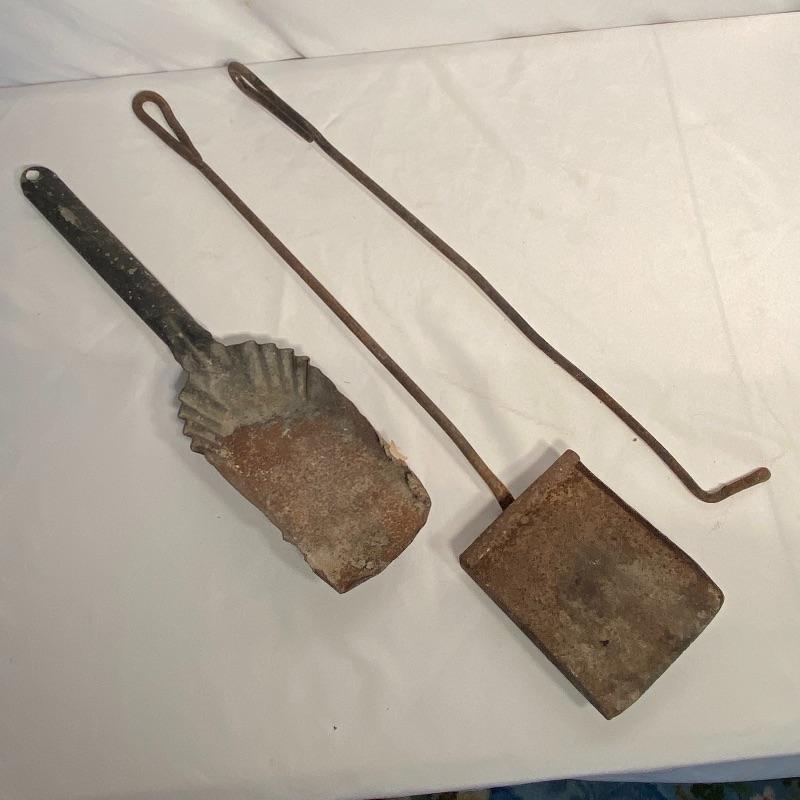 Add charm to your fireplace! These iron fireplace tools can add functionality or decor to your setup. Curved handle on both poker and ash scoop. Useful handheld scoop with nice details. Rust and chips due to age, see photos. Shipping available.