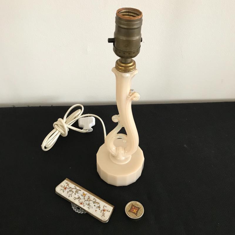 Lot 93 - Vintage Lamp, Pill Box and Comb