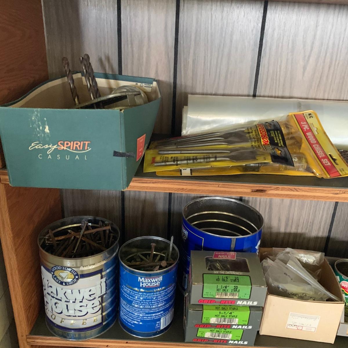 LOT 8R: Everything on the Shelves: Drill Bits, Nails, Screws and More