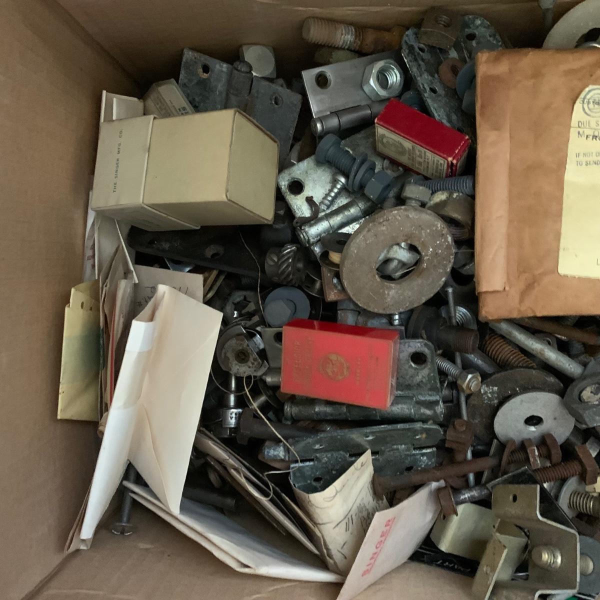 LOT 21R: Very HeavyBox of Sewing Machine Parts, Bobbins & So Much More