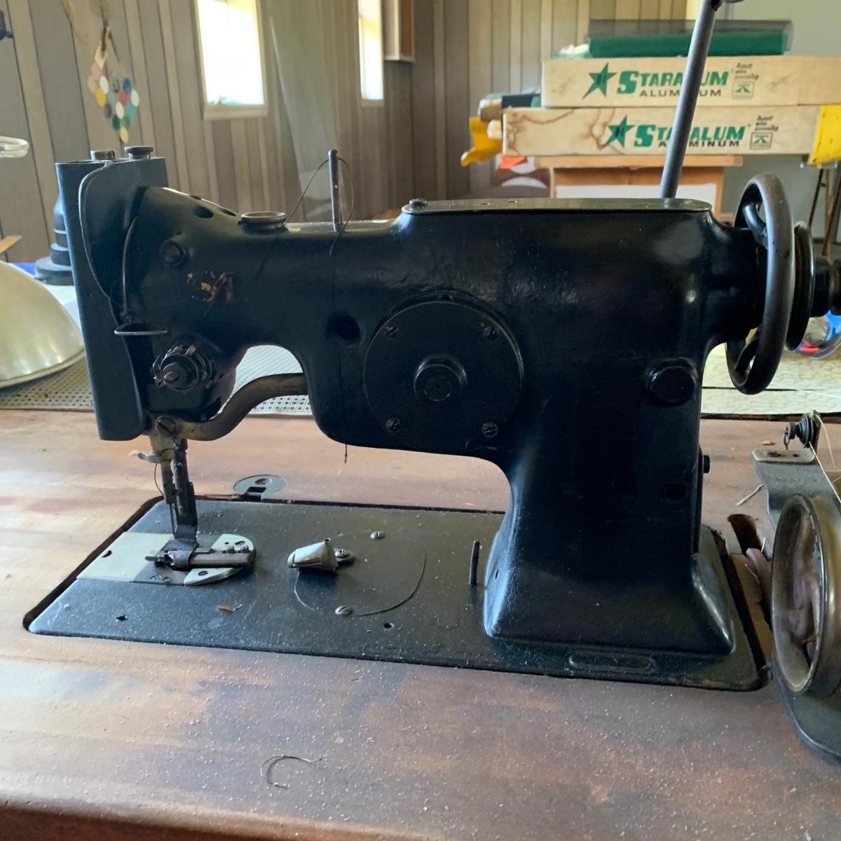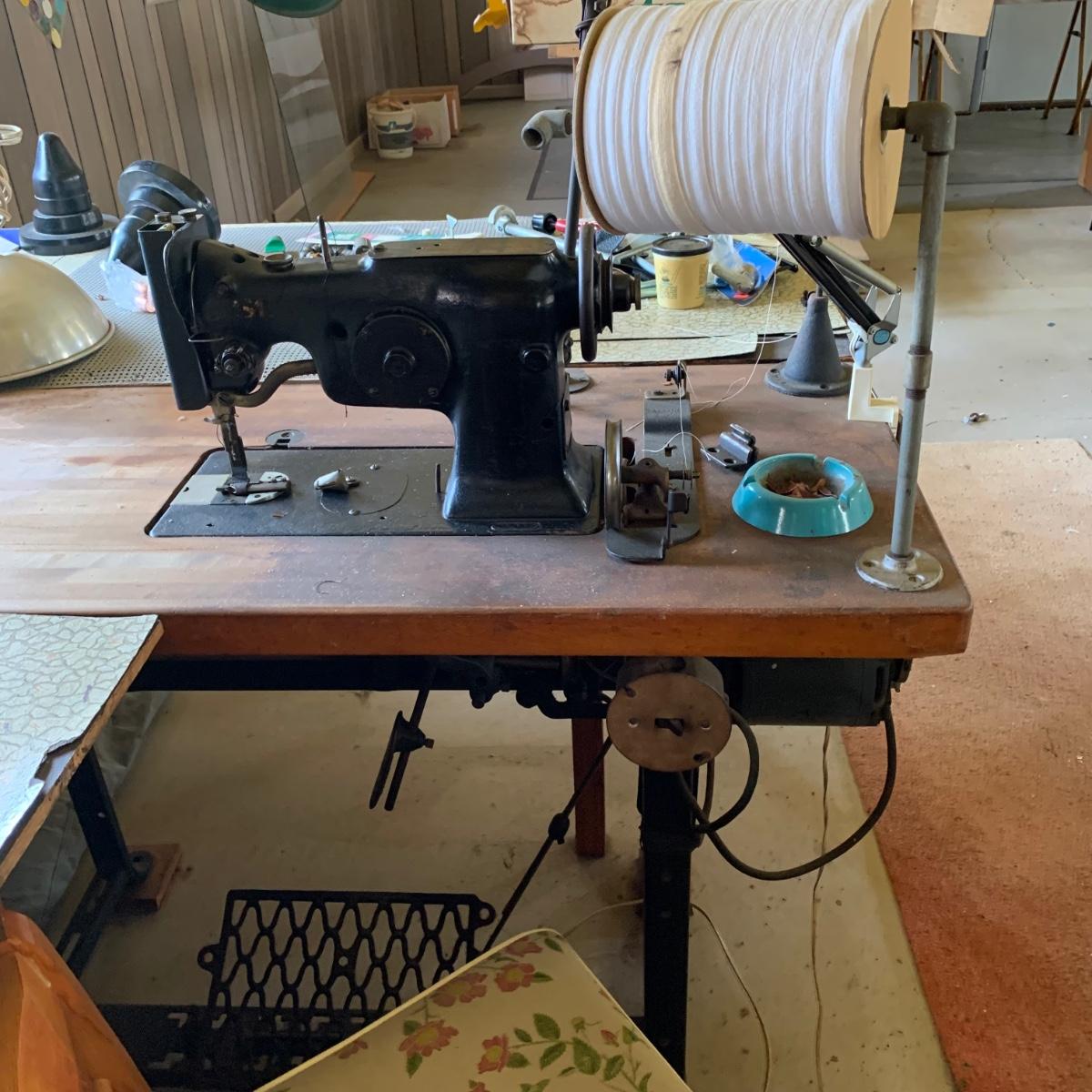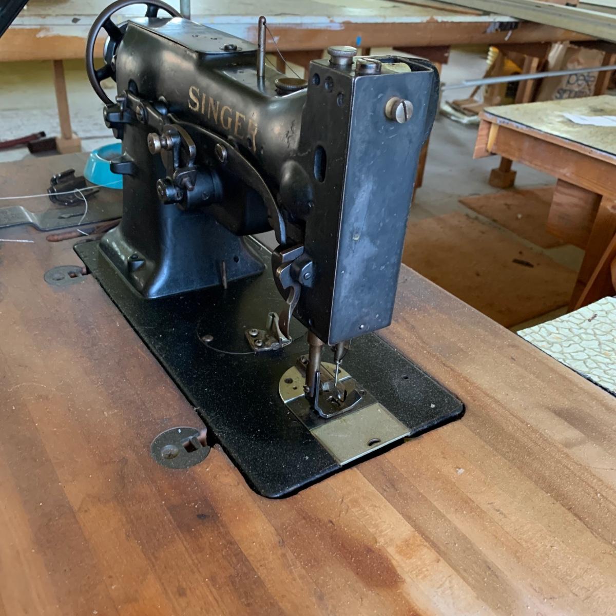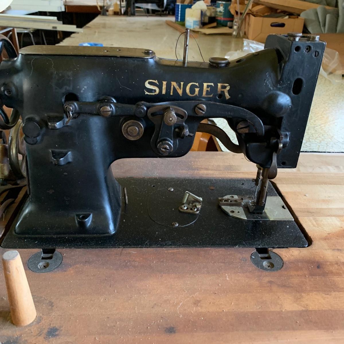 LOT 23R: Industrial Singer Sewing Machine & Commercial Grade Table