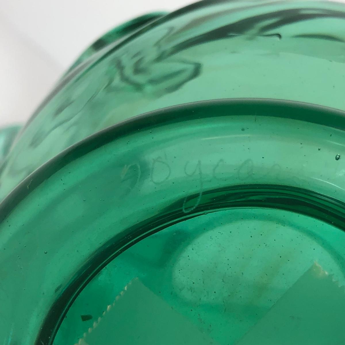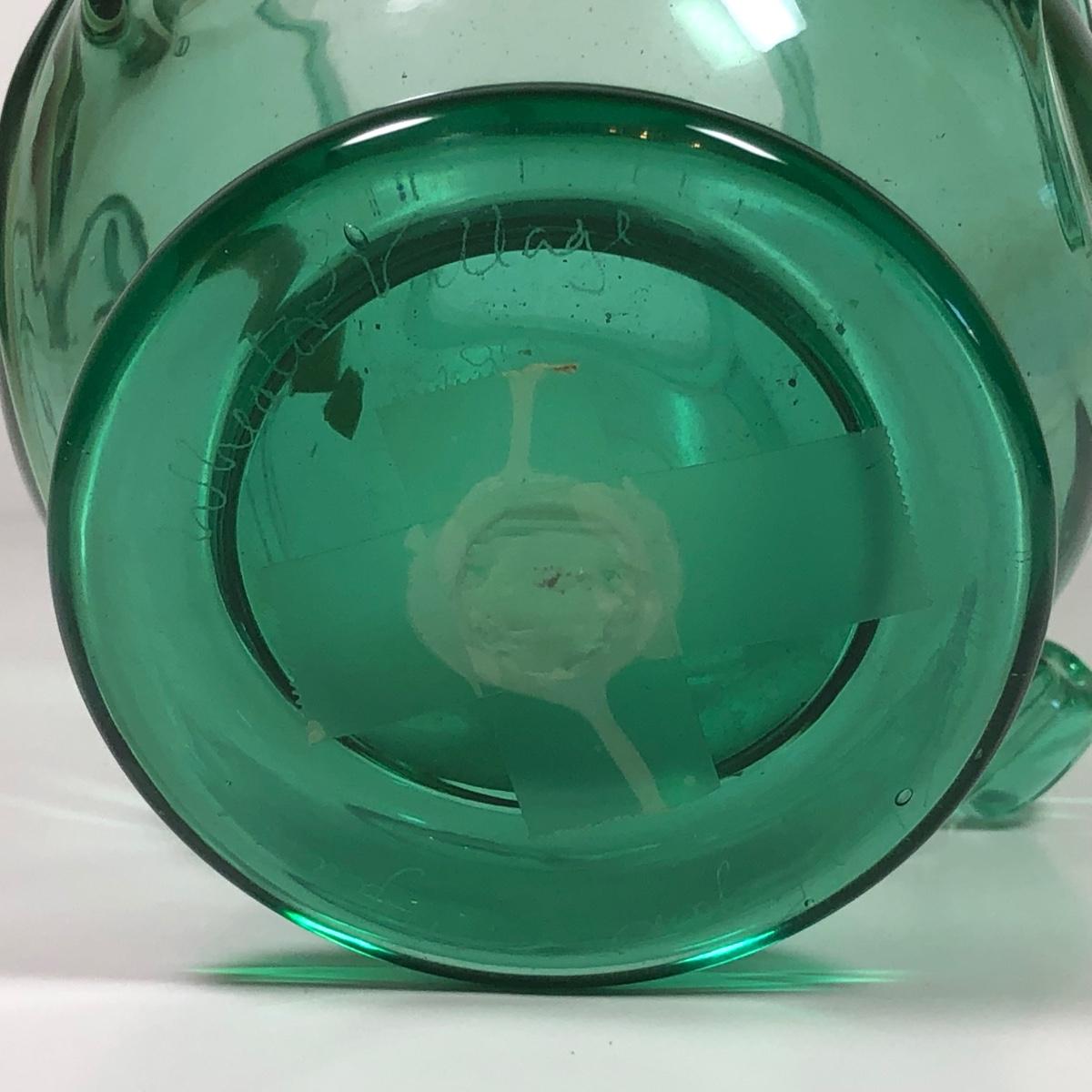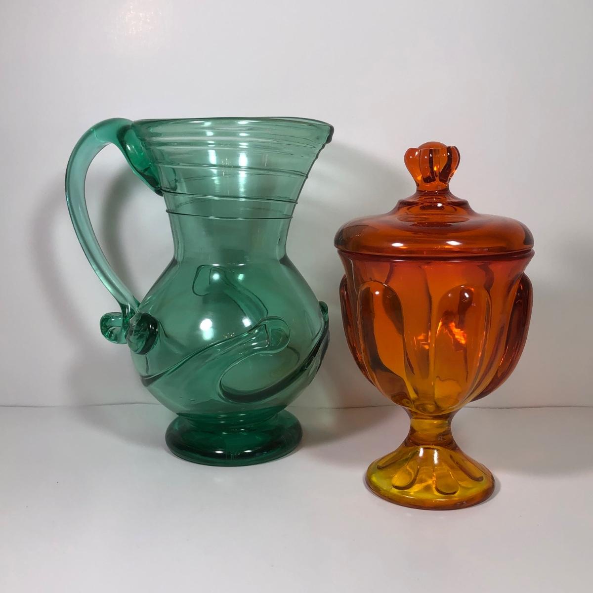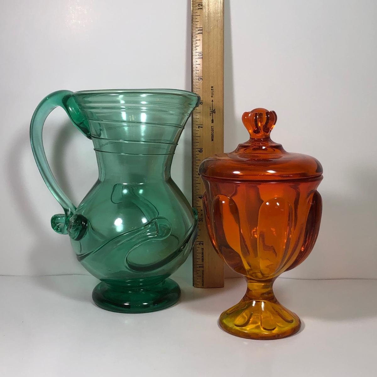 LOT 35M: Viking Glass Amberina Candy Dish & 1999 Signed Teal/Green Wheaton Village Glass Pitcher