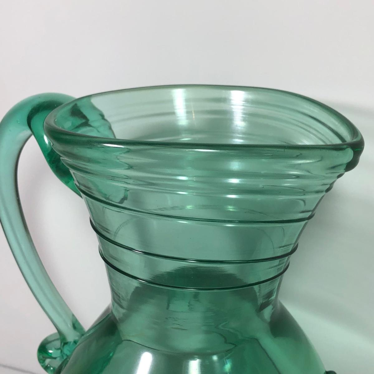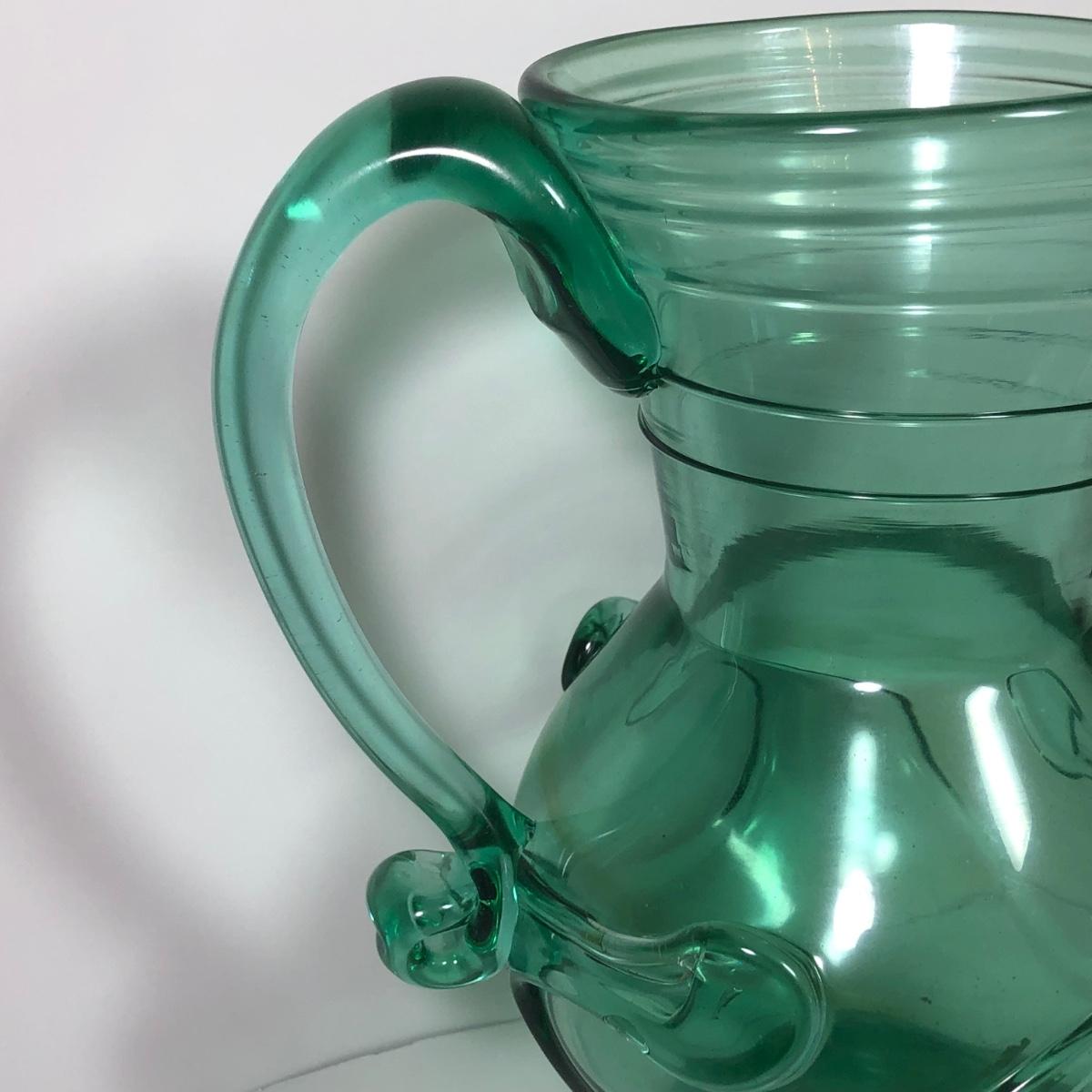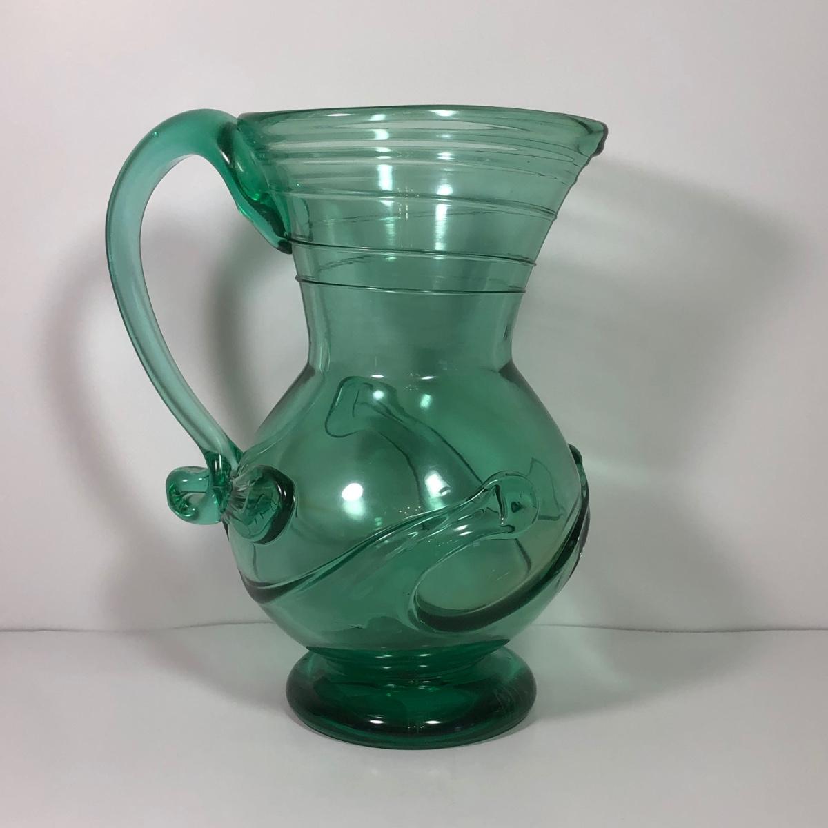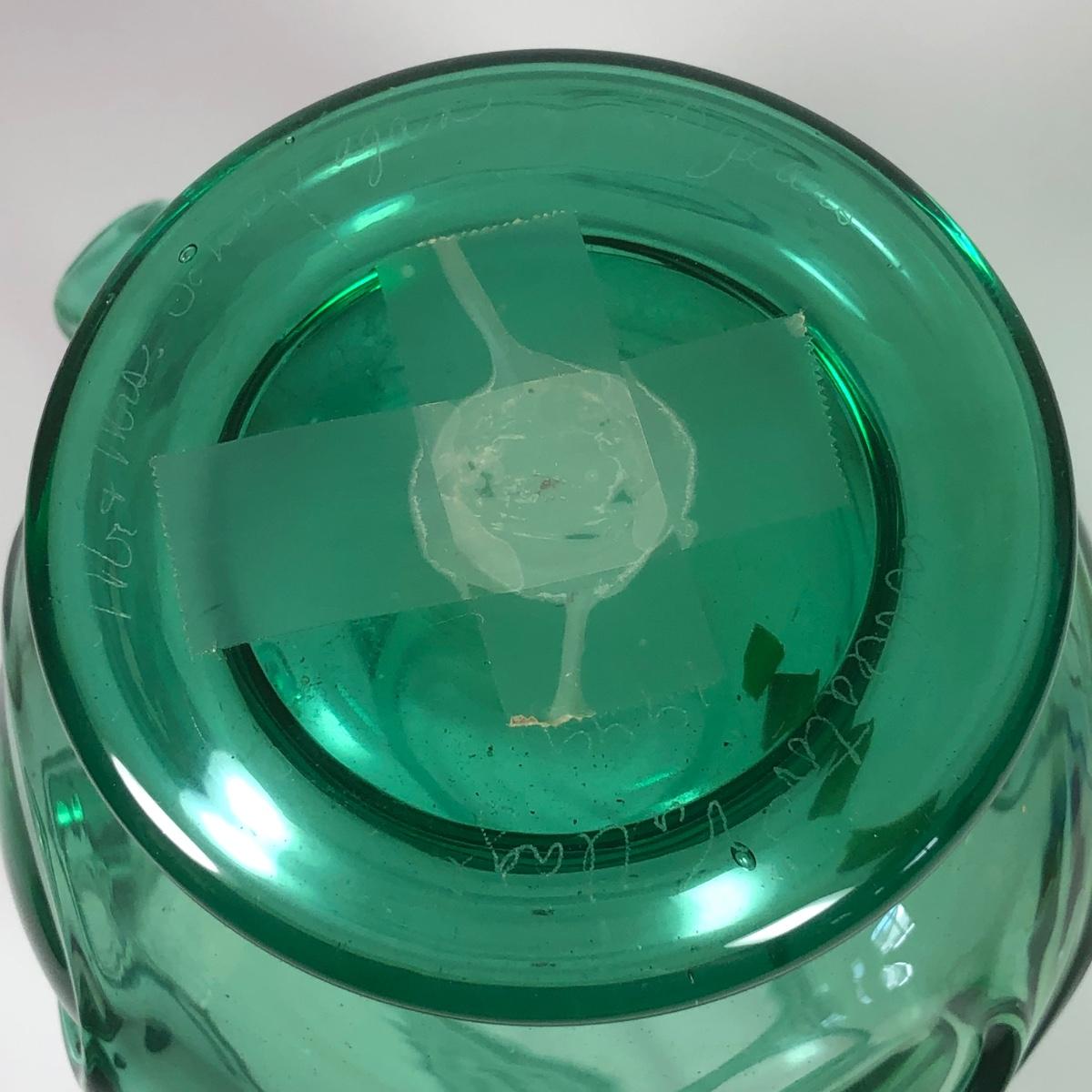 LOT 35M: Viking Glass Amberina Candy Dish & 1999 Signed Teal/Green Wheaton Village Glass Pitcher