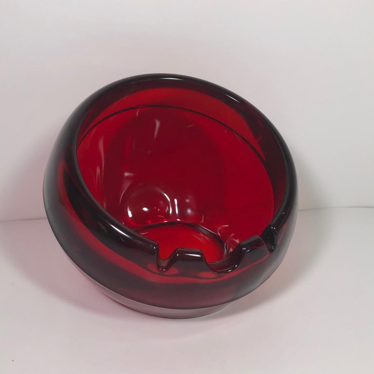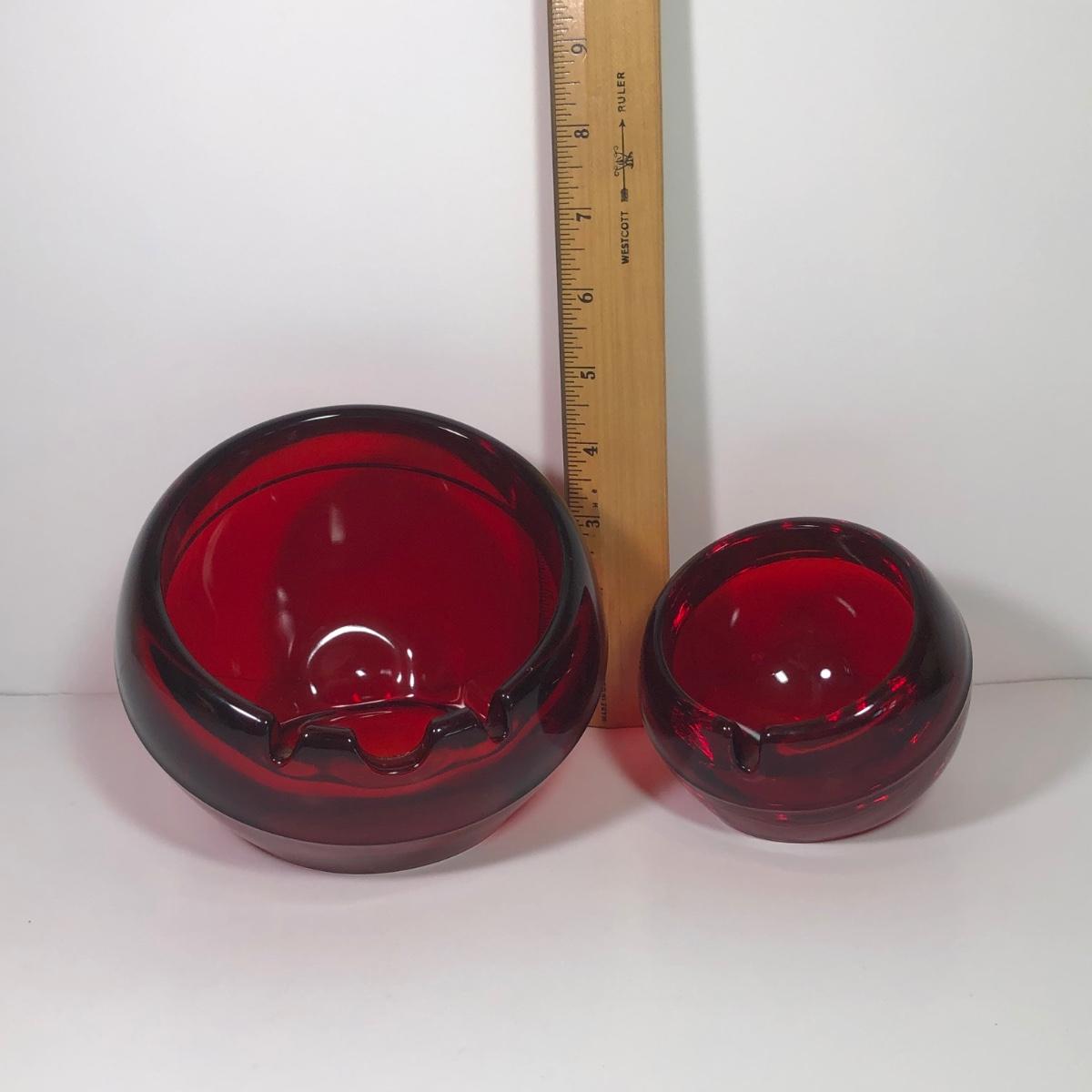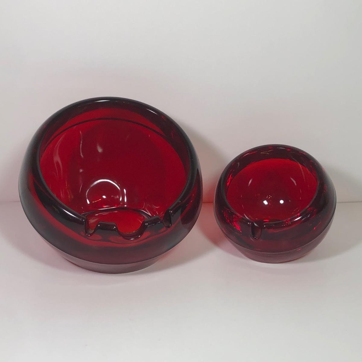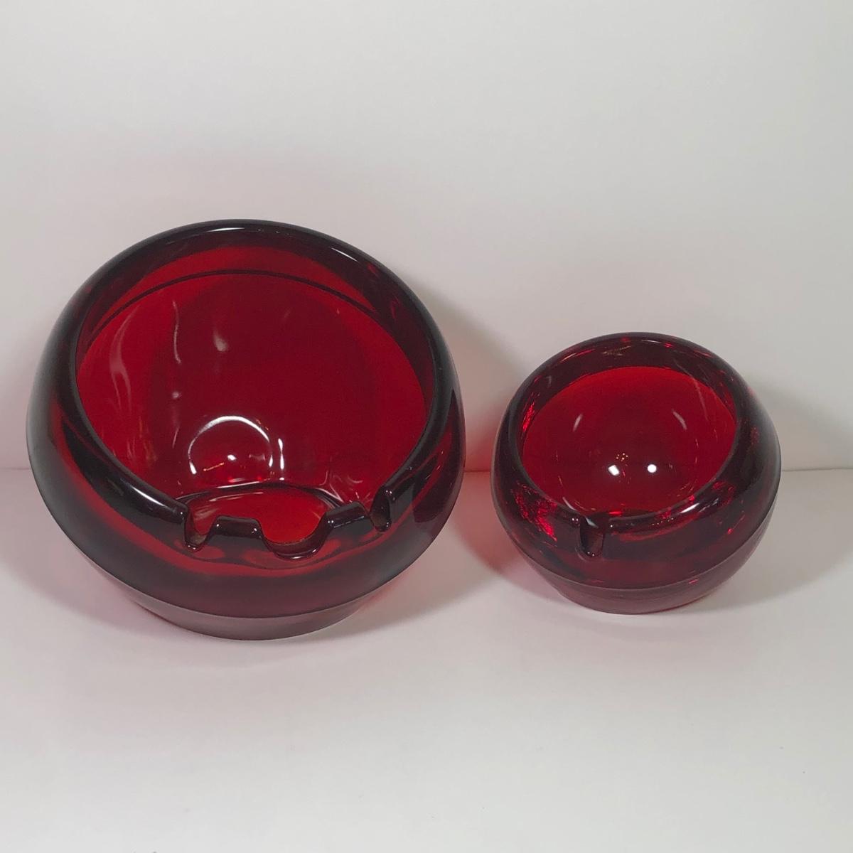 LOT 37M: MCM Ruby Red Glass Orbit Ash Trays