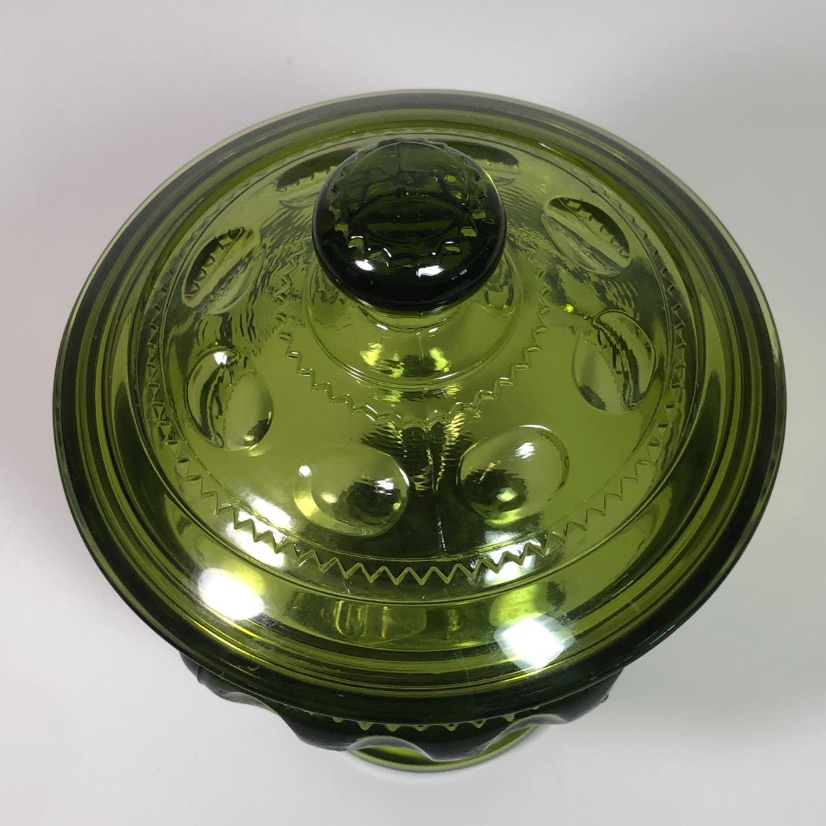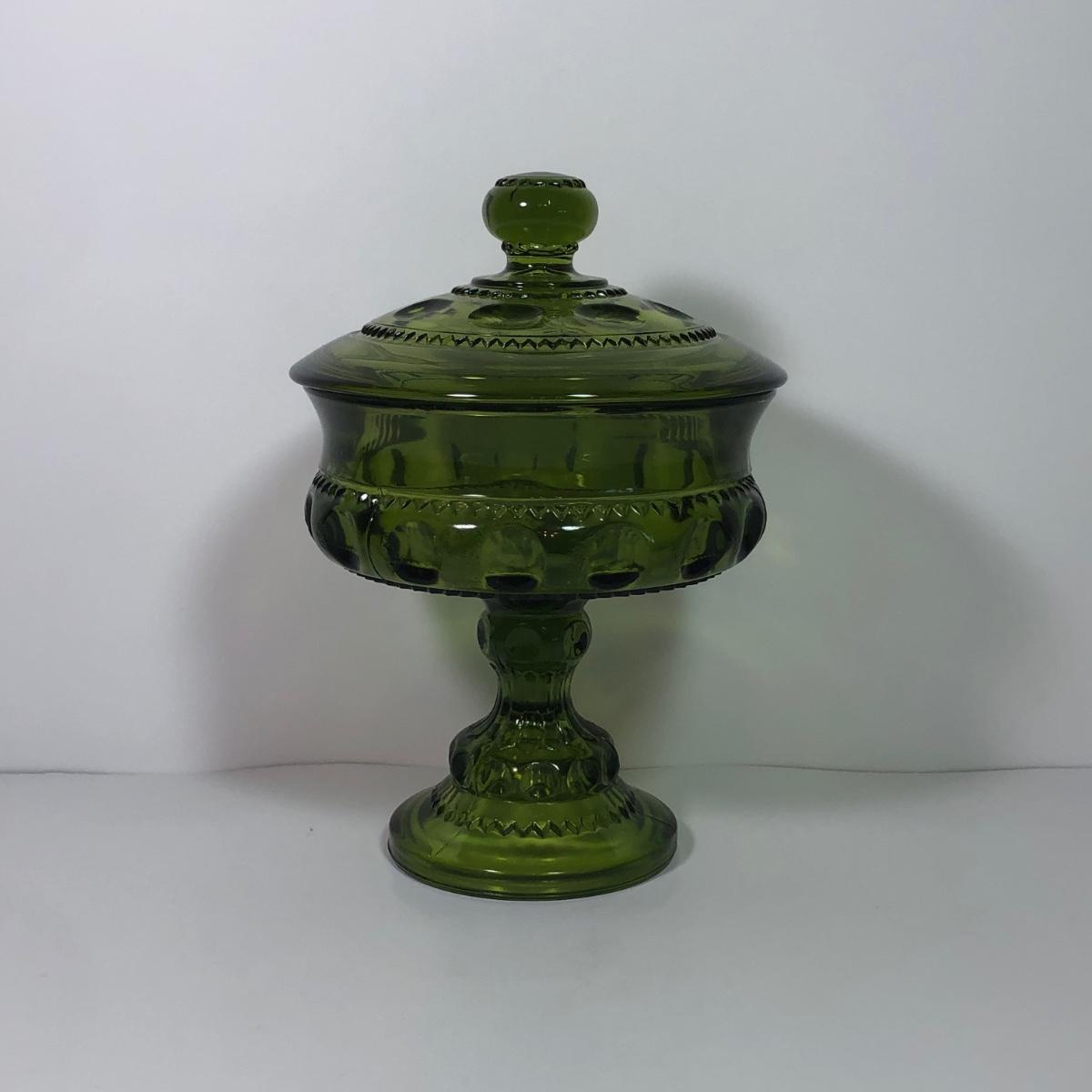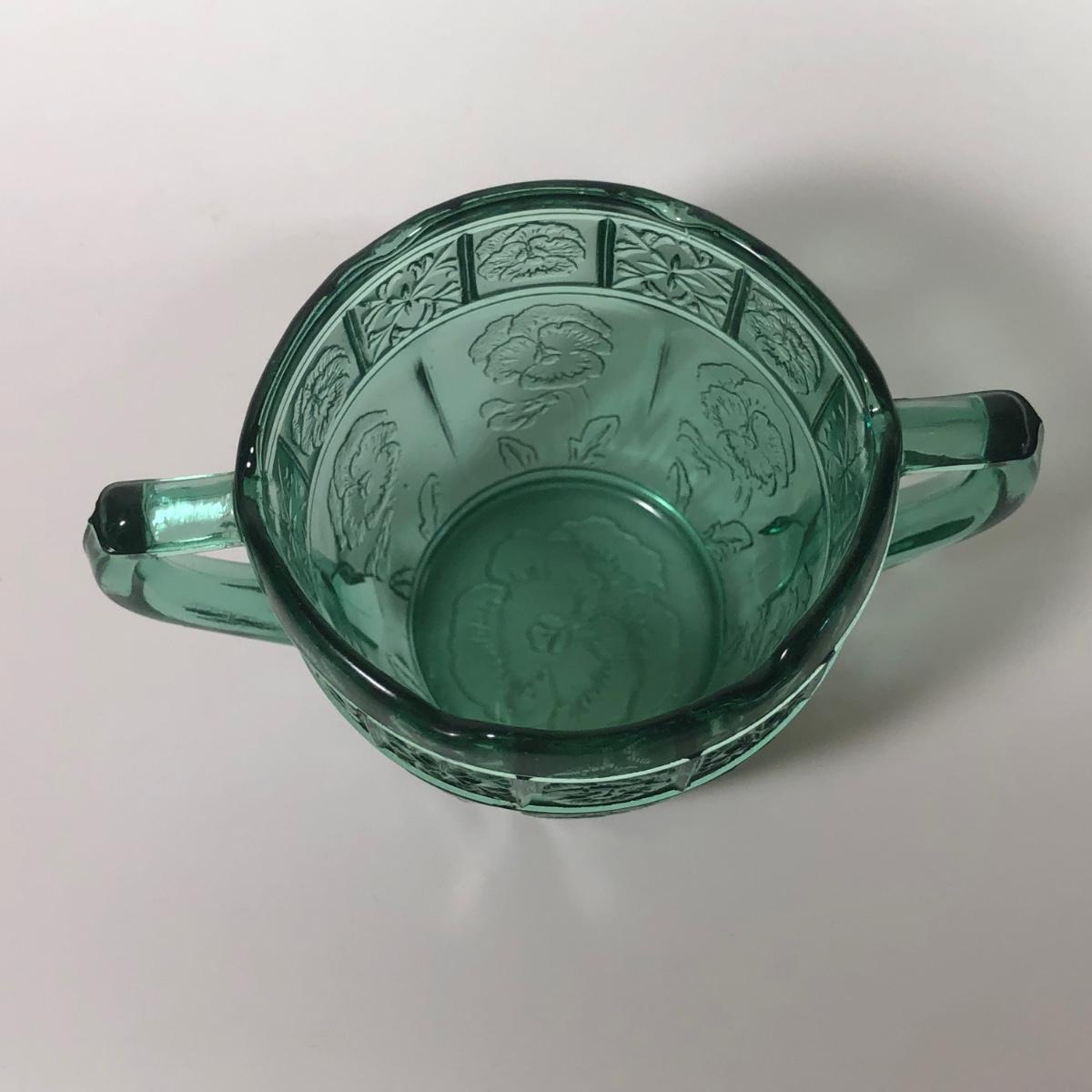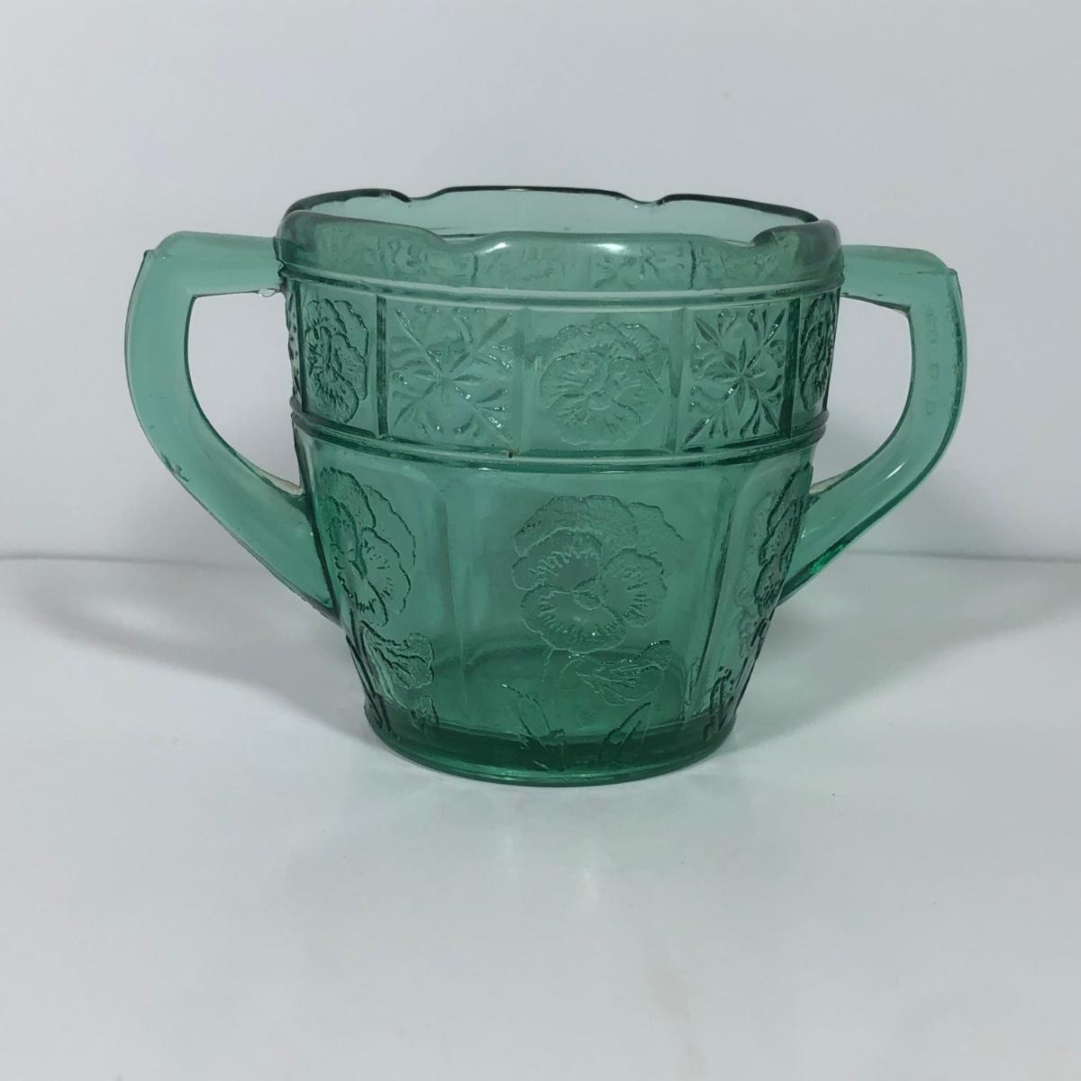 LOT 39M: Vintage Teal Pansy Depression Glass Cup, Avocado Glass Candy Dish & Large Rectangular Orange Glass Vase