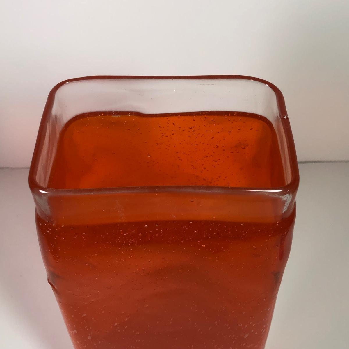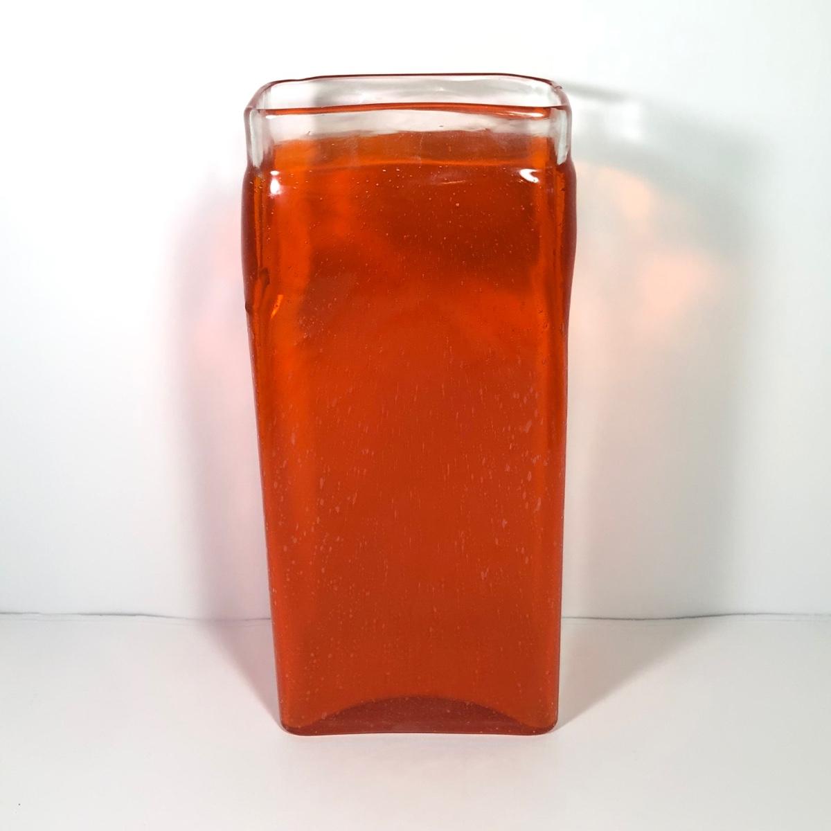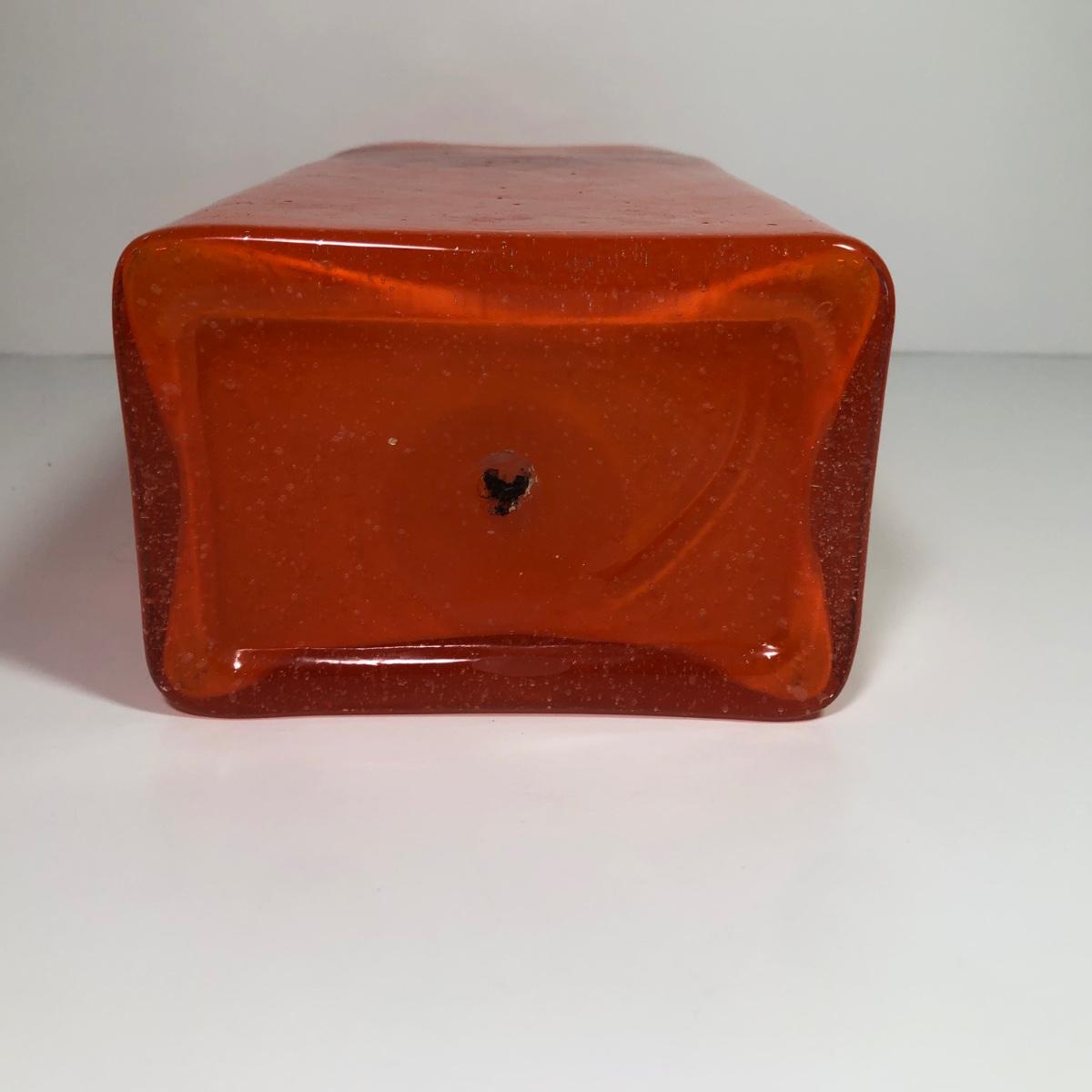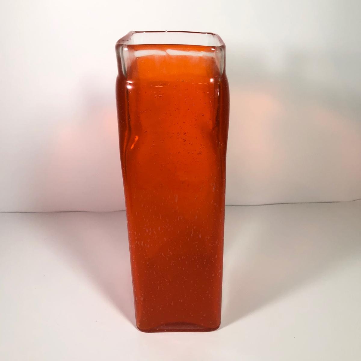 LOT 39M: Vintage Teal Pansy Depression Glass Cup, Avocado Glass Candy Dish & Large Rectangular Orange Glass Vase