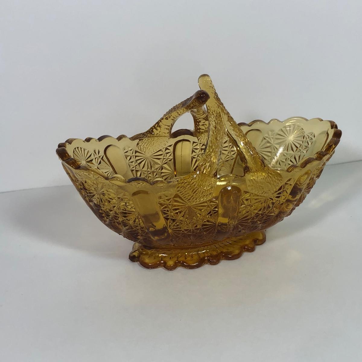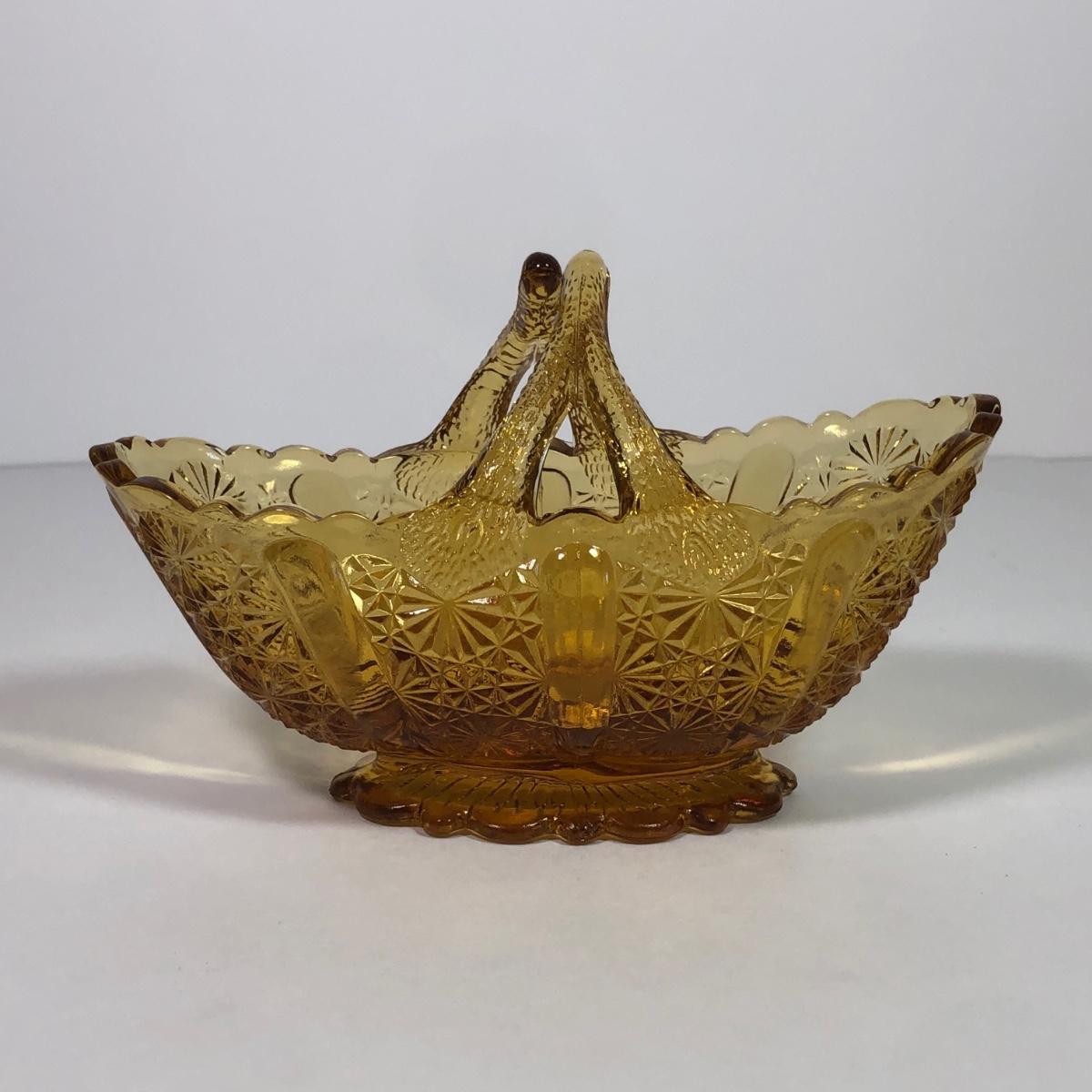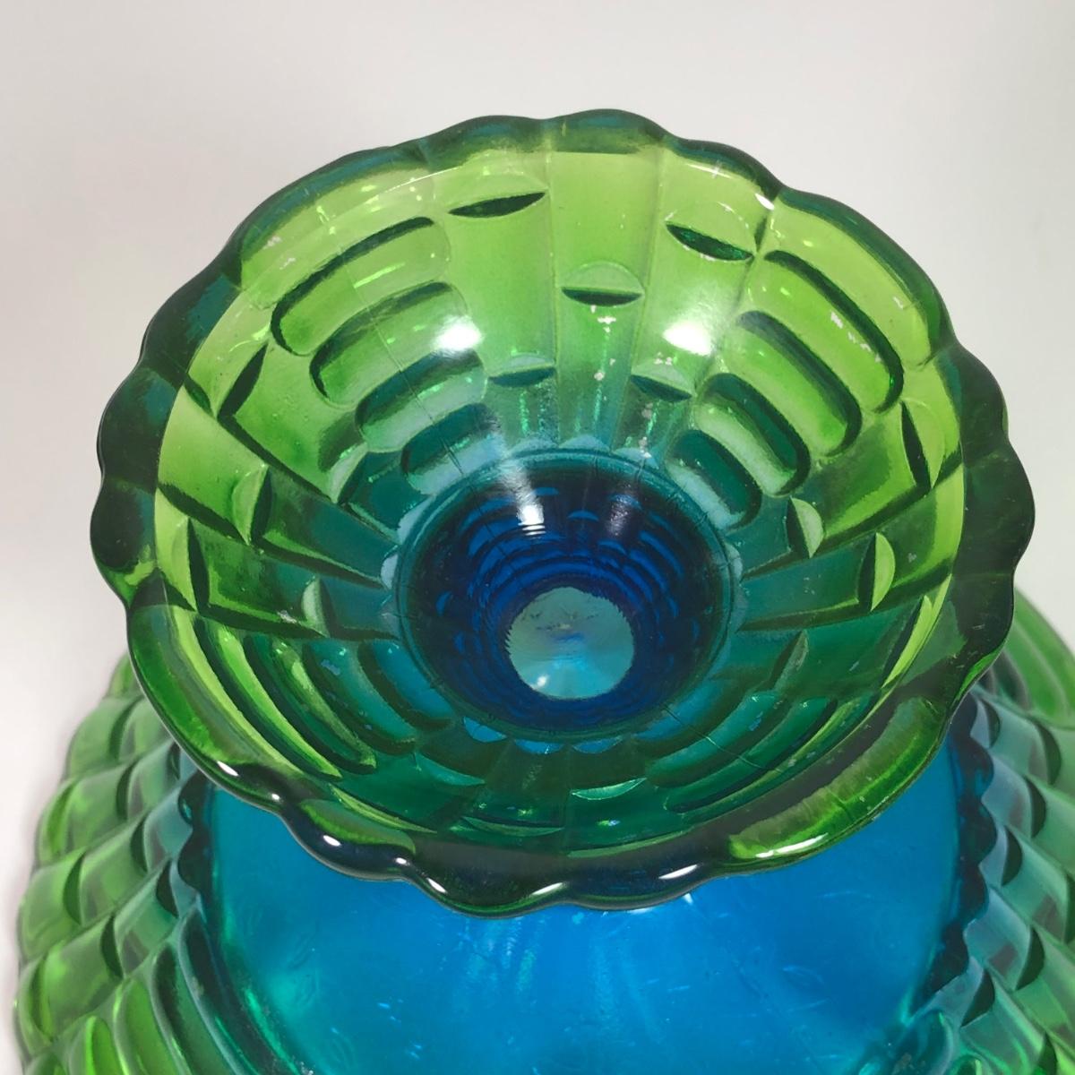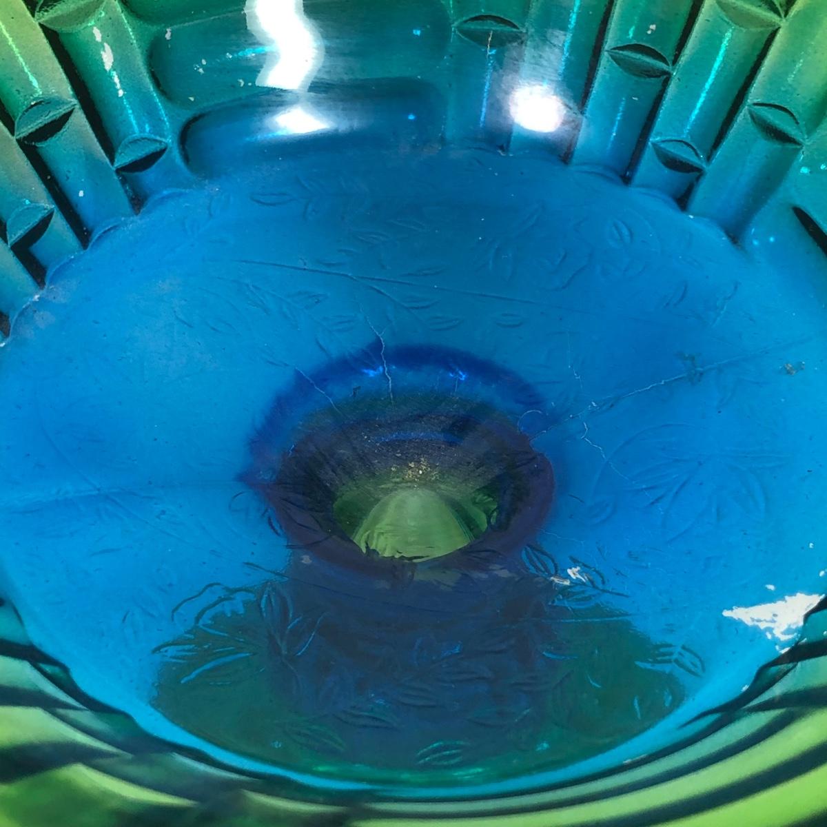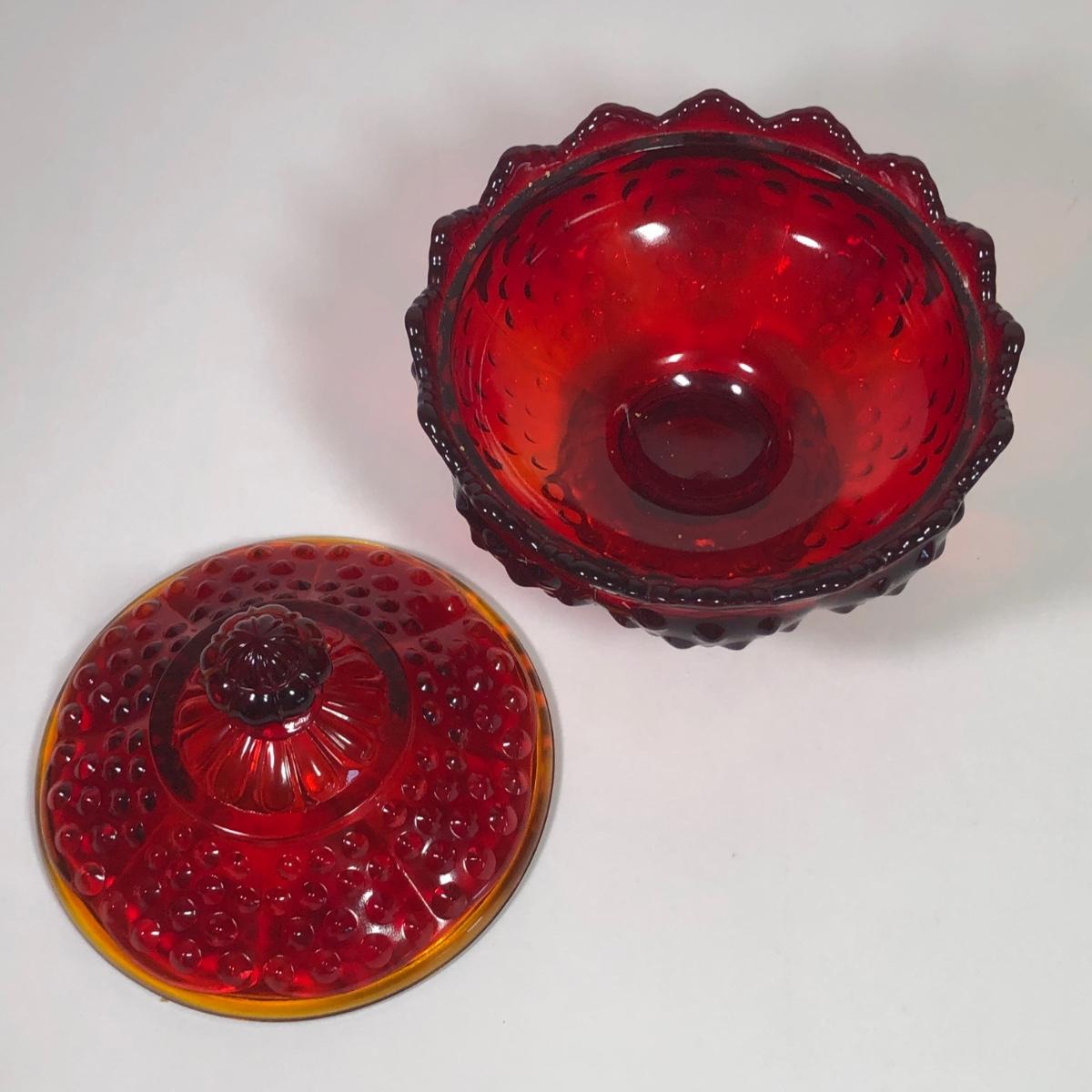 LOT 43M: Fenton Ruby Glass Lidded Dish, Beautiful Bleu and Green Pedestal Dish & Miniature Basket