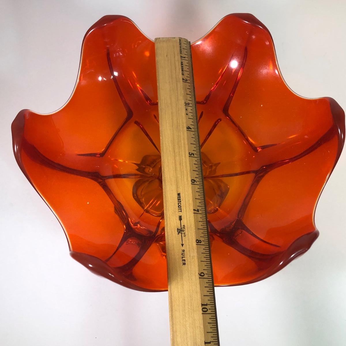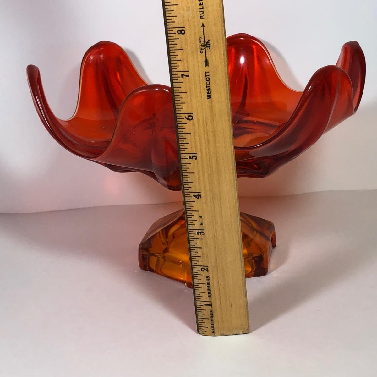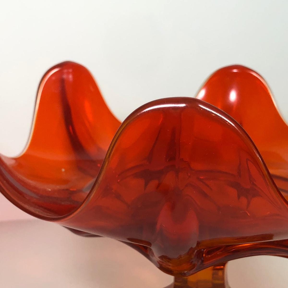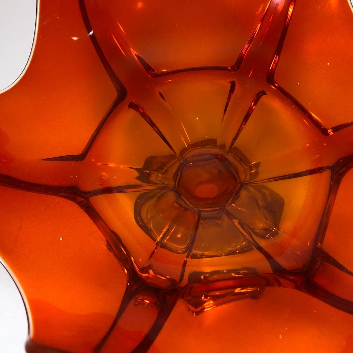 LOT 51M: Six Petal Orange Glass Pedestal Dish