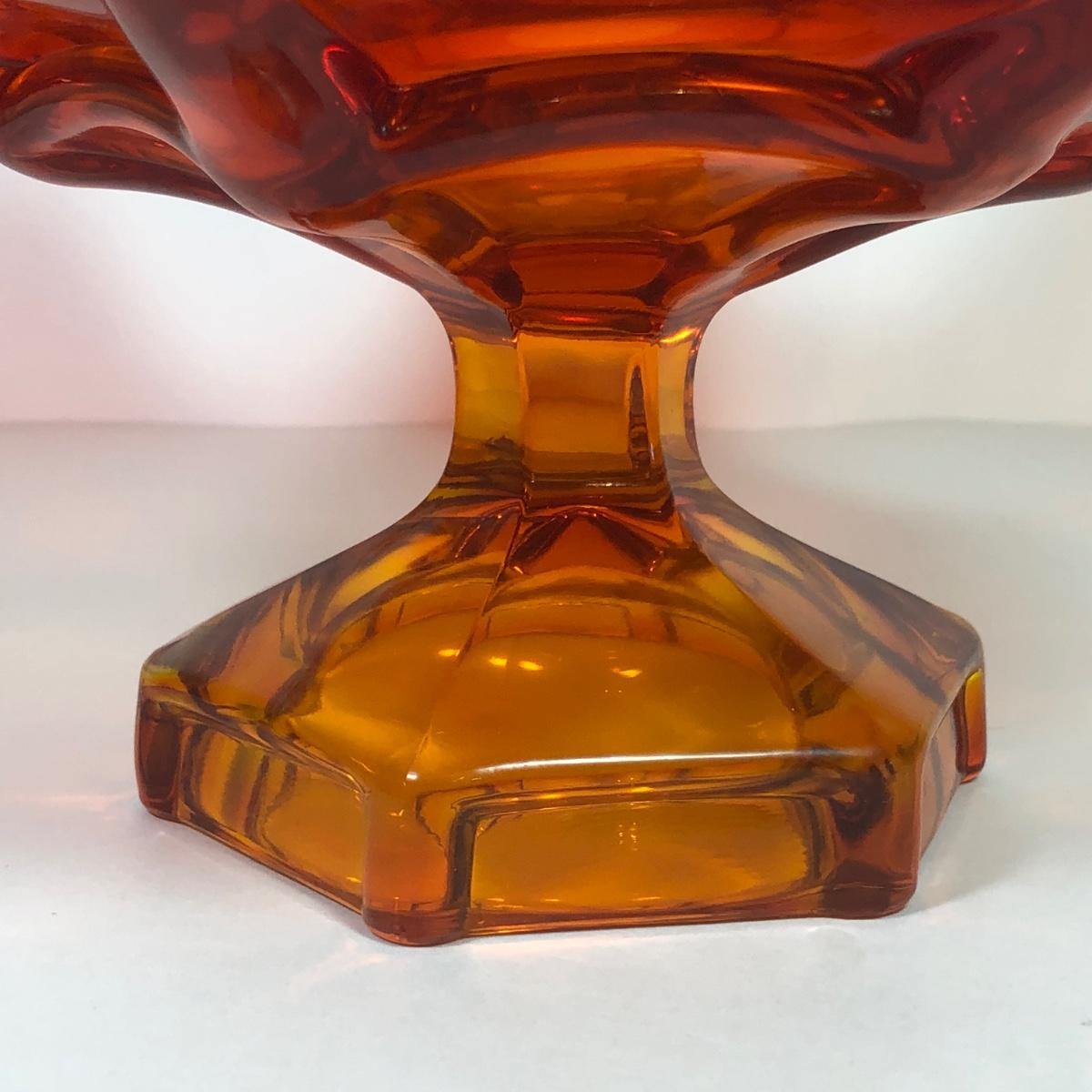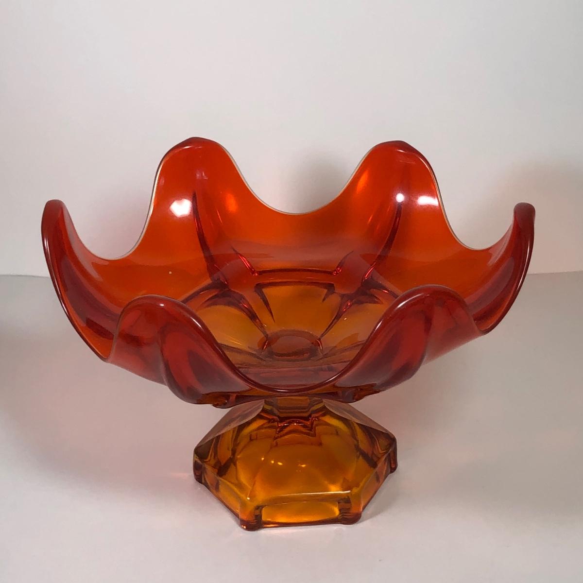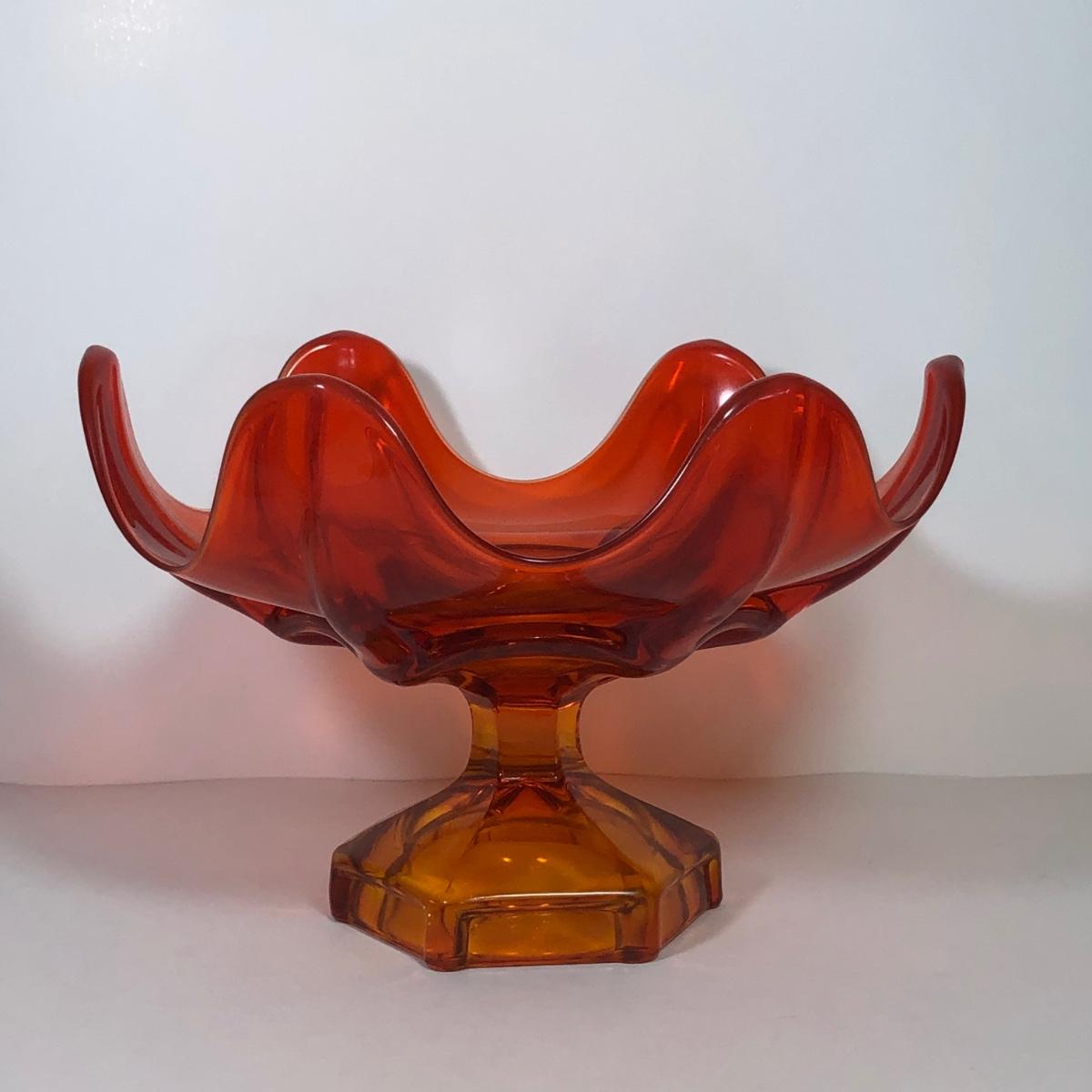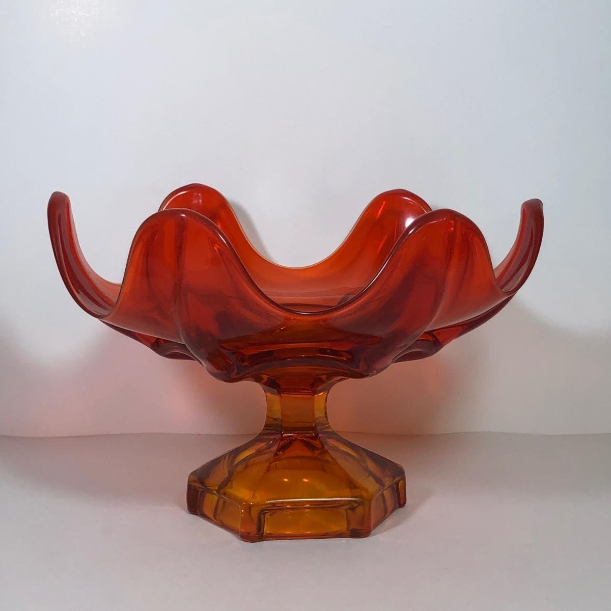 LOT 51M: Six Petal Orange Glass Pedestal Dish