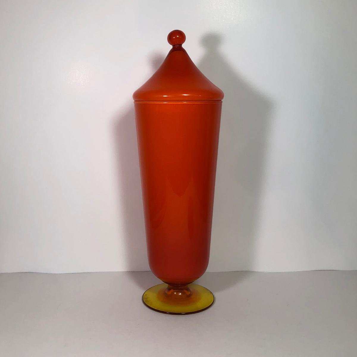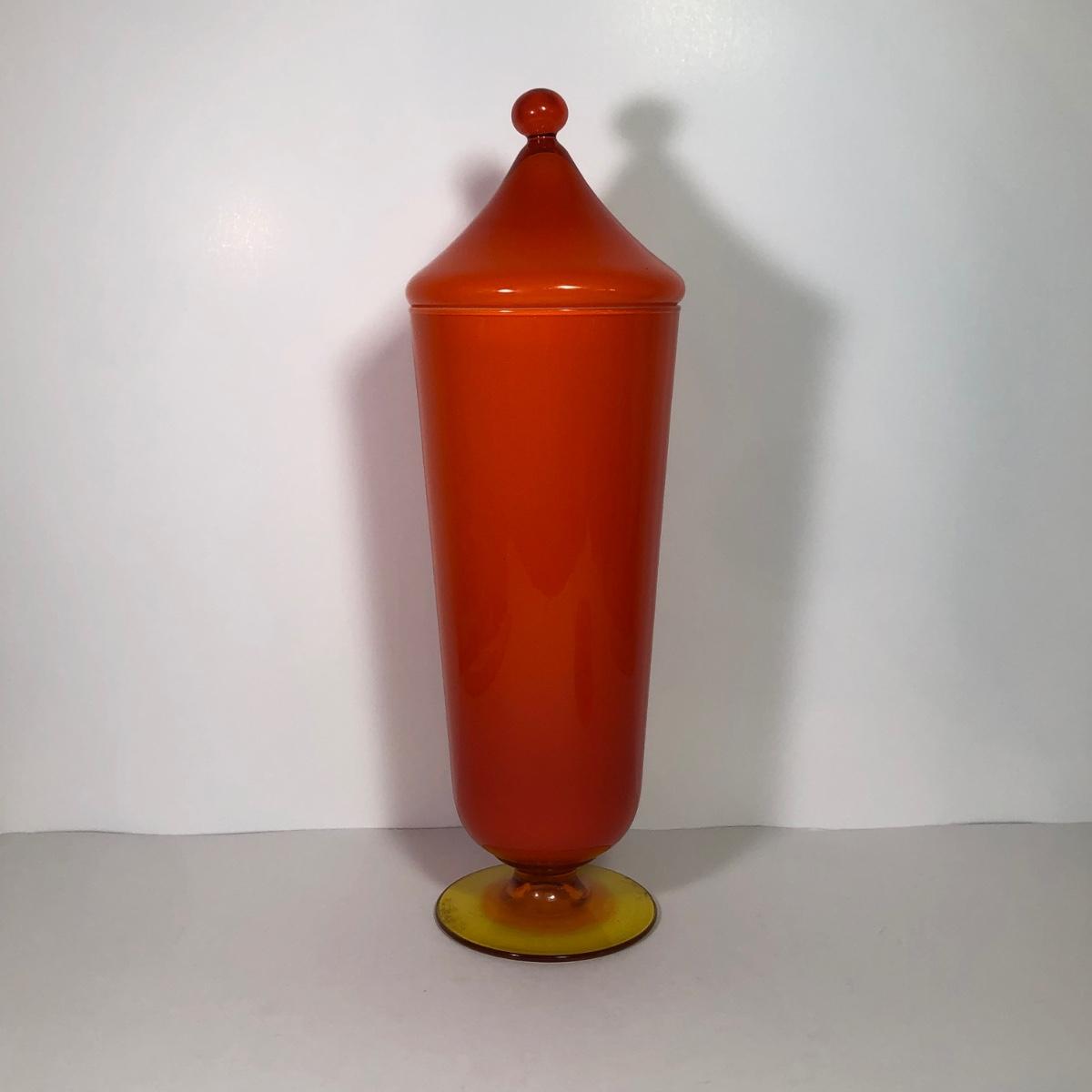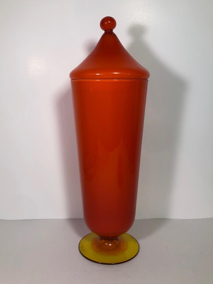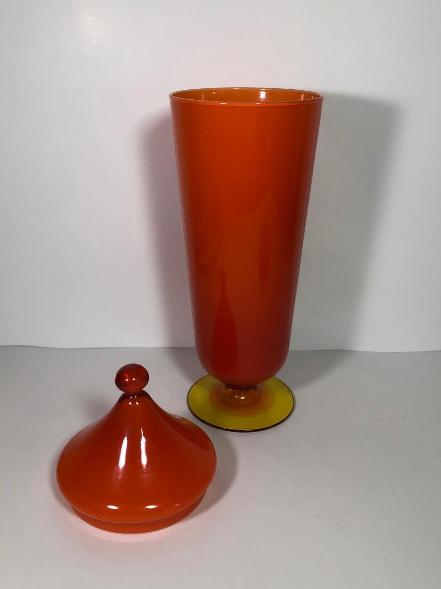 LOT 52M: Rare Empoli (Italy) Orange Glass Amberina Apothecary Jar (14.5")