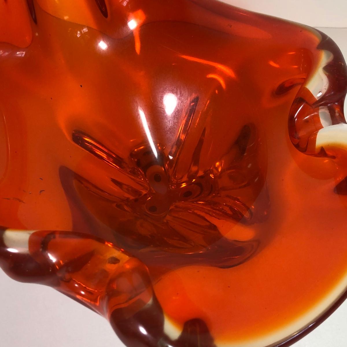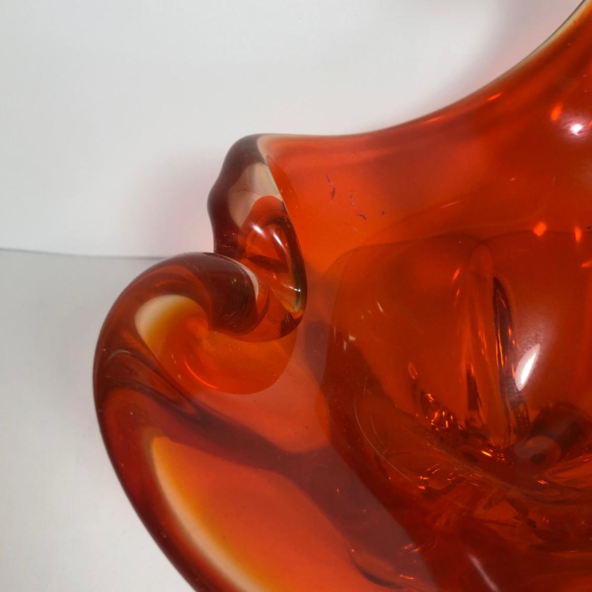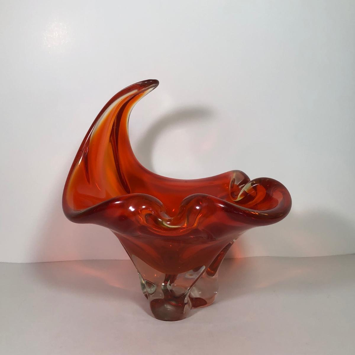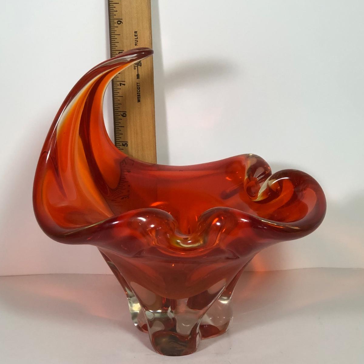LOT 53M: Beautiful Wavy Art Glass Orange Bowl