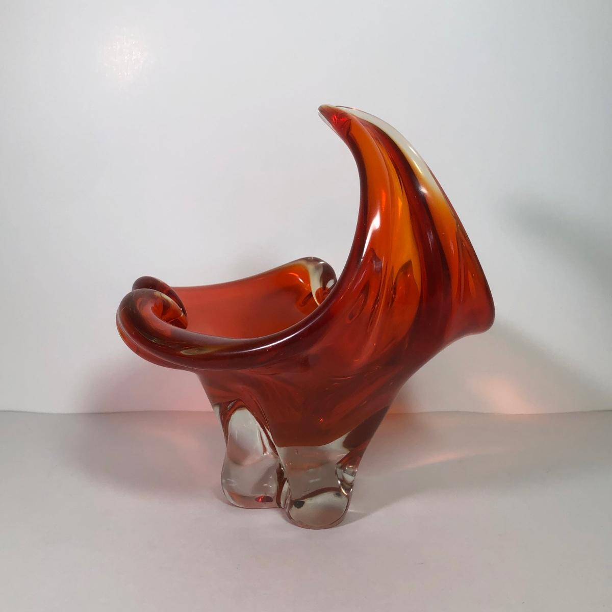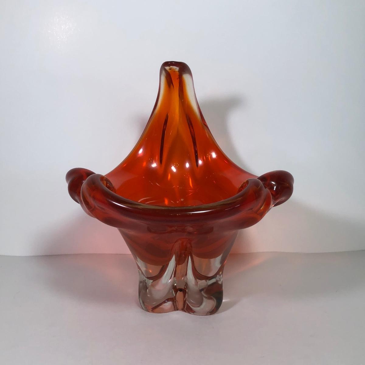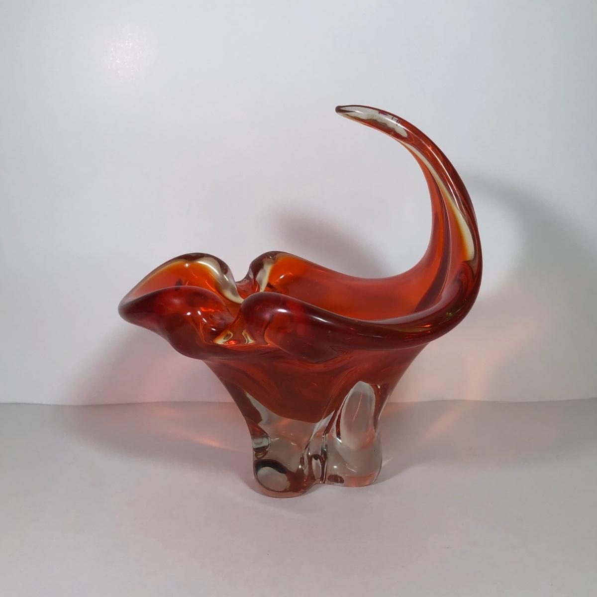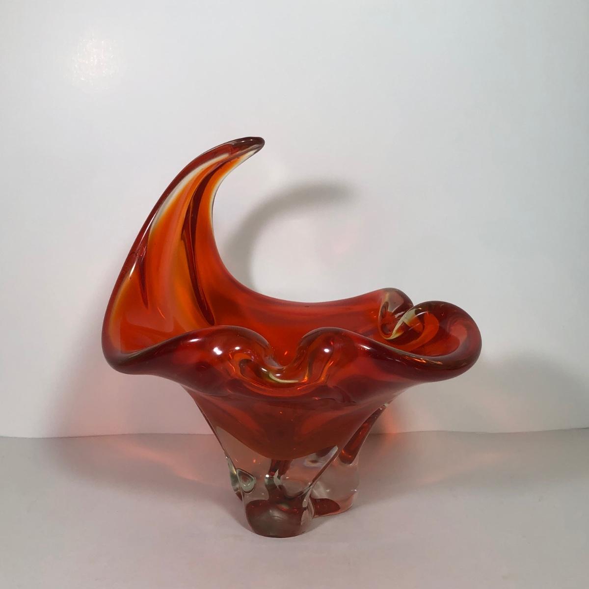 LOT 53M: Beautiful Wavy Art Glass Orange Bowl