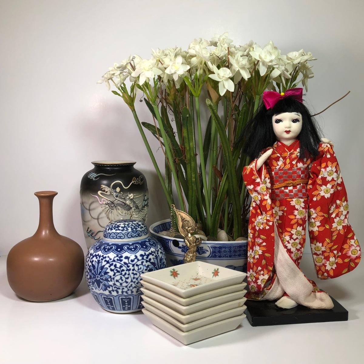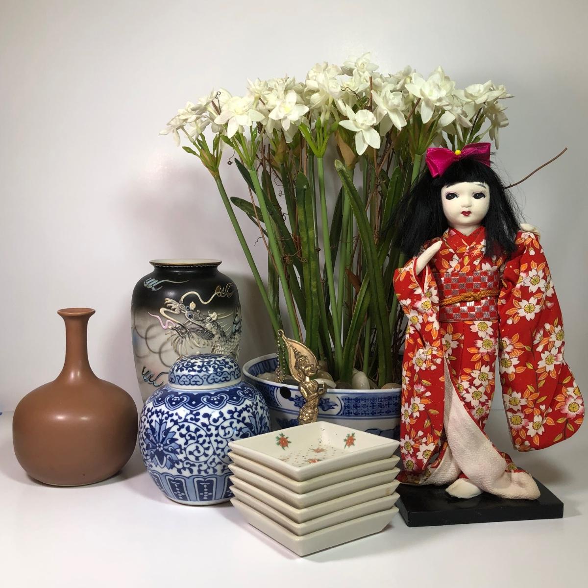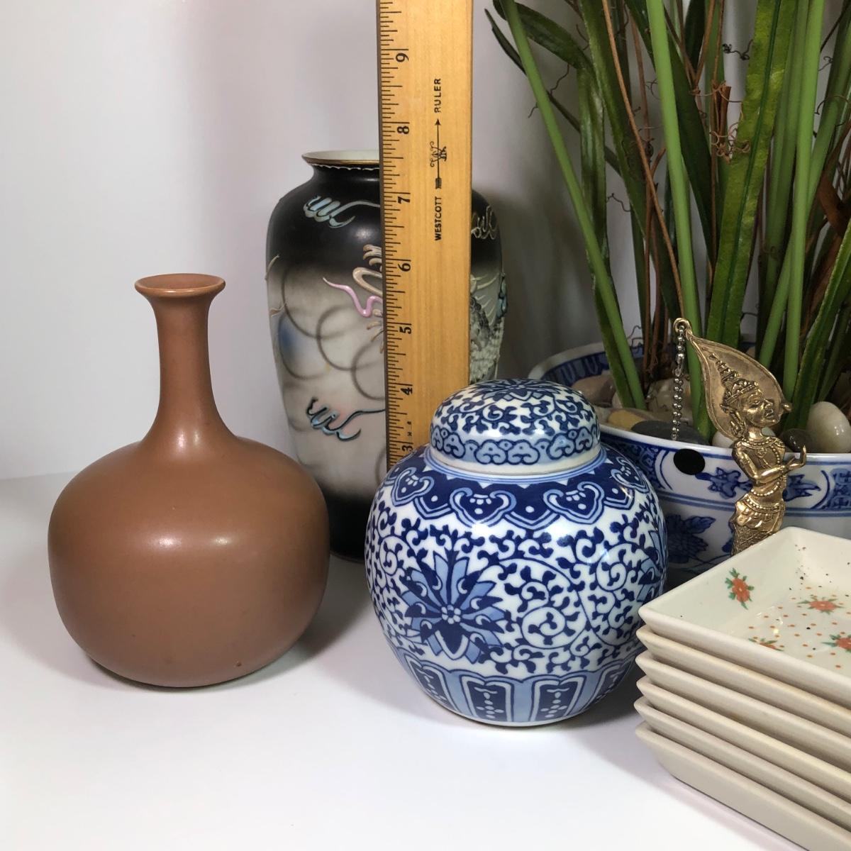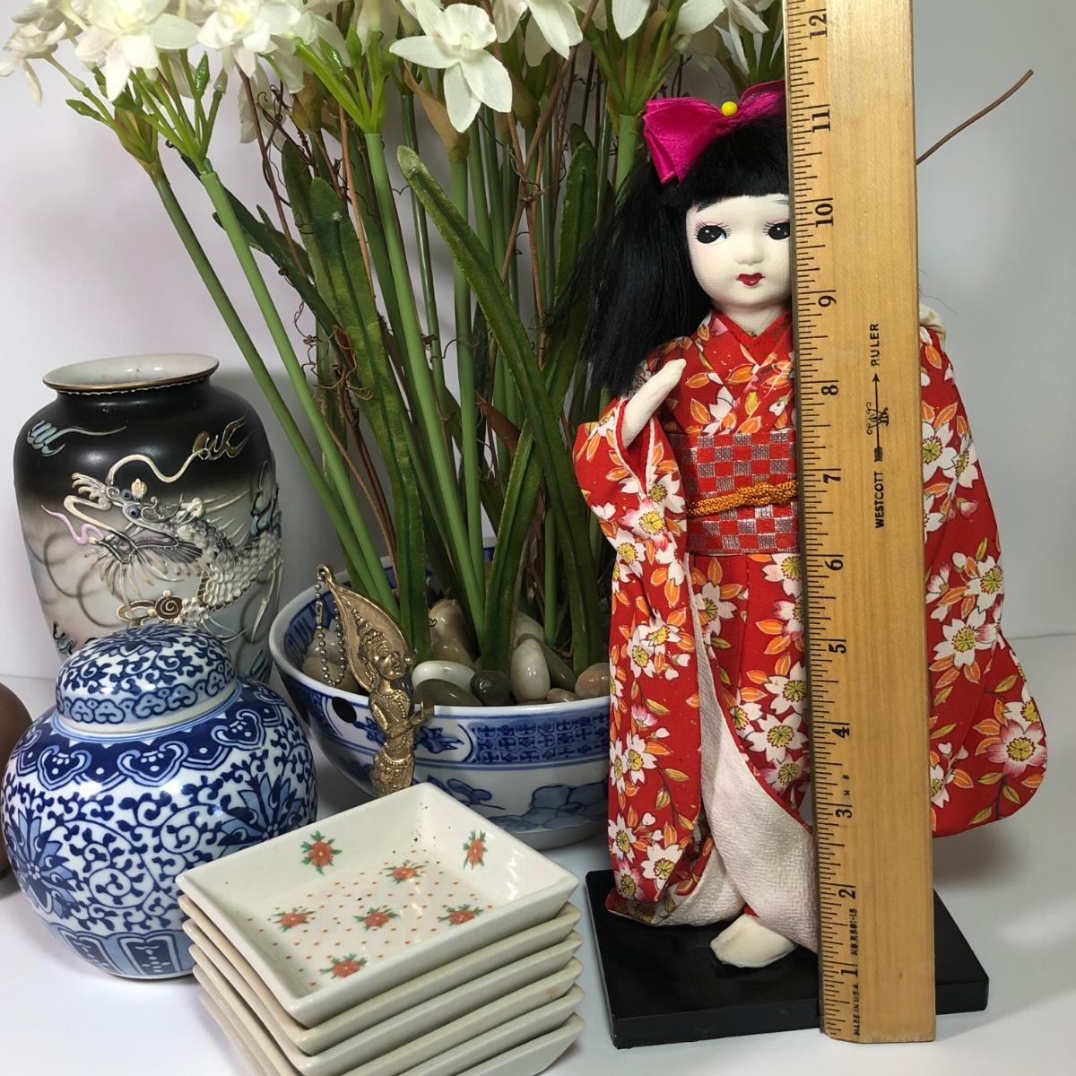 LOT 57M: Asian Inspired Collection - Doll, Ceramic Jar, Dragon Vase & More