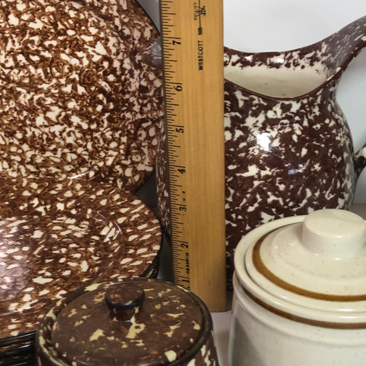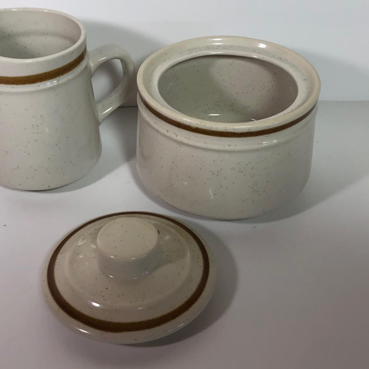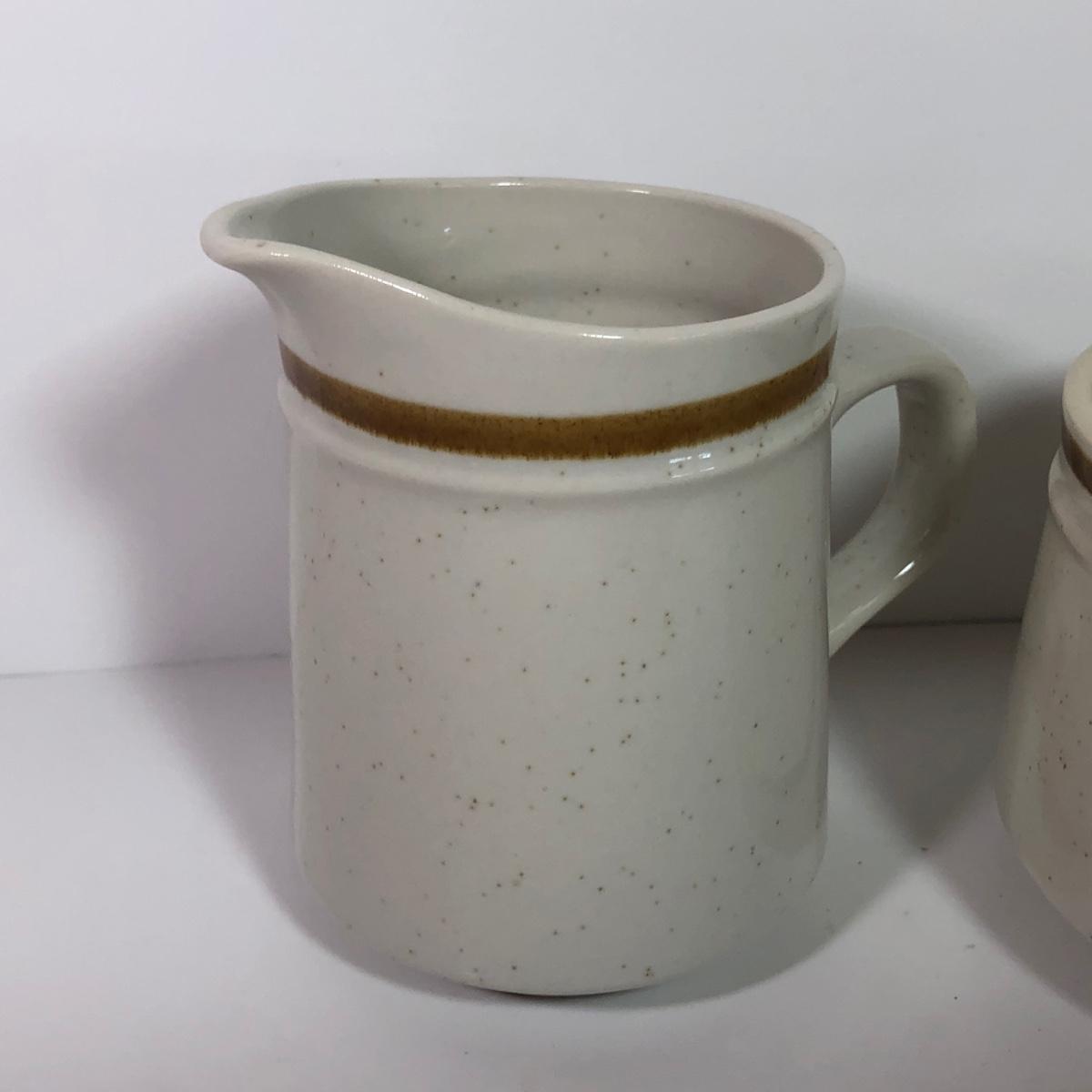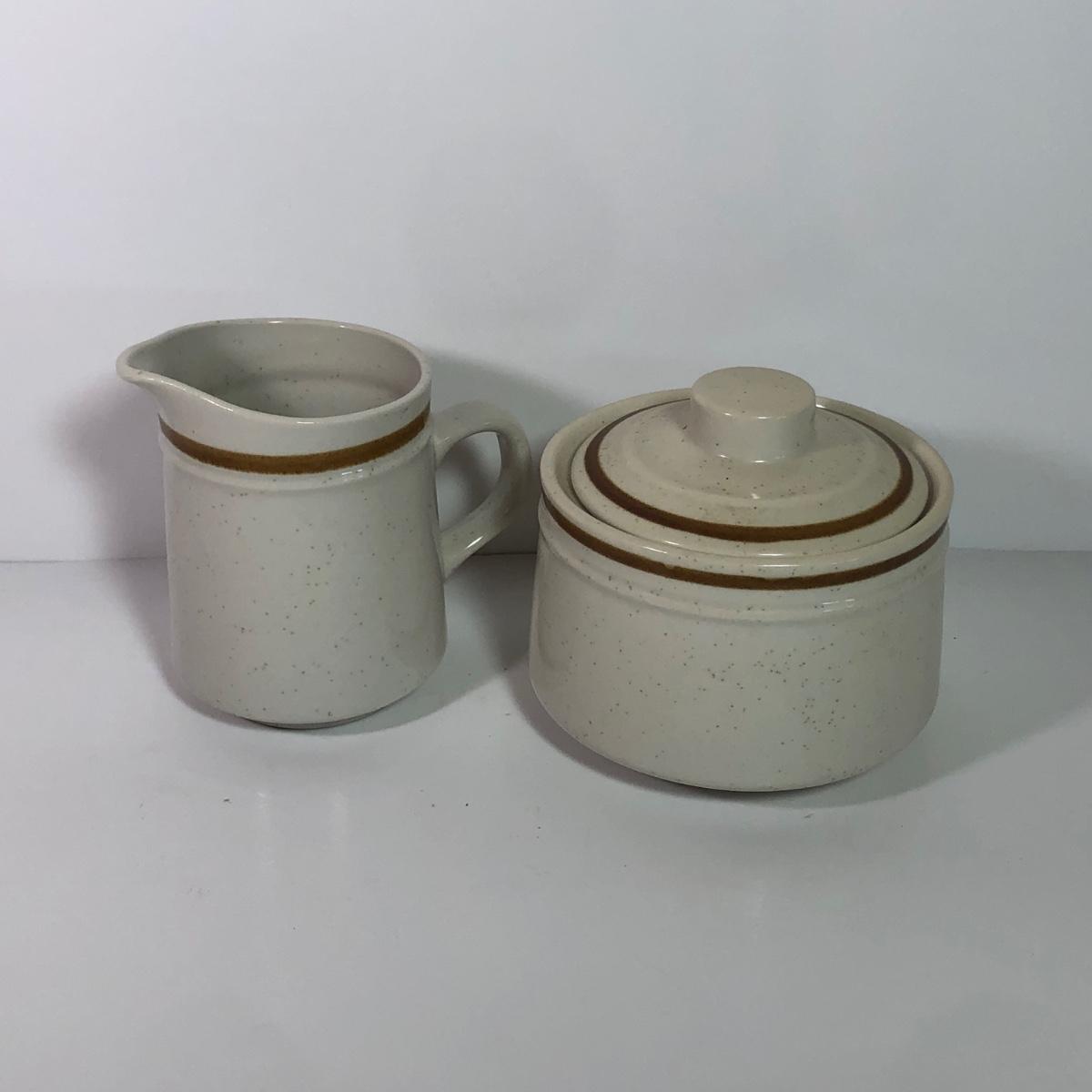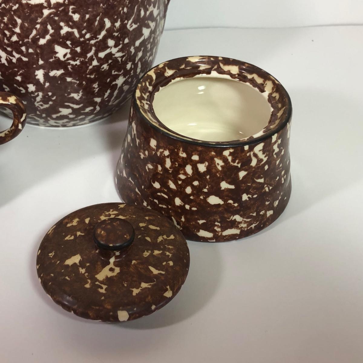 LOT 71M: Royal Cumberland for Royal Copenhagen Brown/White Spongeware Pottery & Old Brook Collection Stoneware Creamer & Sugar