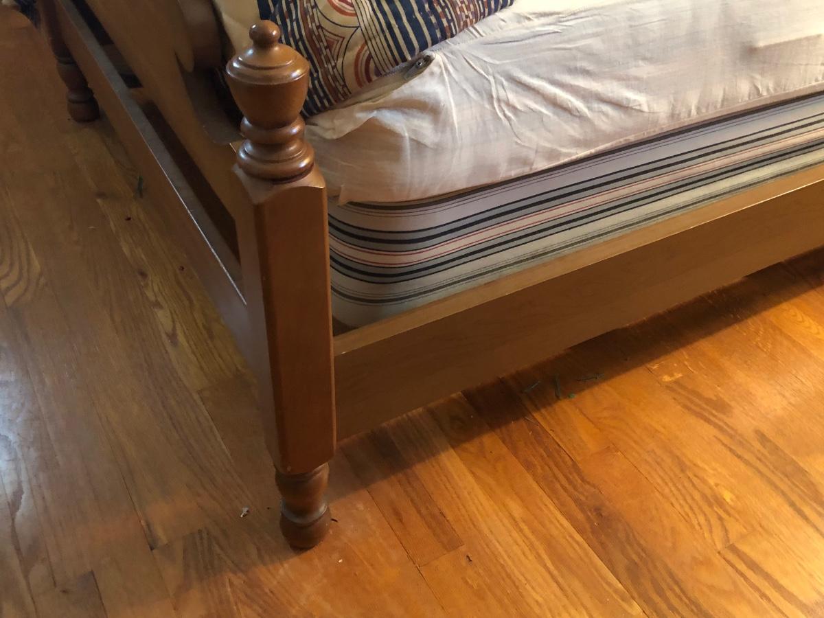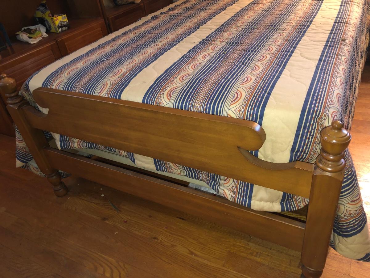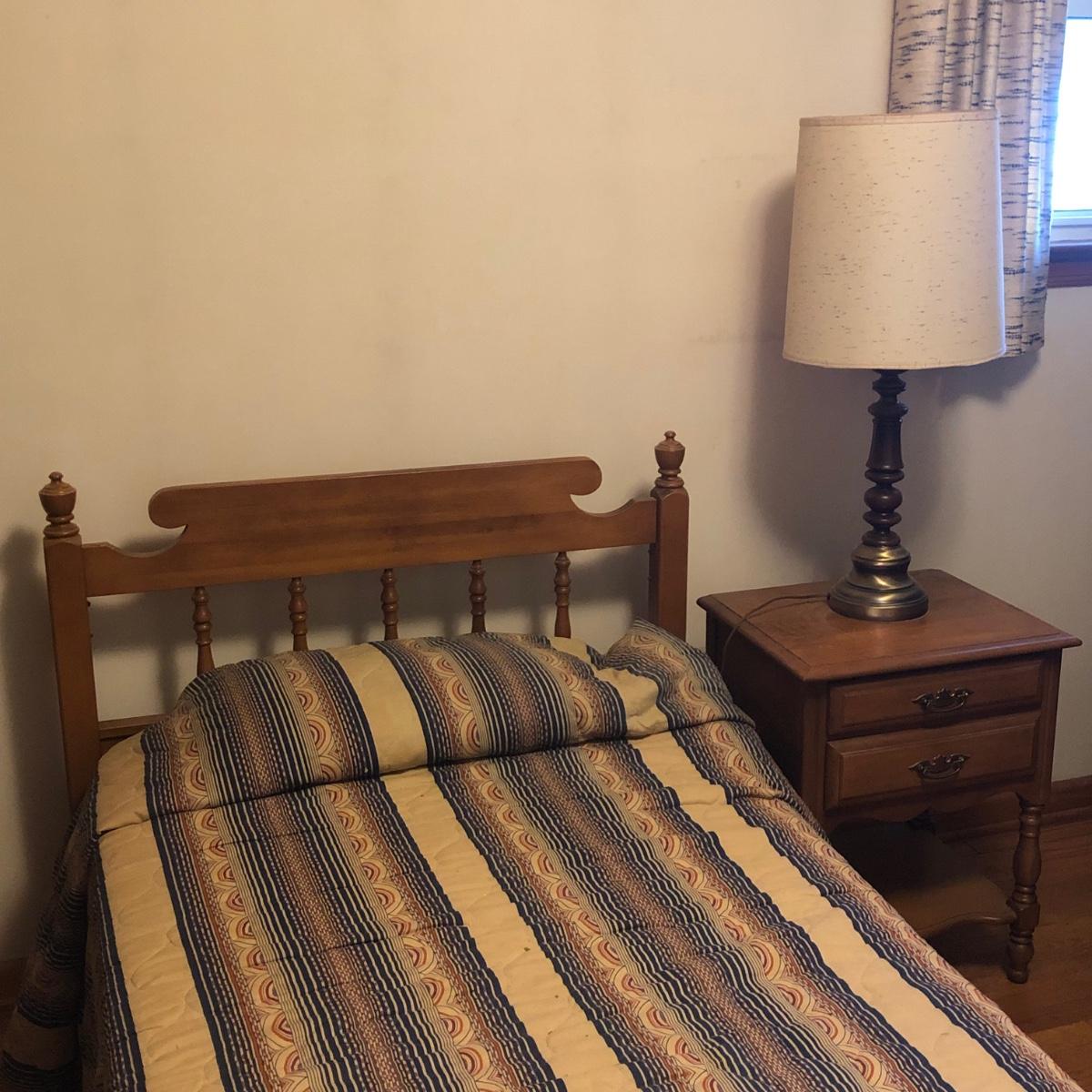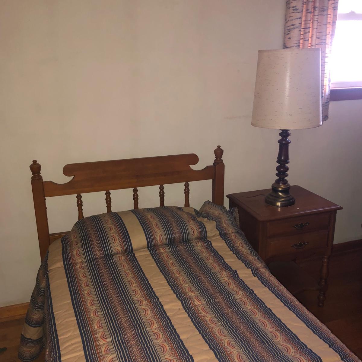 Furniture is located upstairs in the home. Must bring tools to disassemble bed. Bed measures 42W x 73D x 49H. Night stand measures 20W x 16.5D x 26H.