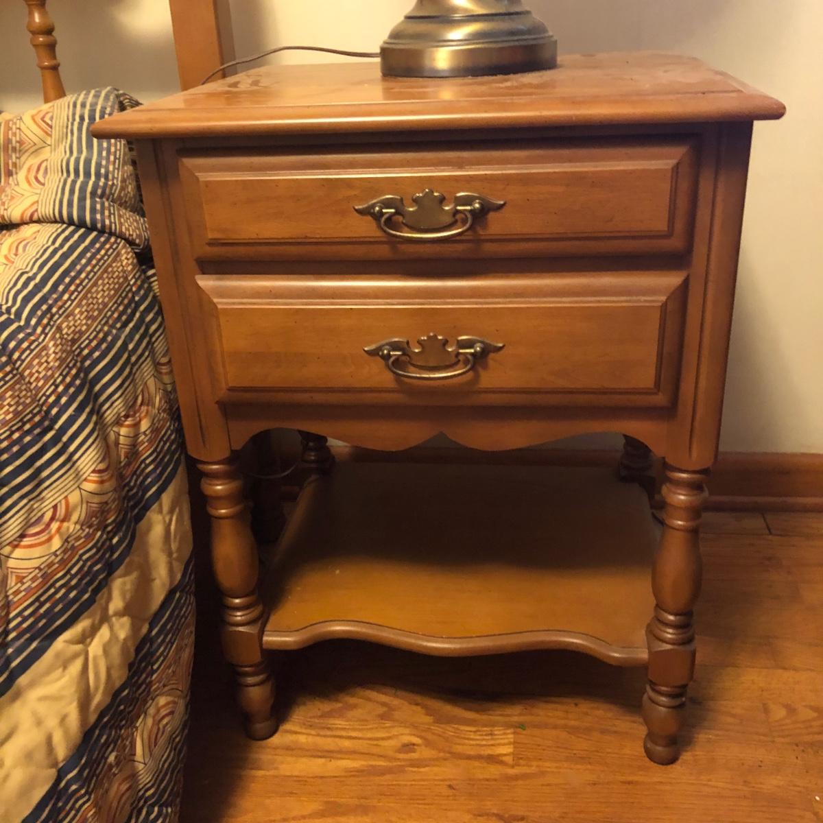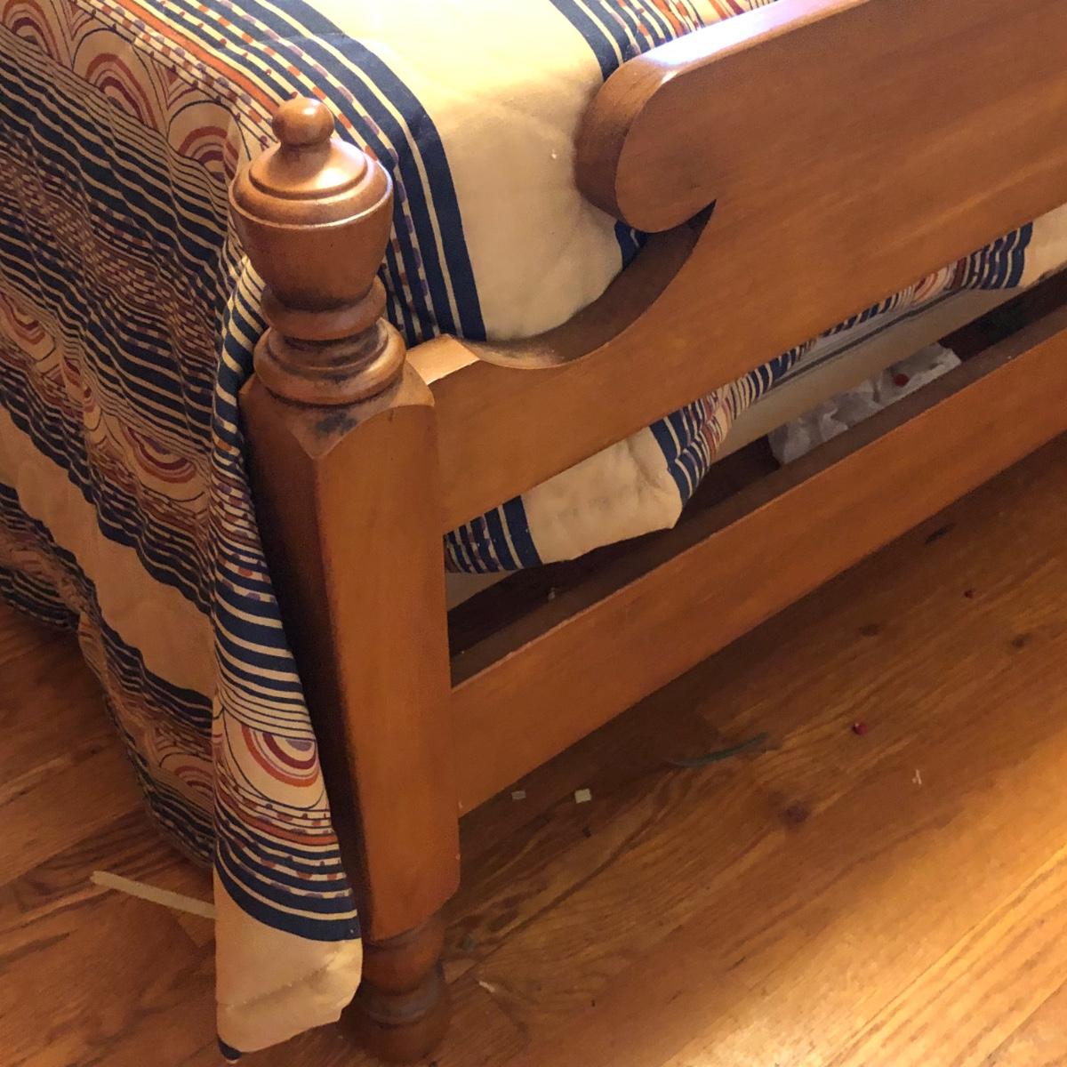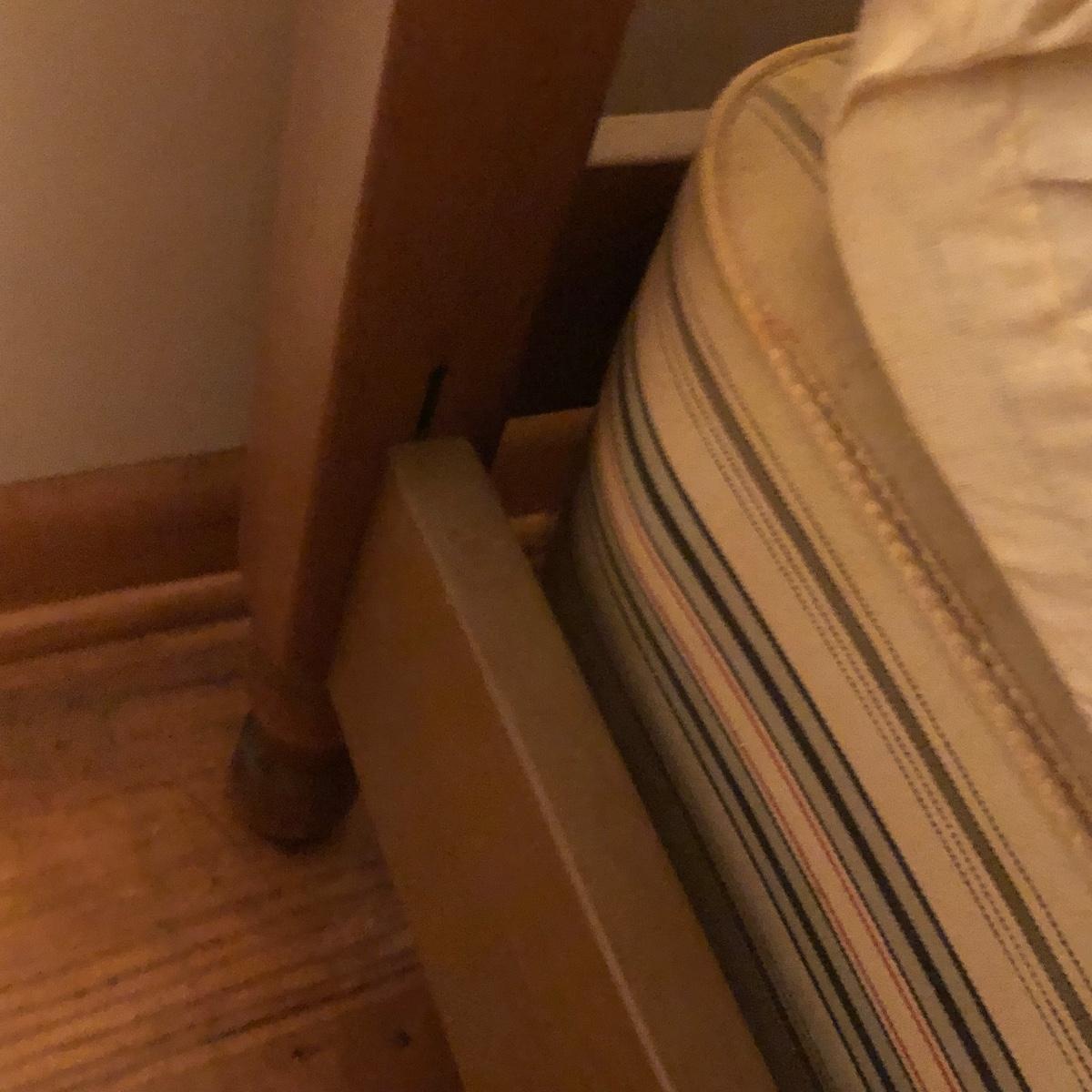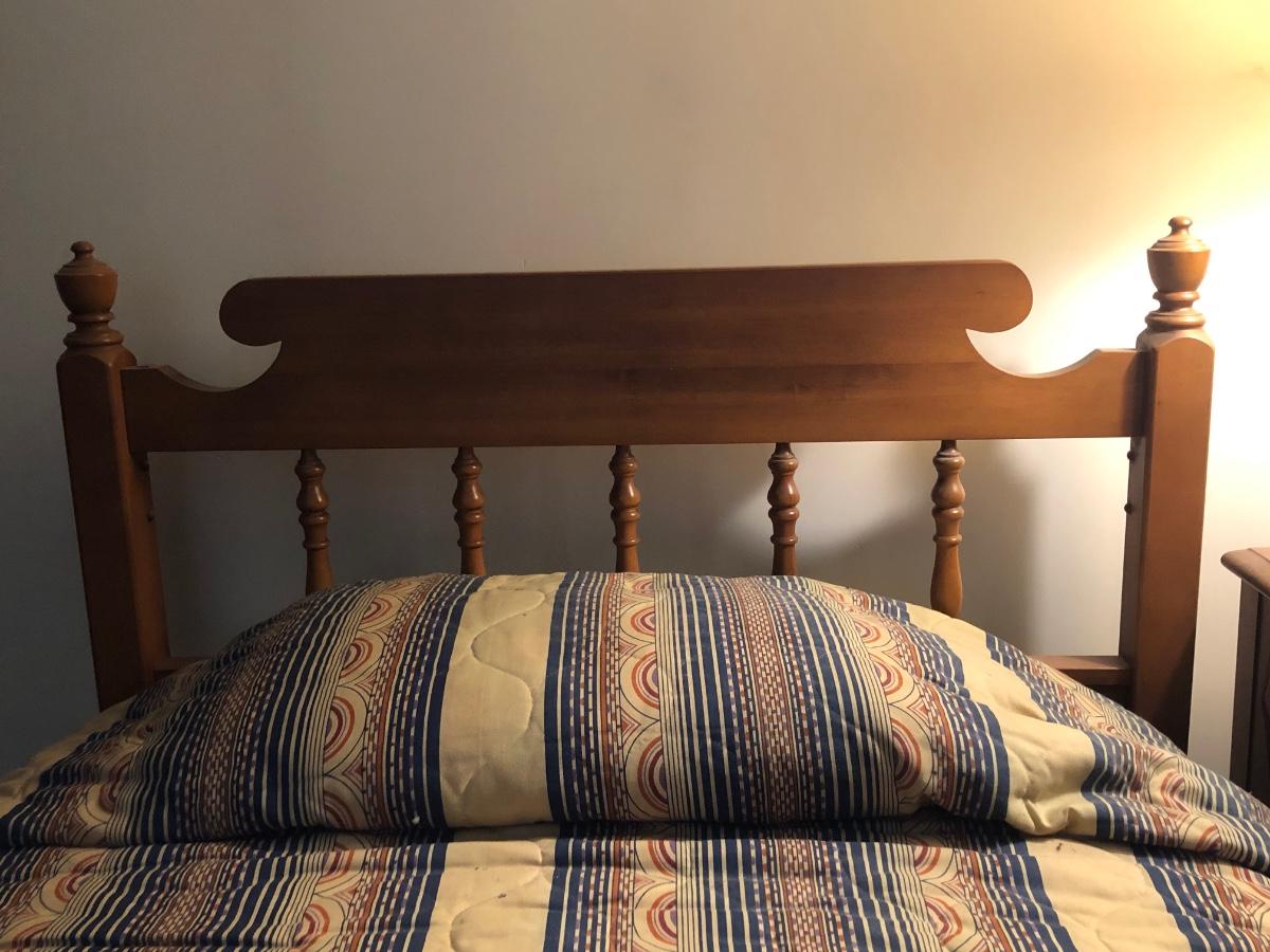 Furniture is located upstairs in the home. Must bring tools to disassemble bed. Bed measures 42W x 73D x 49H. Night stand measures 20W x 16.5D x 26H.