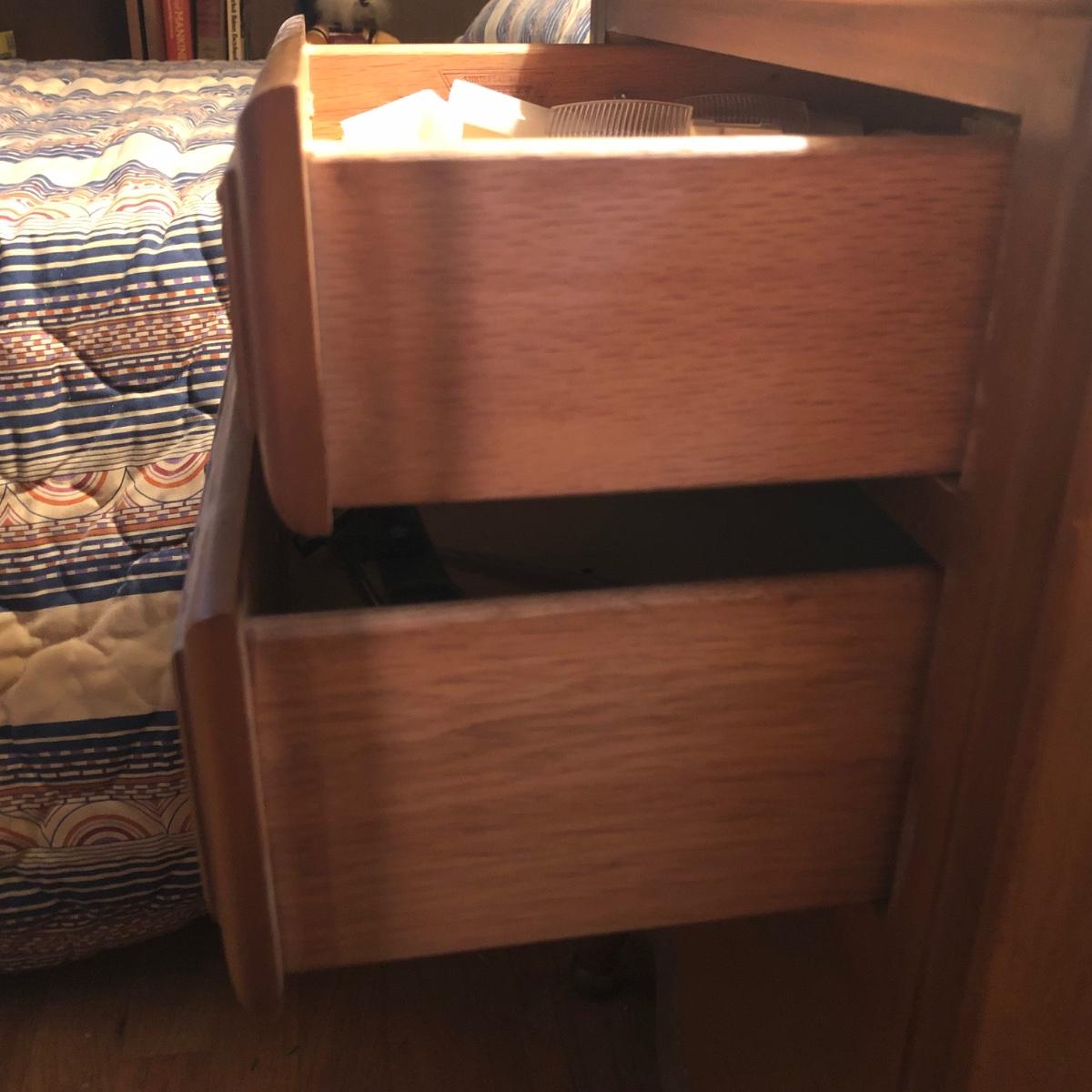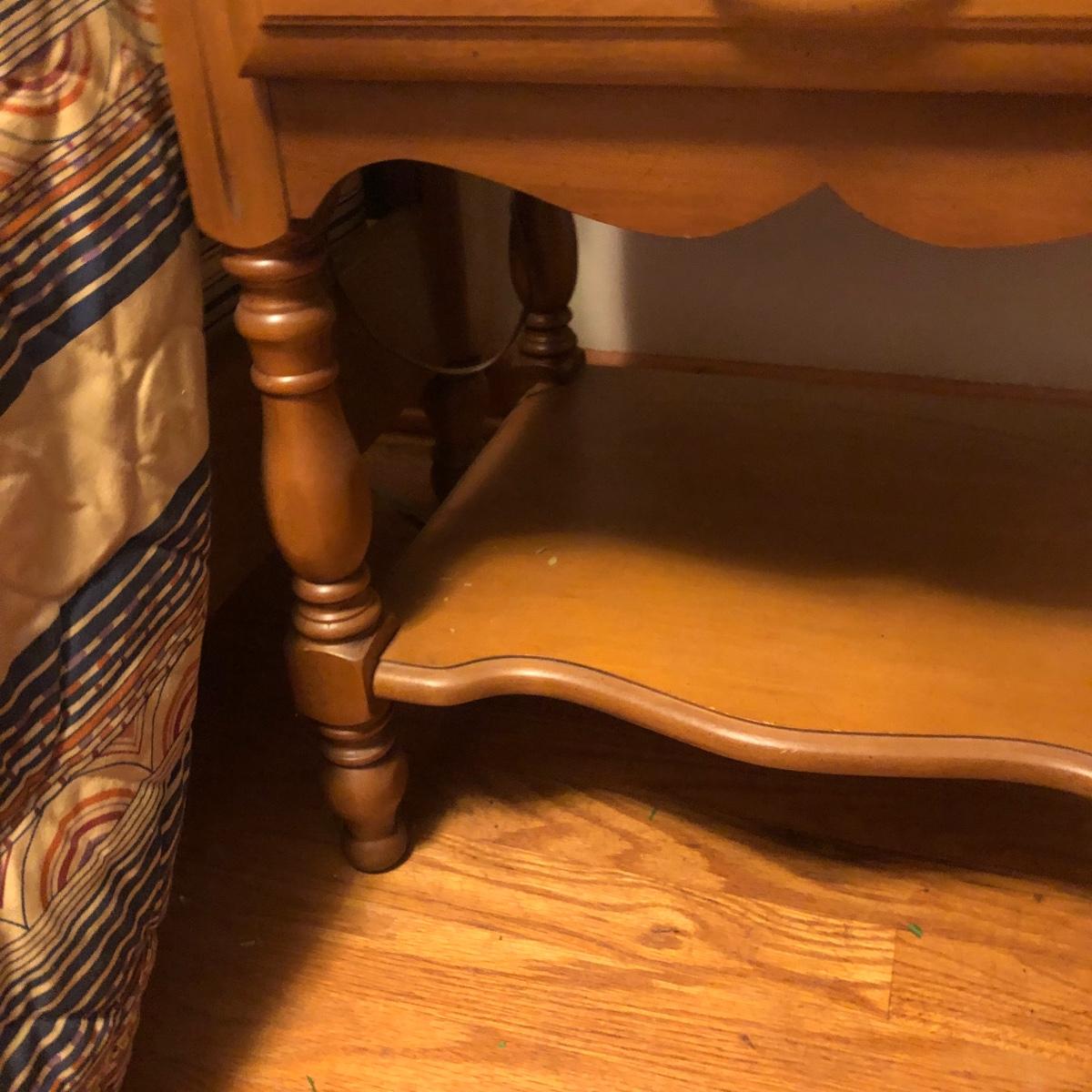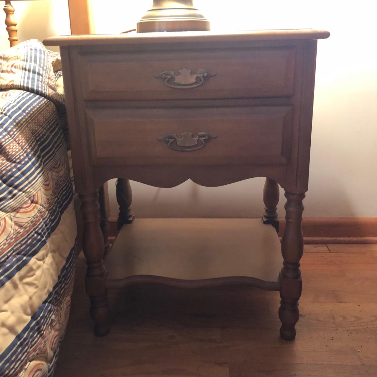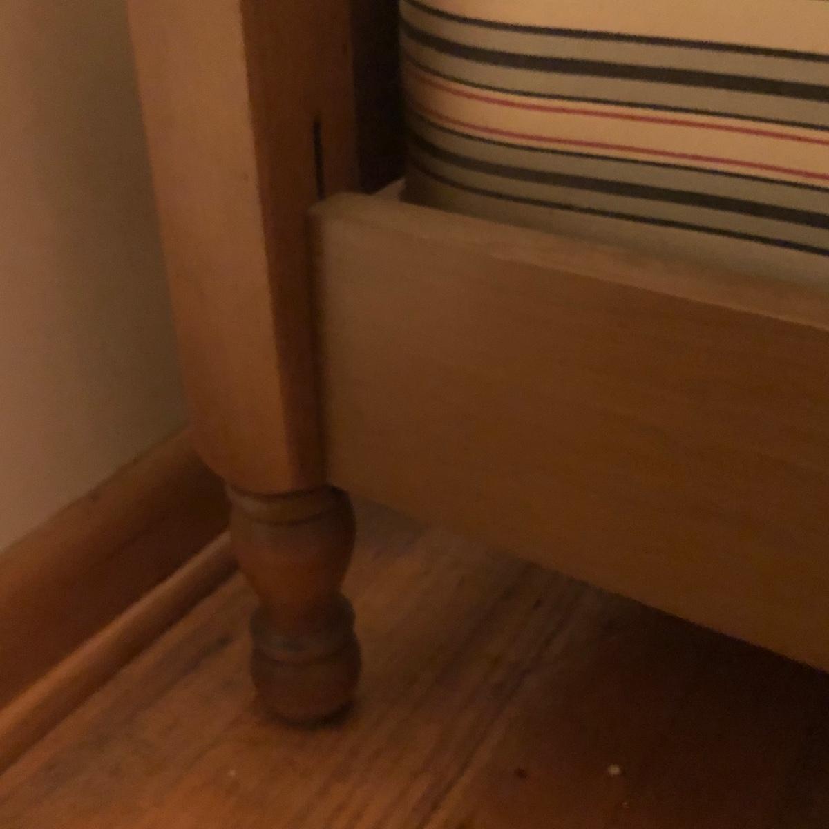 Furniture is located upstairs in the home. Must bring tools to disassemble bed. Bed measures 42W x 73D x 49H. Night stand measures 20W x 16.5D x 26H.