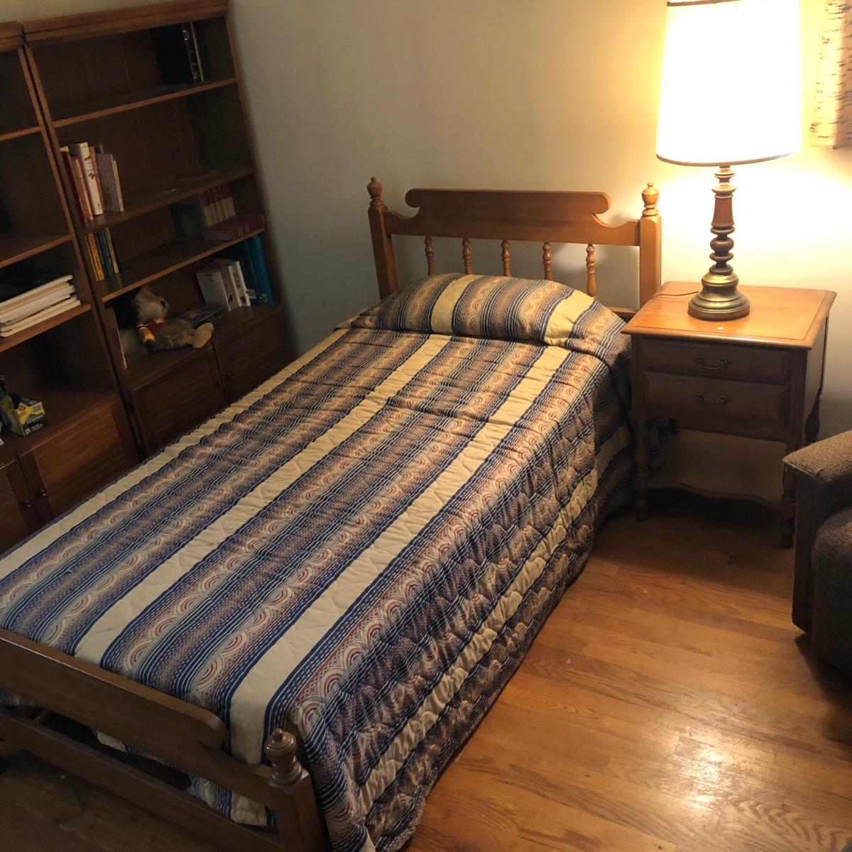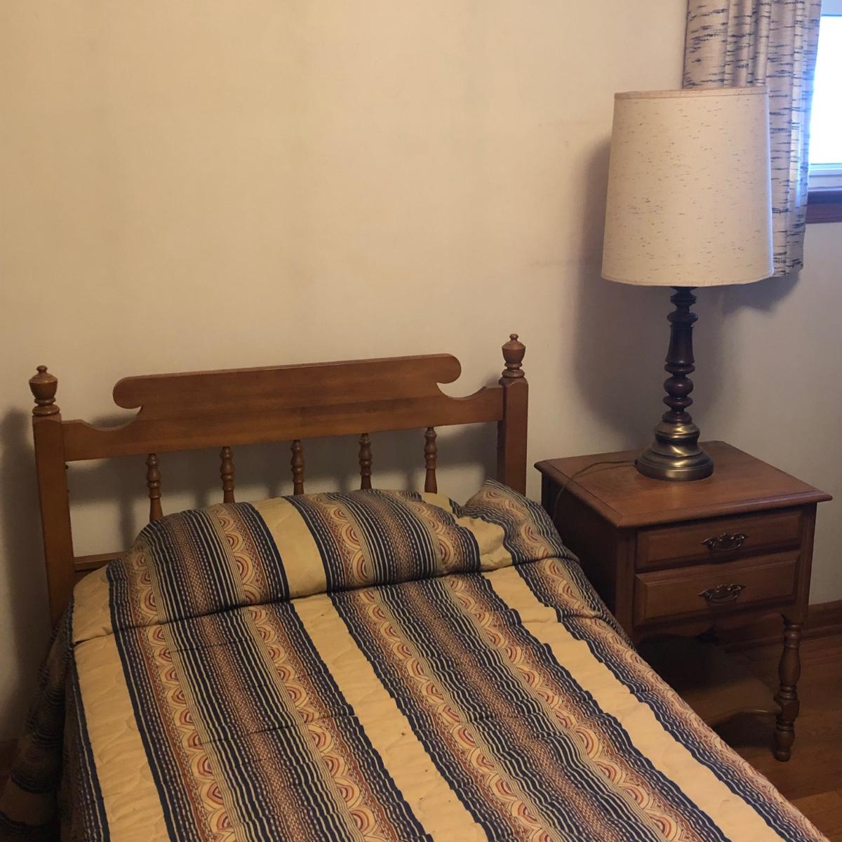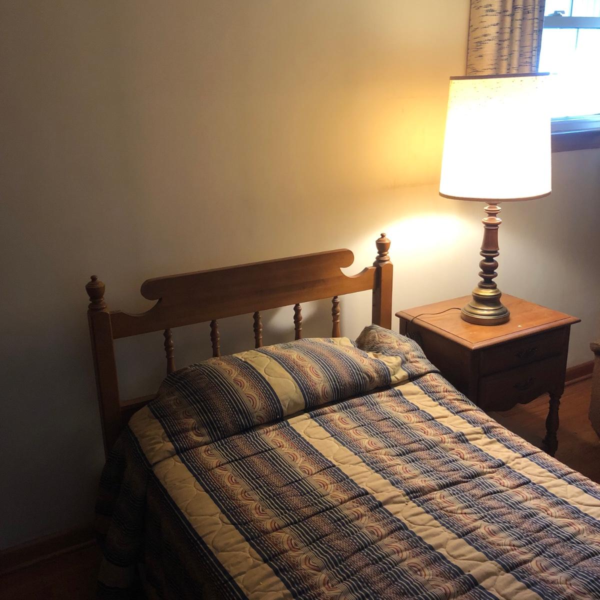 LOT 73M: Bedroom Furniture - Twin Bed, Sumter Cabinet Night Stand & Wooden Lamp