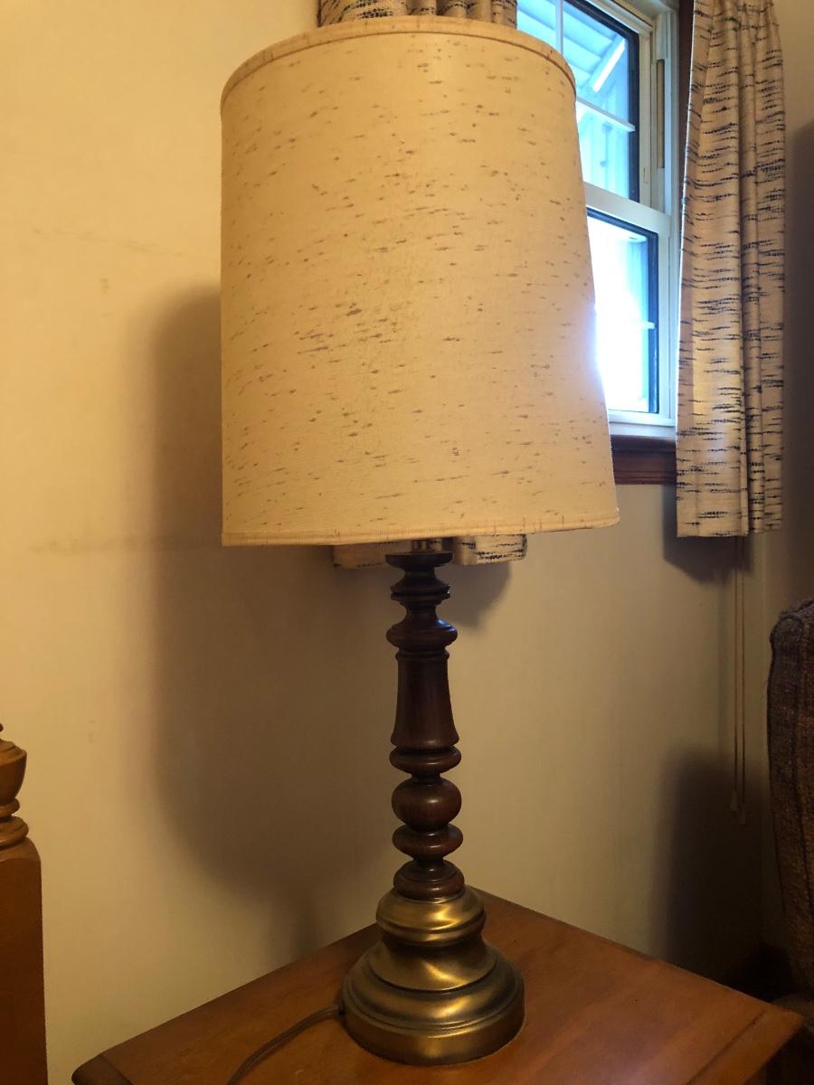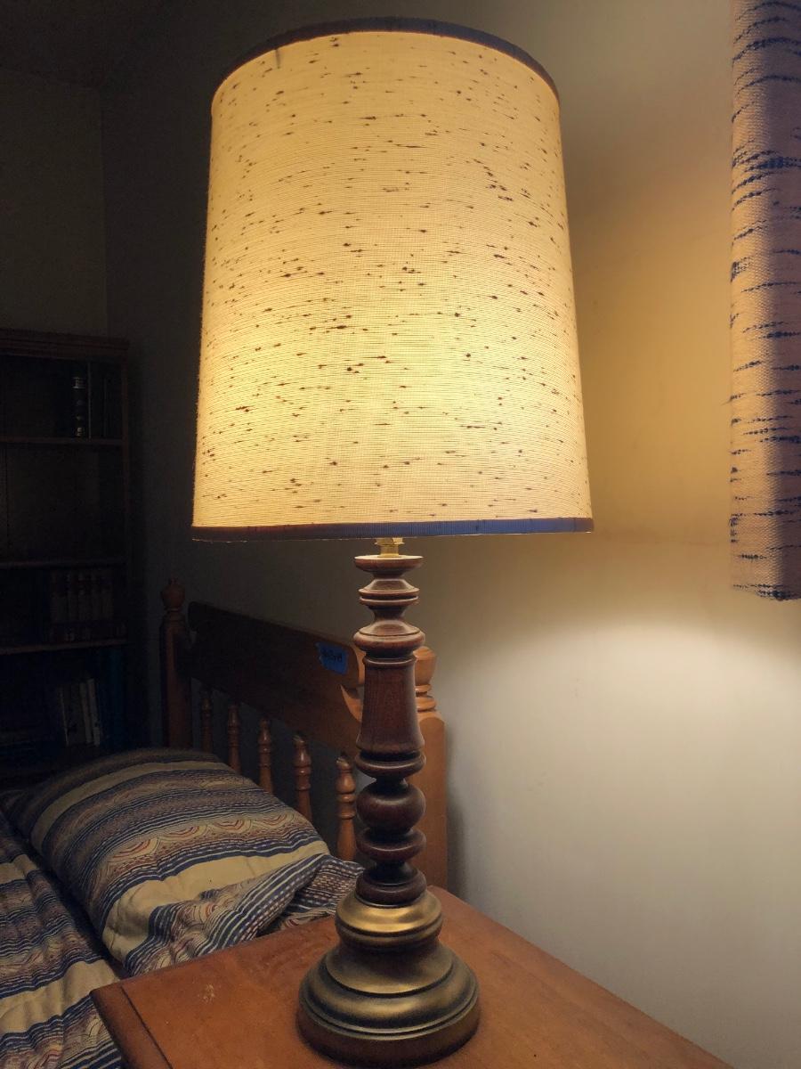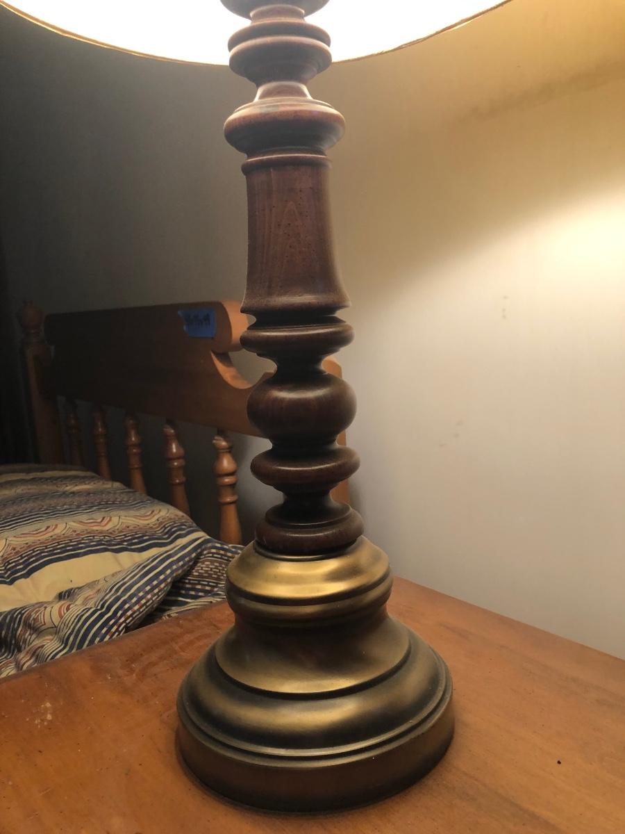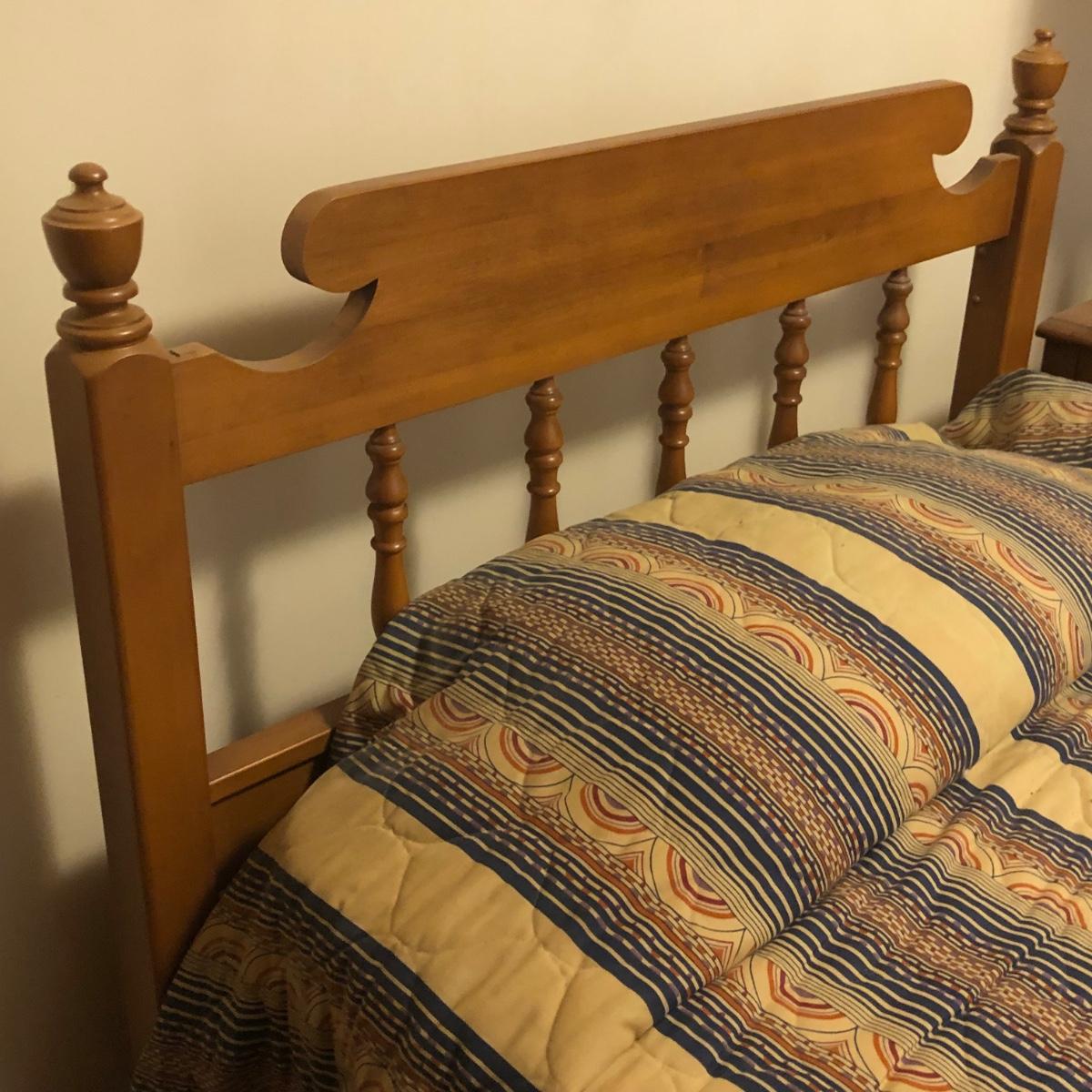 LOT 73M: Bedroom Furniture - Twin Bed, Sumter Cabinet Night Stand & Wooden Lamp
