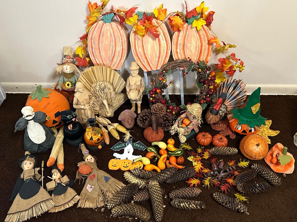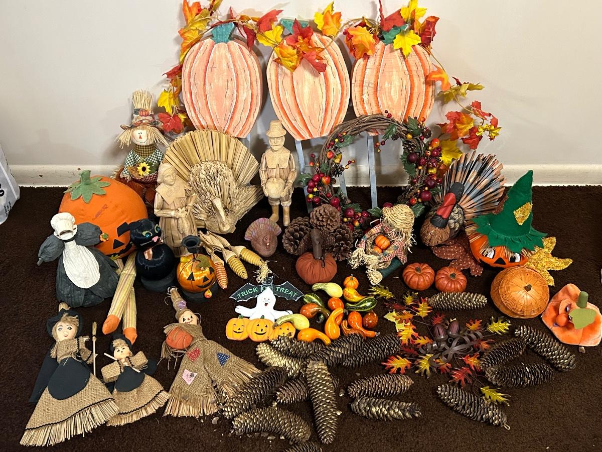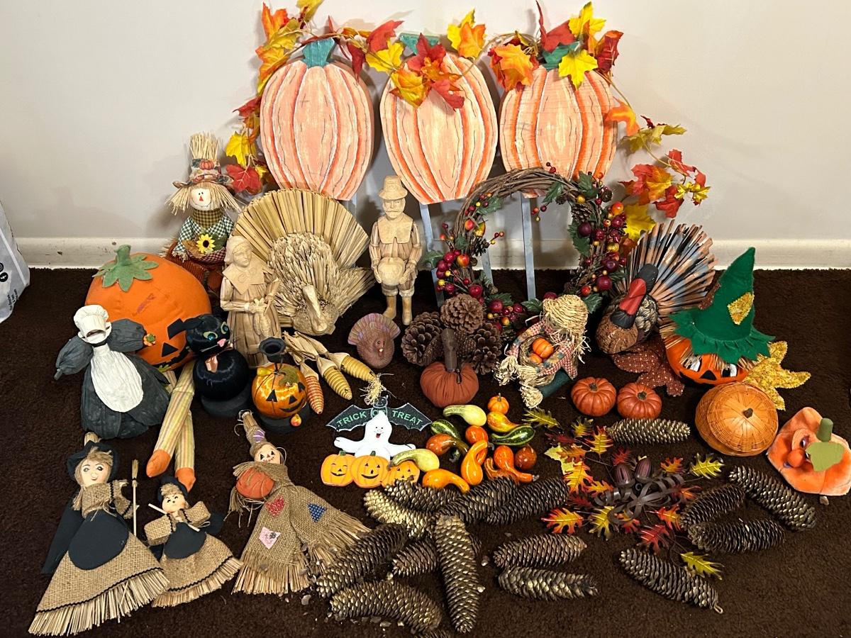 Lot includes indoor and outdoor fall, halloween and thanksgiving decor.