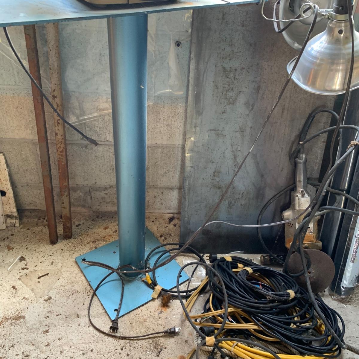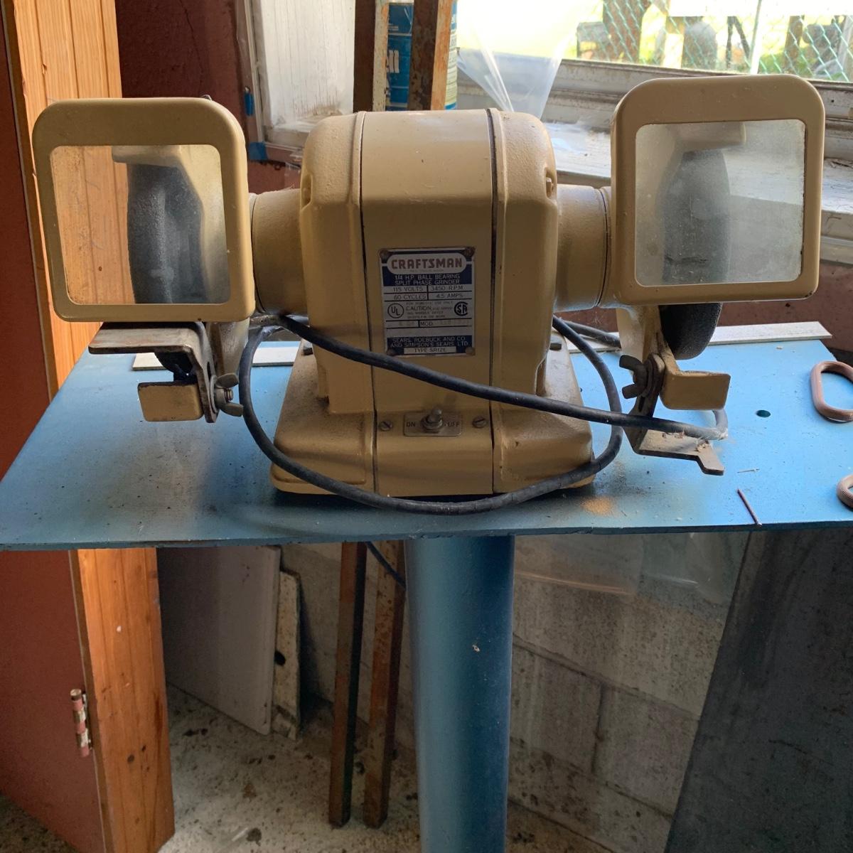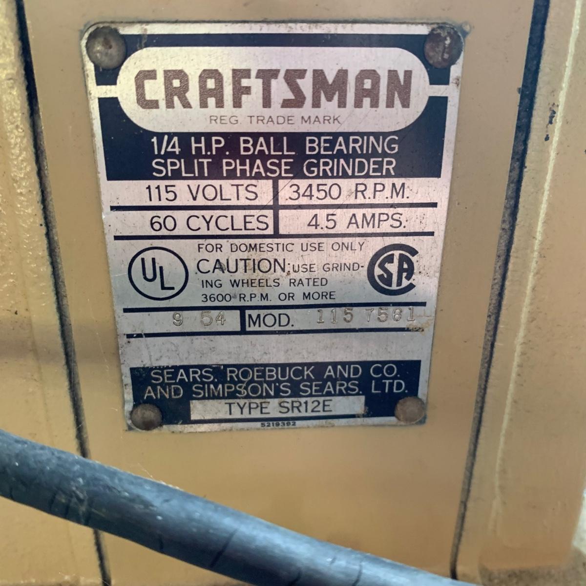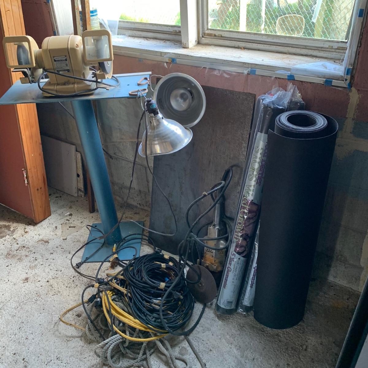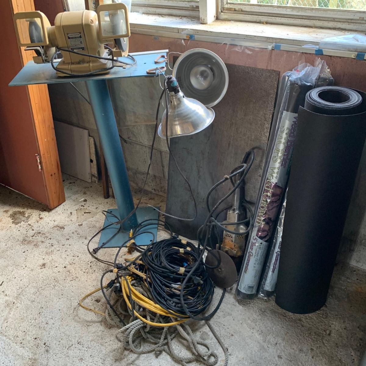 LOT 114R: Craftsman 1/4H.P. Grinder, Lights, Steel Plate, Weed Barriers & More