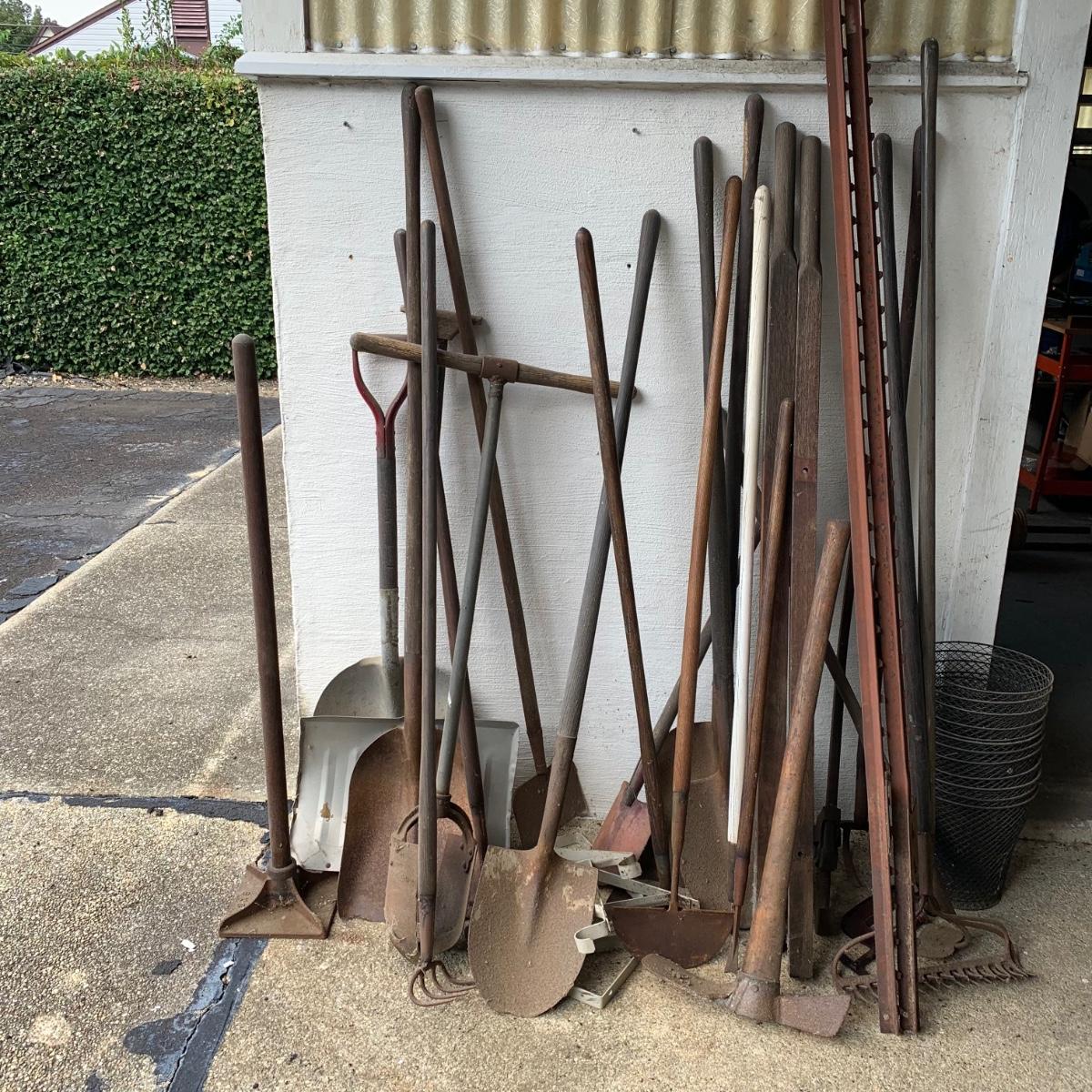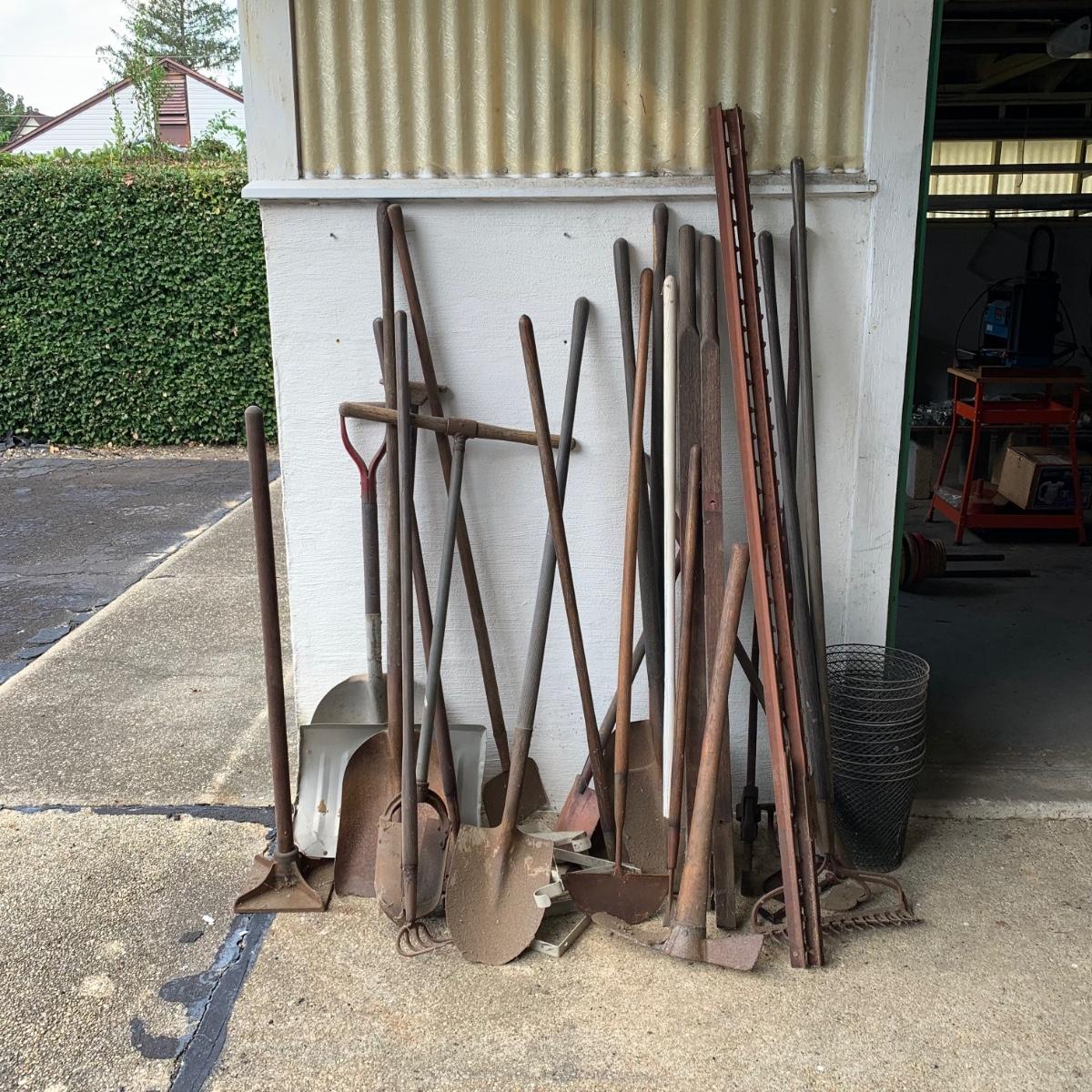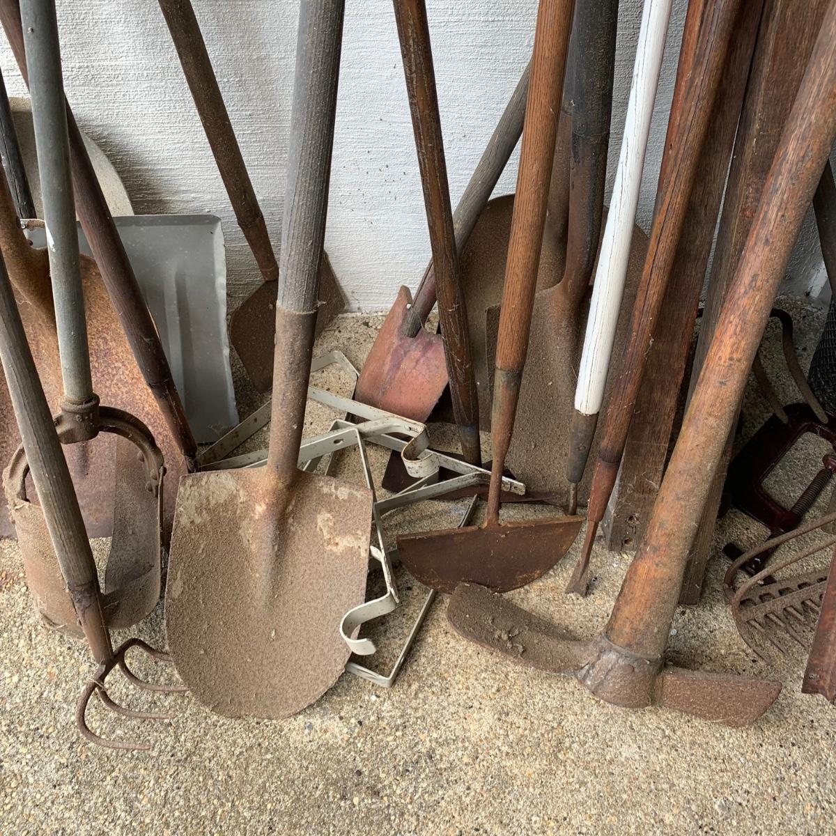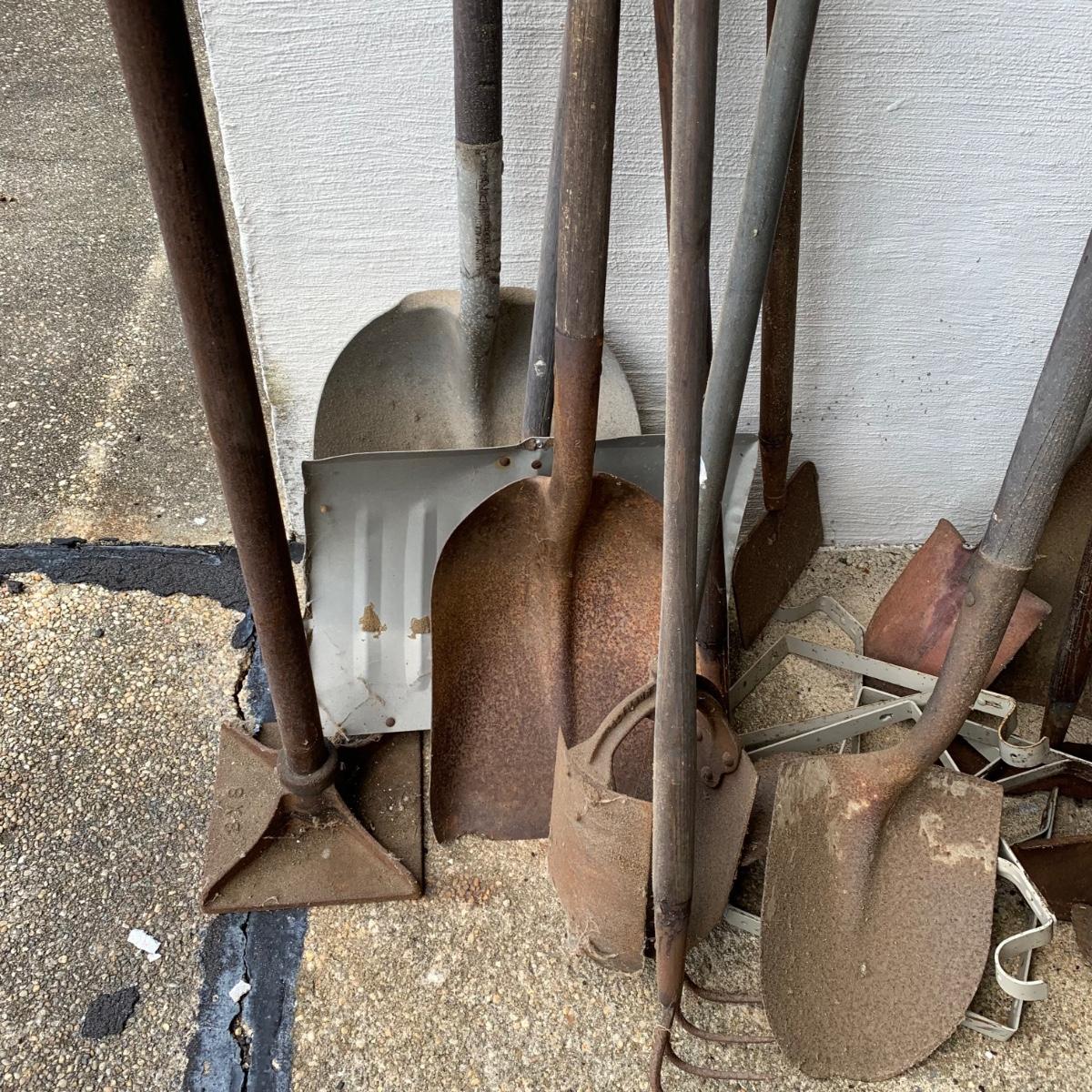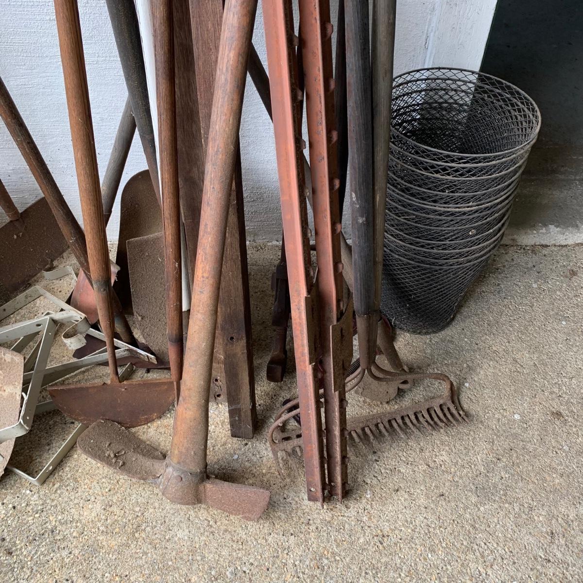 LOT 126R: Outdoor Gardening Tools: Rakes, Shovels, Fence Post Etc.