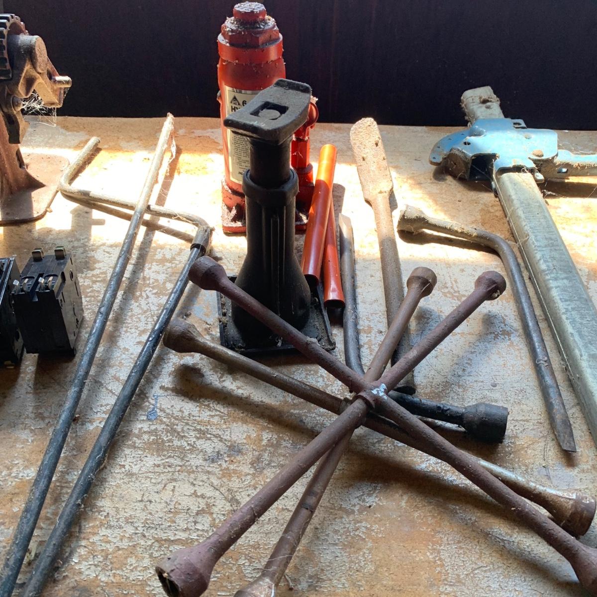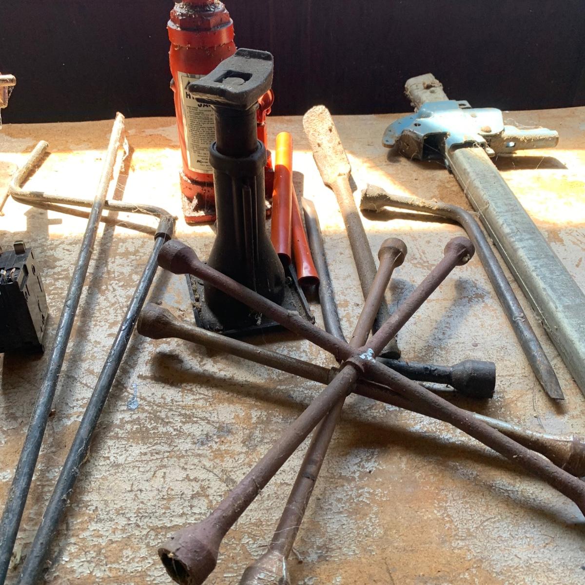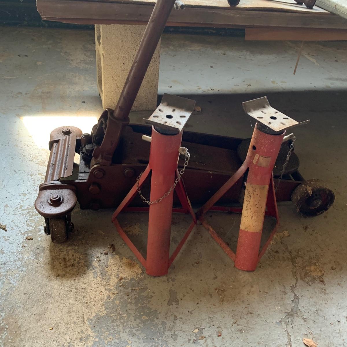 LOT 132R: Rolling Floor Jack, Jack Stands, Lug Wrench & More