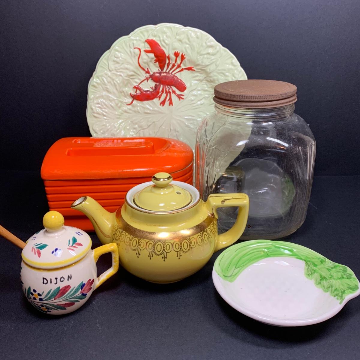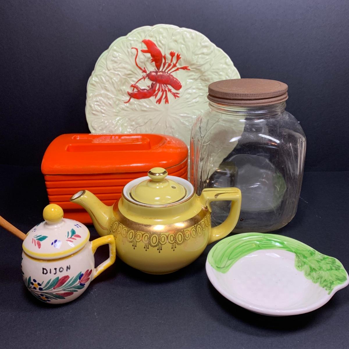 LOT 147R: Hall Westinghouse Refrigerator Dish w/Lid, Hall Teapot, Carlton Ware Lobster Plates, & More