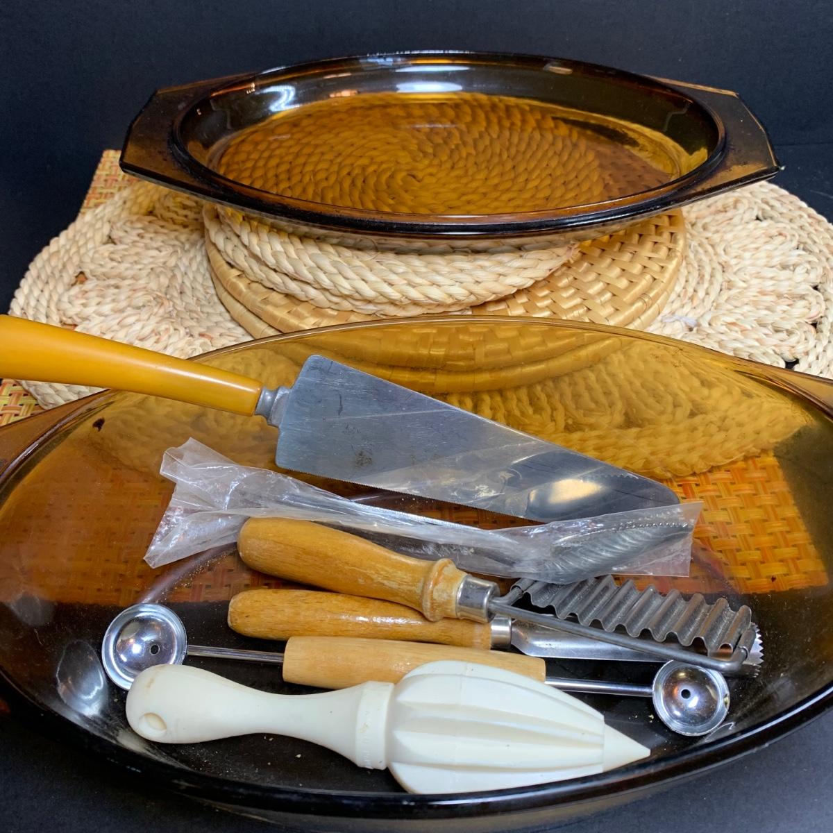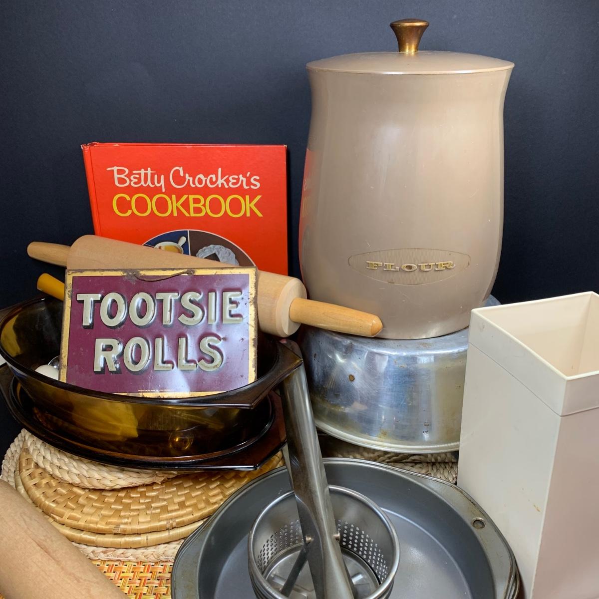 LOT 149R: Mixed Kitchen Collection: Toaster Covers, Tootsie Roll Sign, Bakeware, Gadgets & More