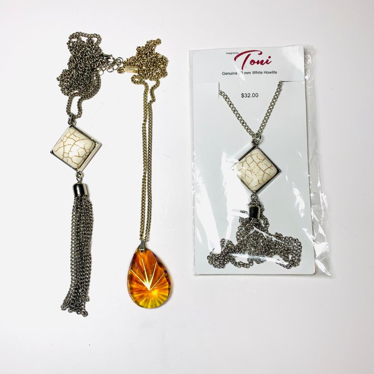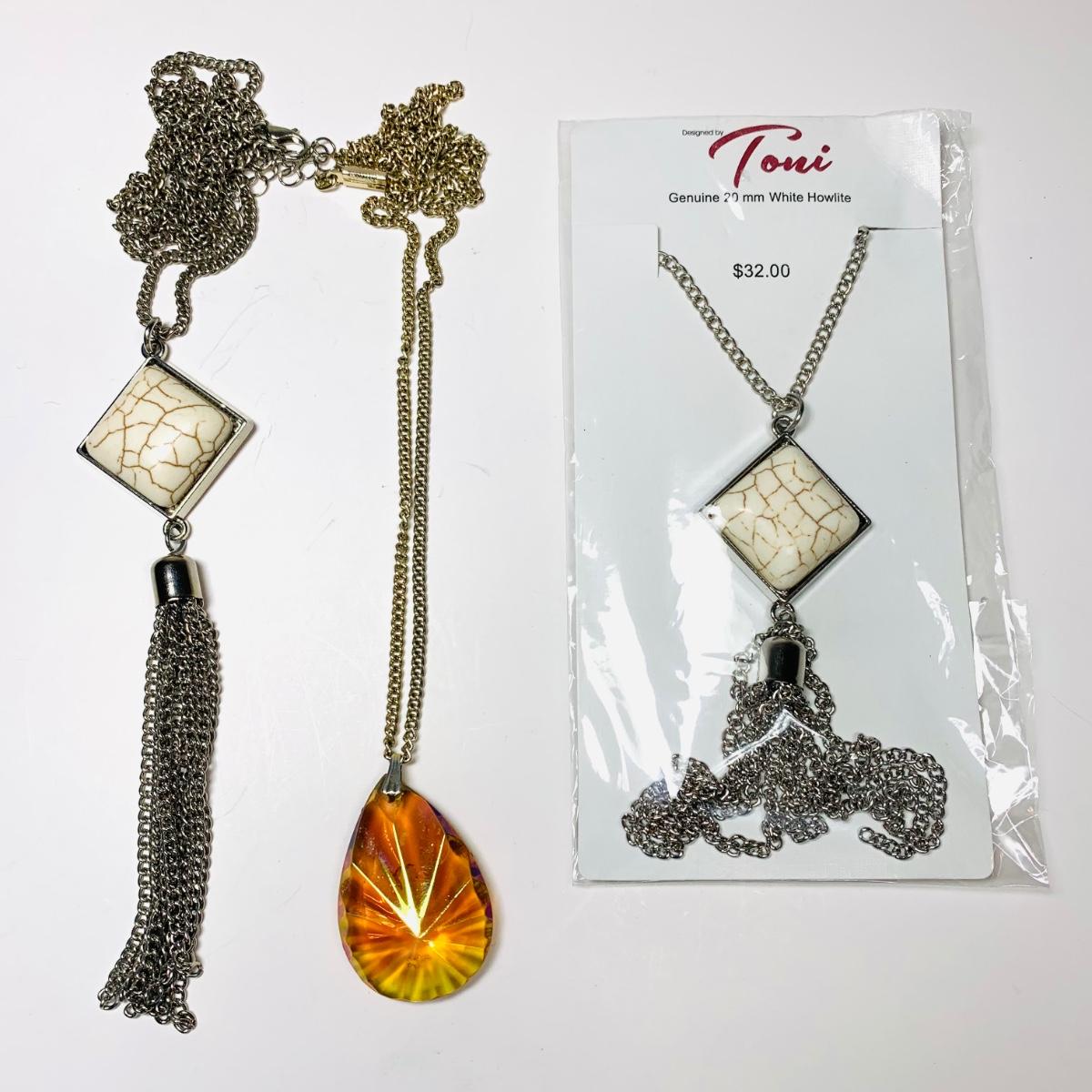 LOT 154R: Glass Pendant Necklace & Toni Genuine White Howlite Pendant Necklaces: 1 NIP