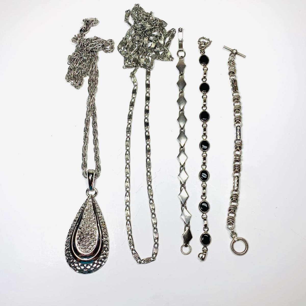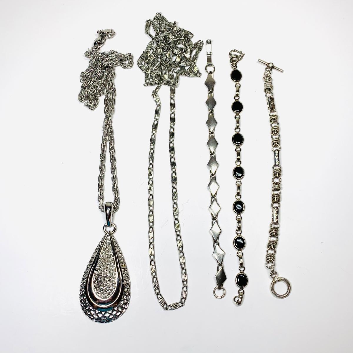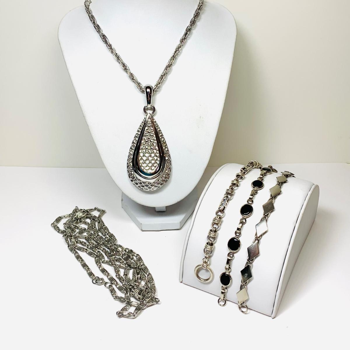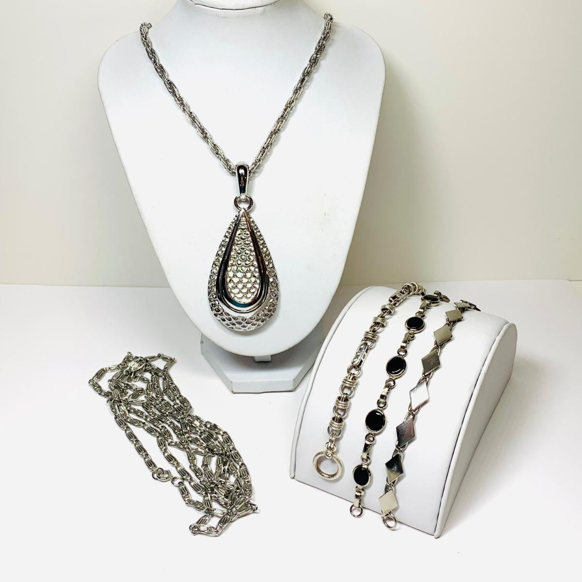 LOT 155R: Silver Tone Necklaces & Bracelets featuring a Monet Pendant Necklace