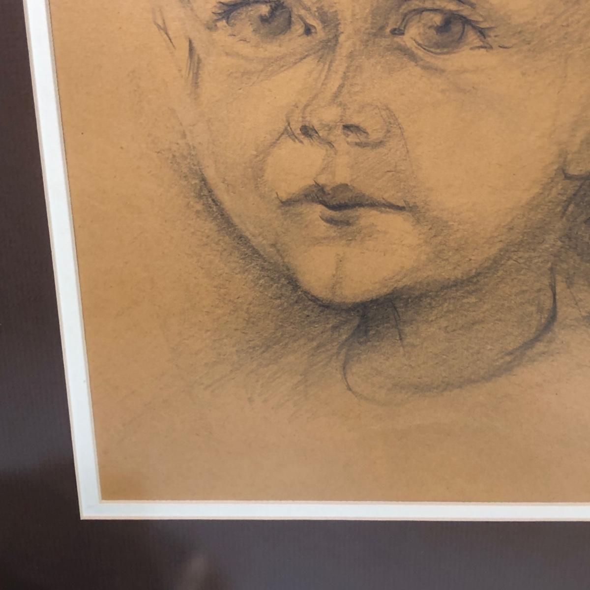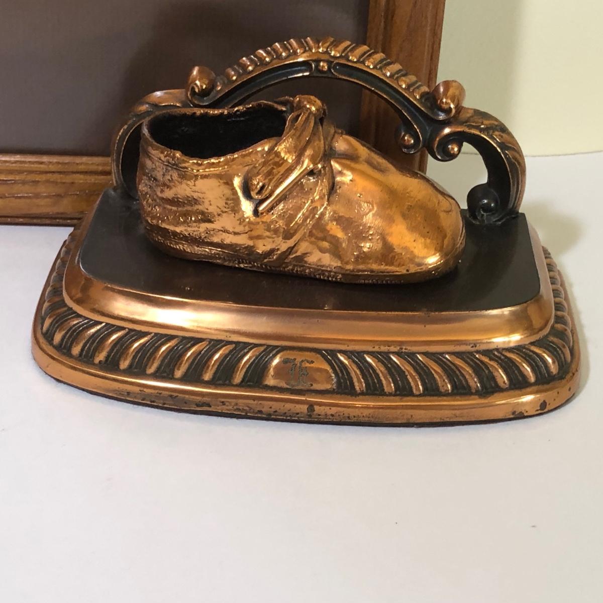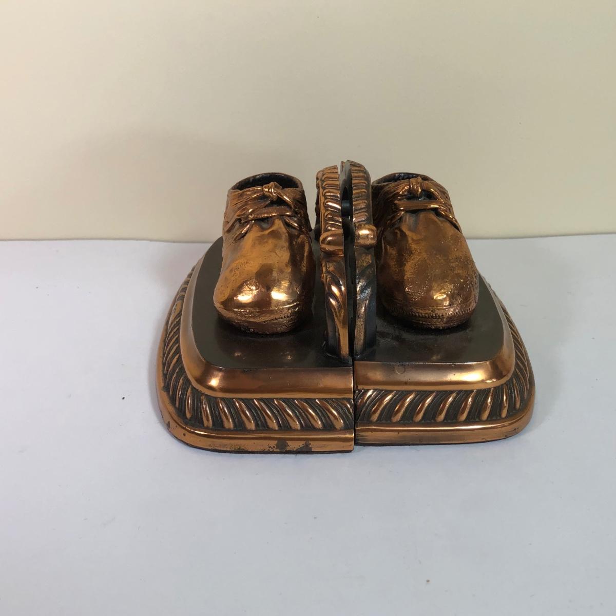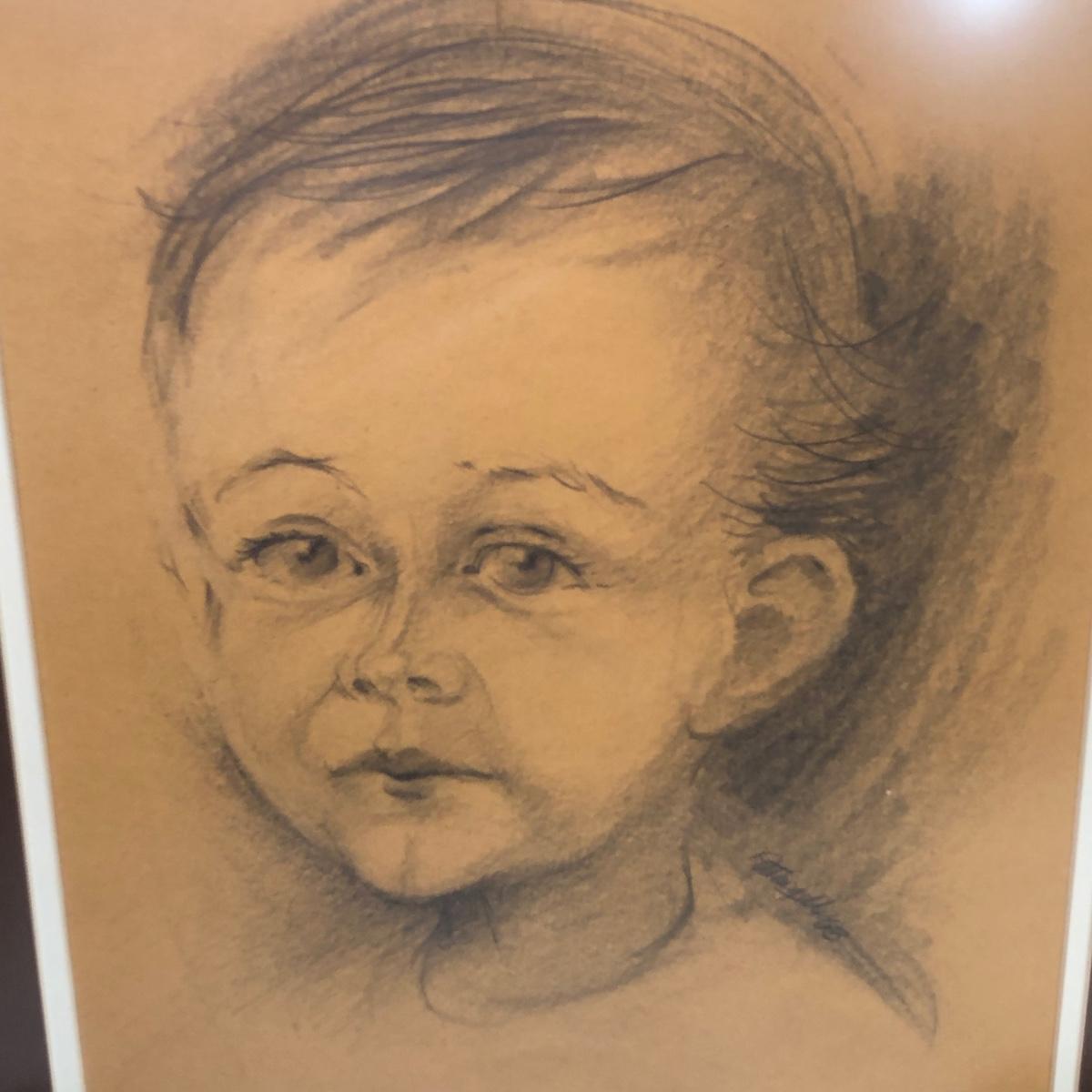 LOT 166M: Signed Baby Drawn Portrait & Bronze Baby Shoes Bookends