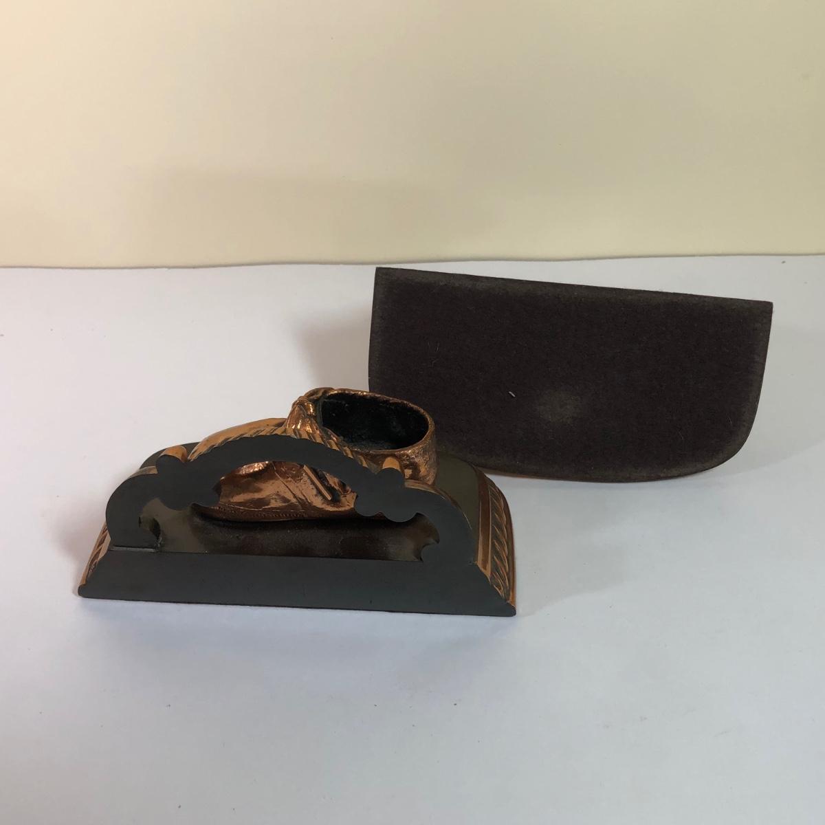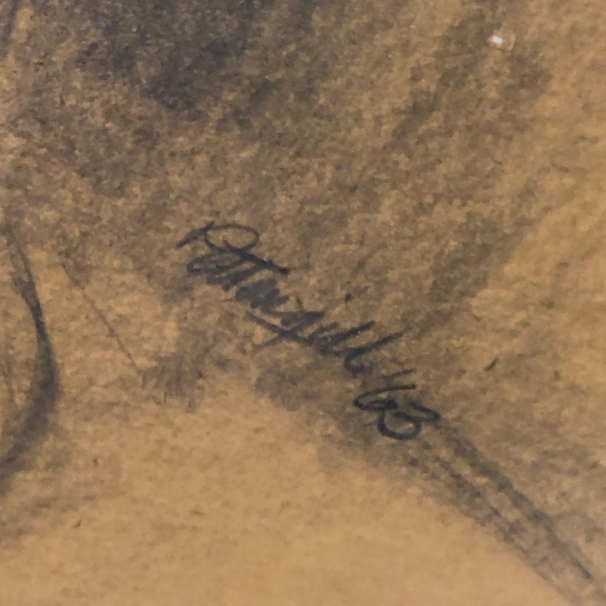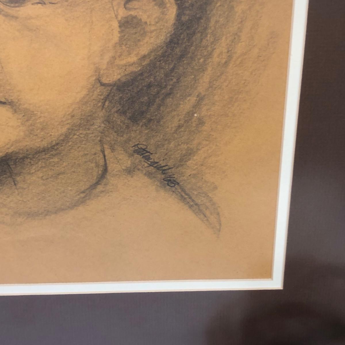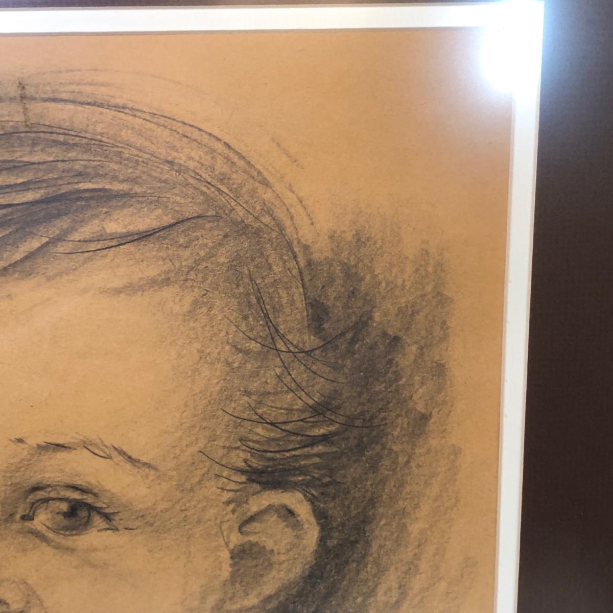 LOT 166M: Signed Baby Drawn Portrait & Bronze Baby Shoes Bookends