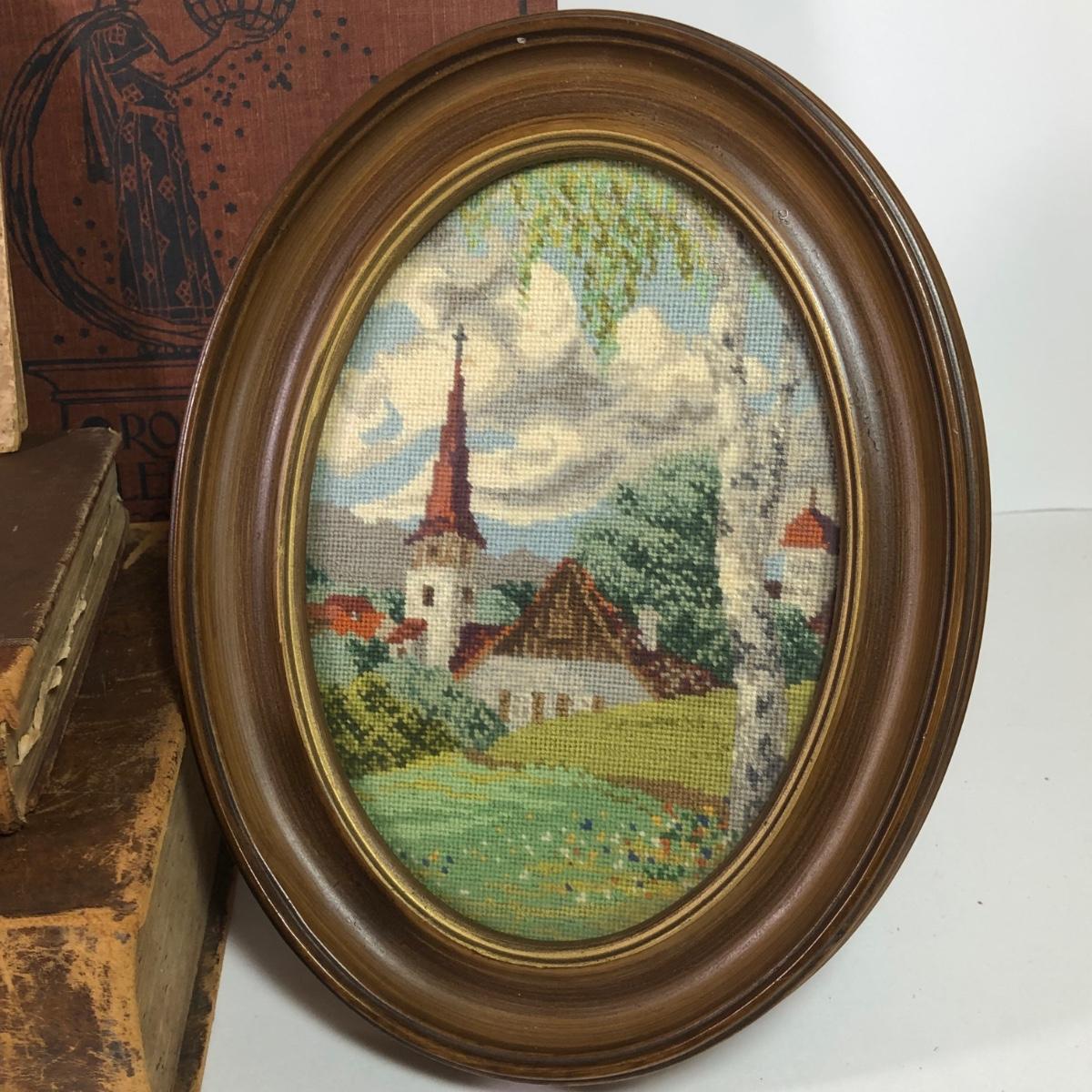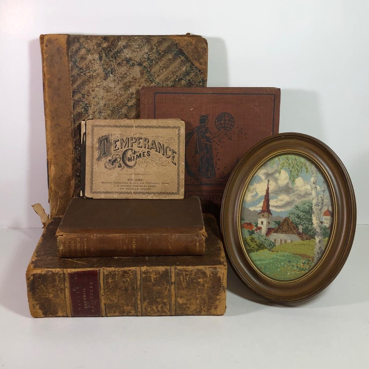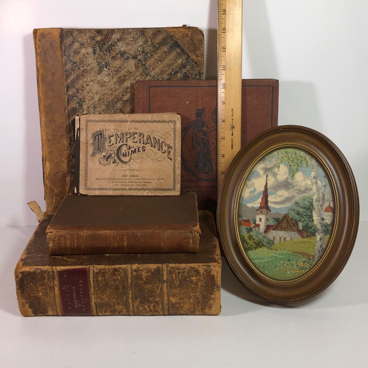 LOT 170M: Antique Books & Oval Framed Cross Stitch