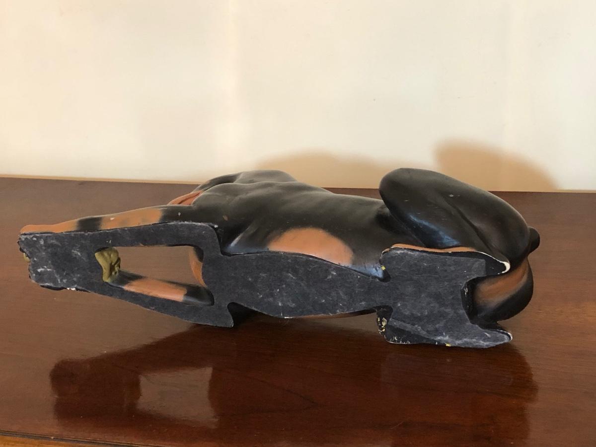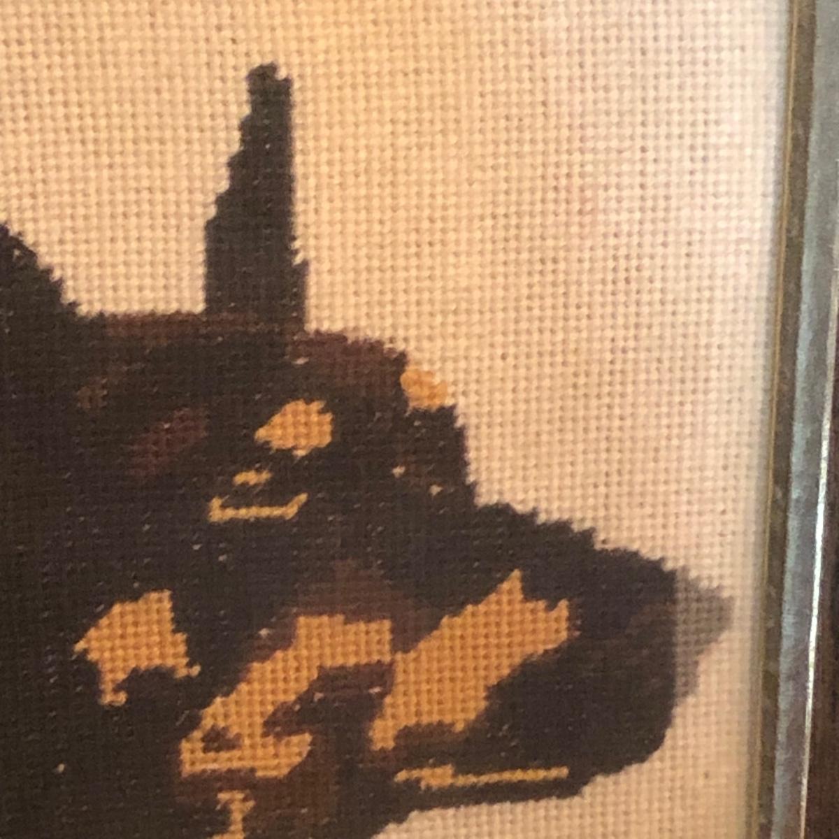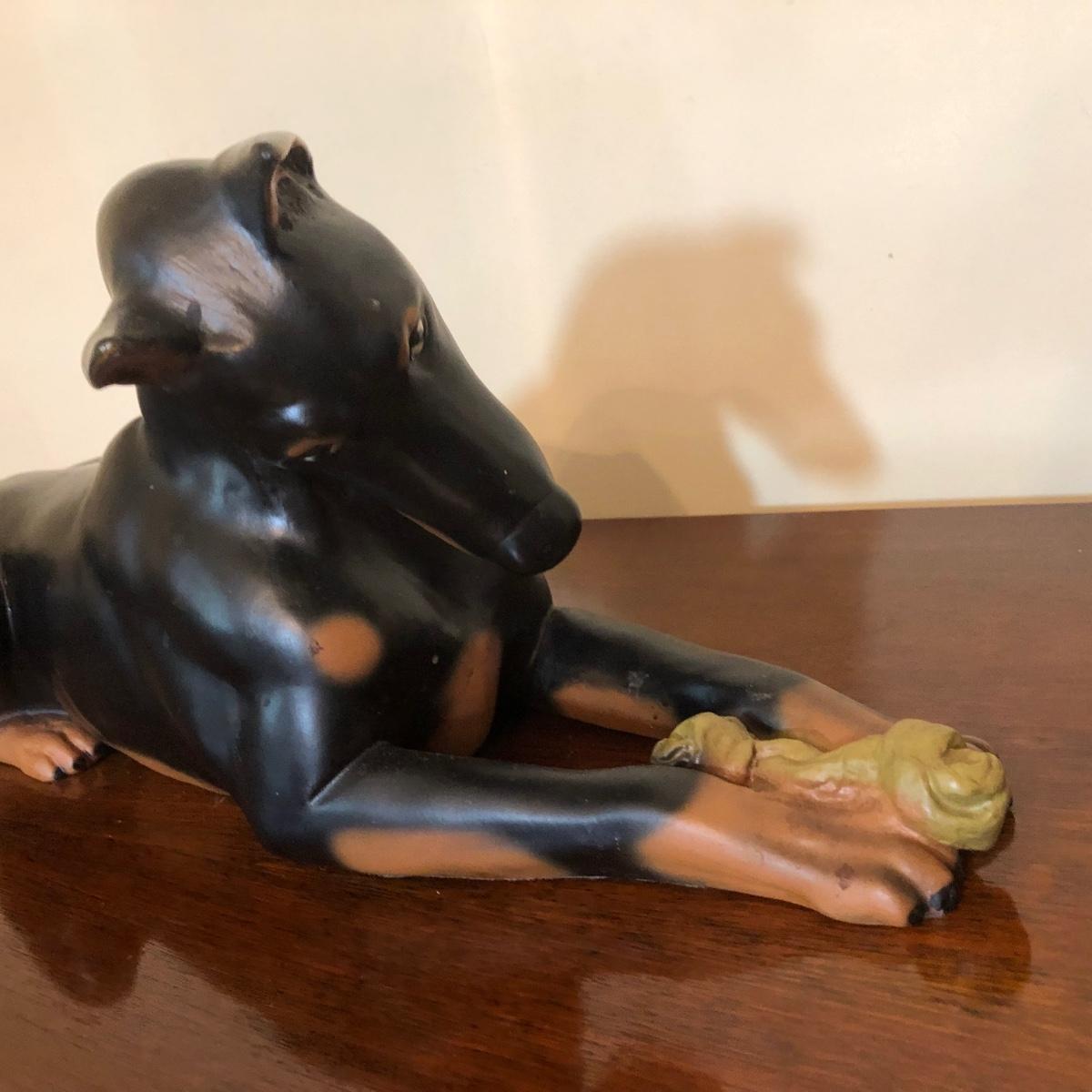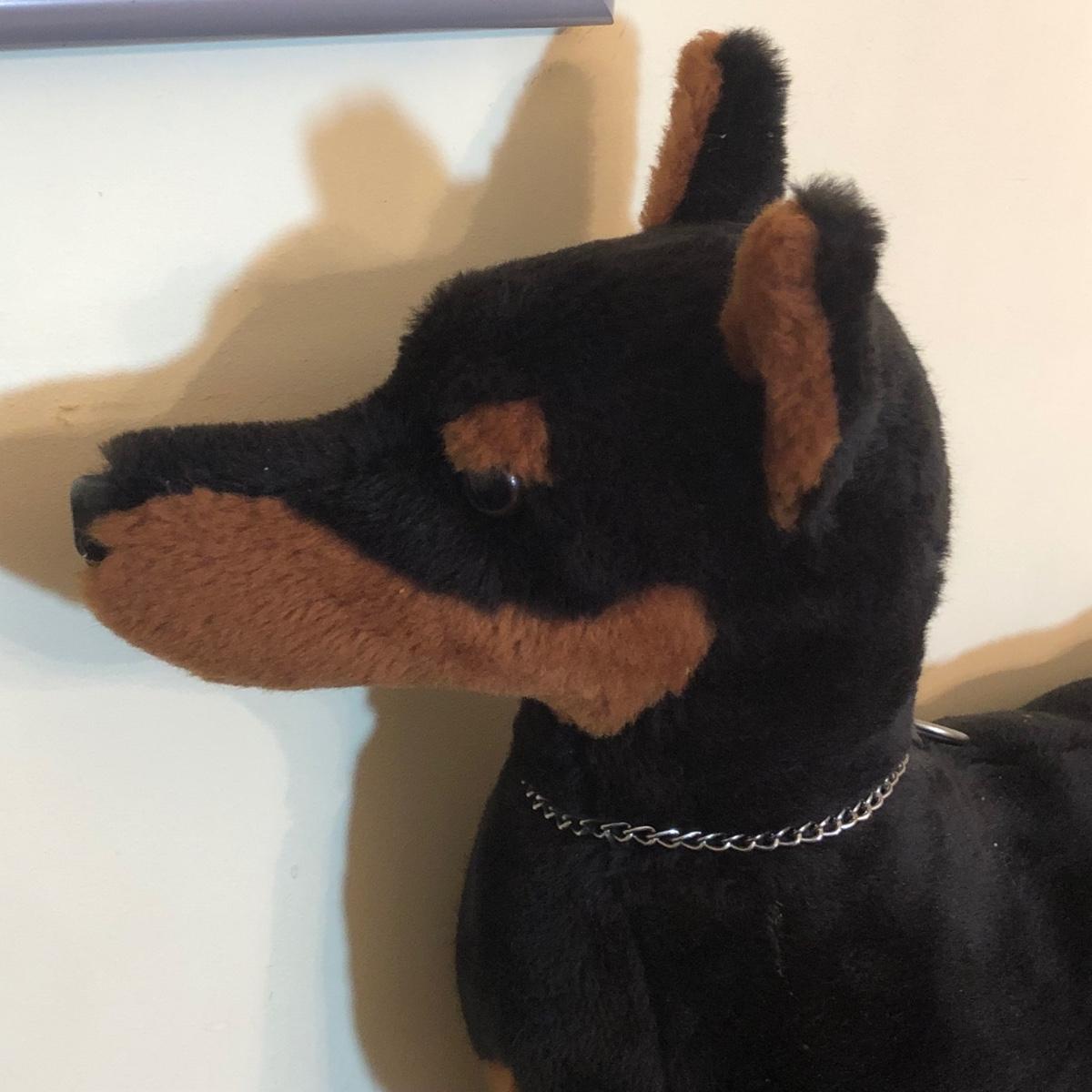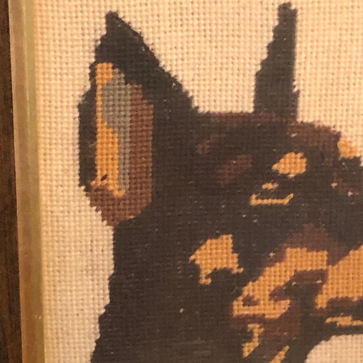 LOT 175M: Doberman Collection - Statue, Large Stuffed Animal & Framed Cross Stitch