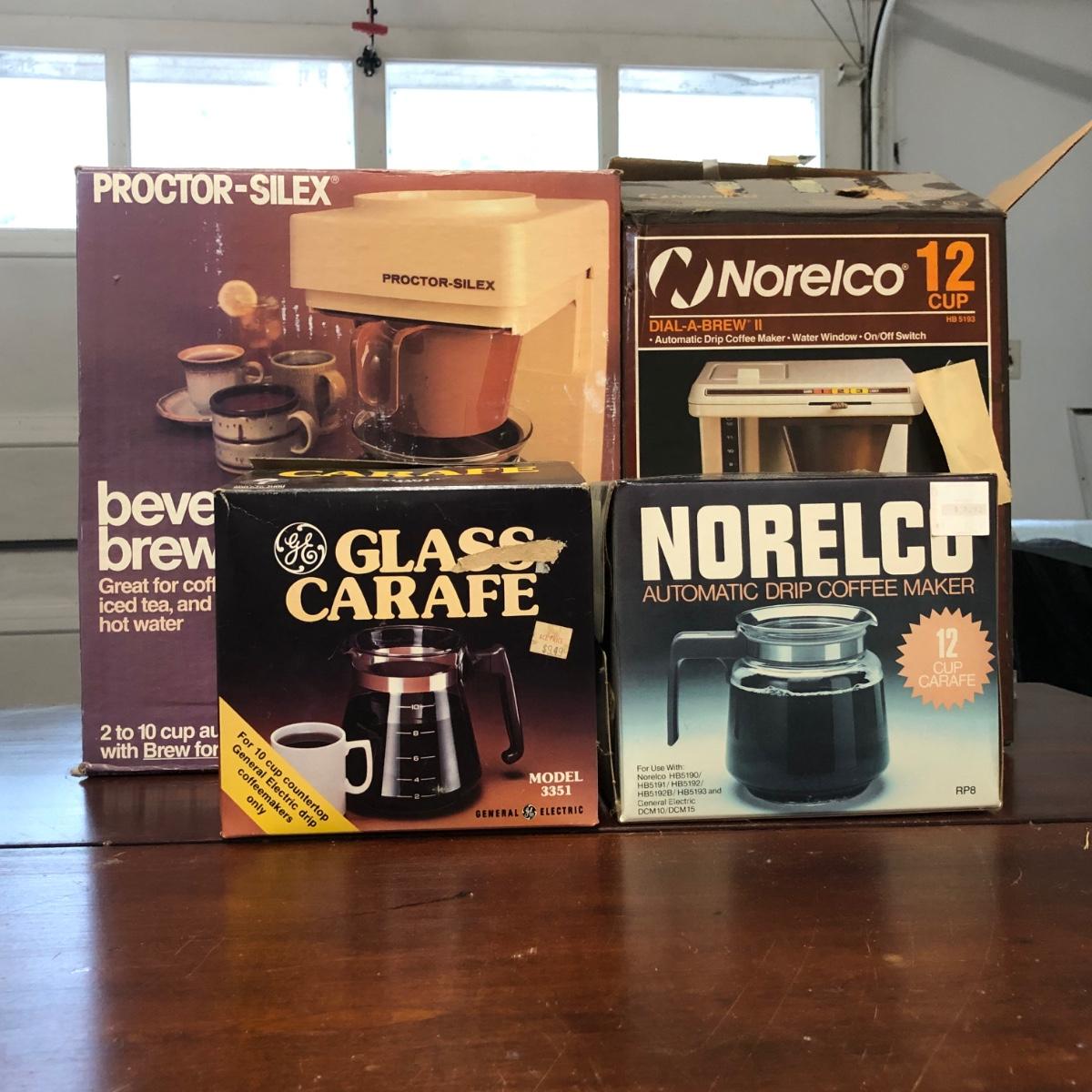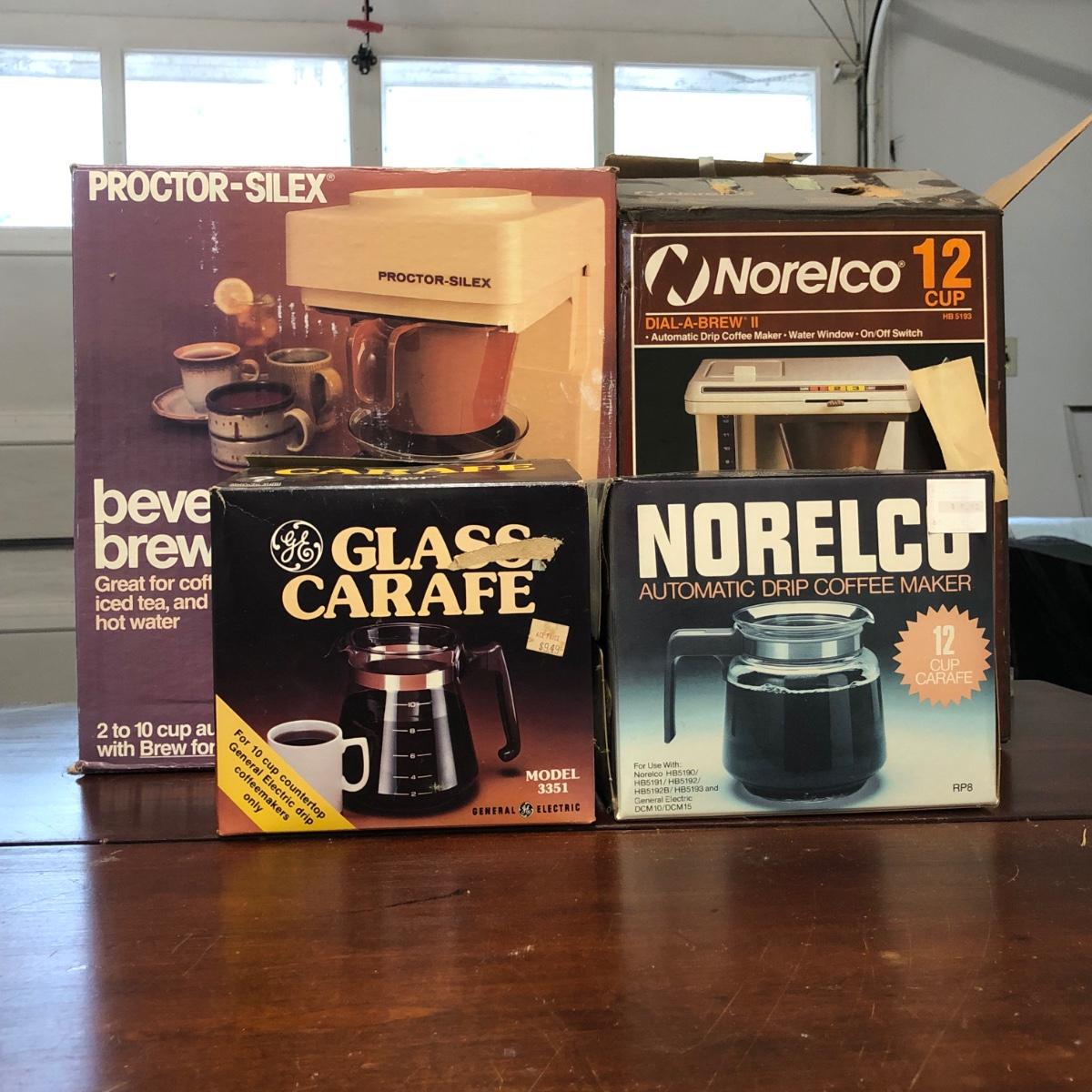 LOT 182M: Coffee Machines & Pots in Boxes - Proctor-Silex, Norelco & GE