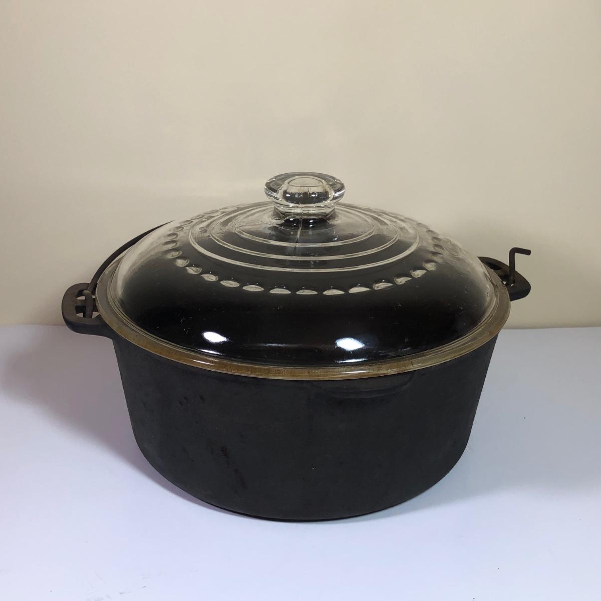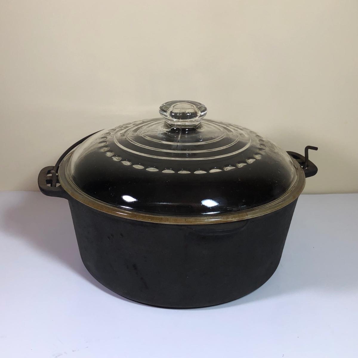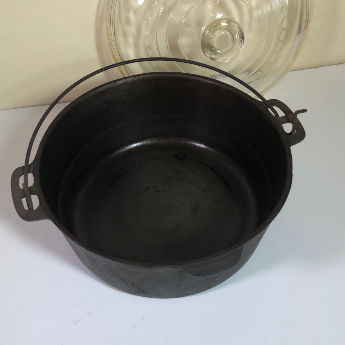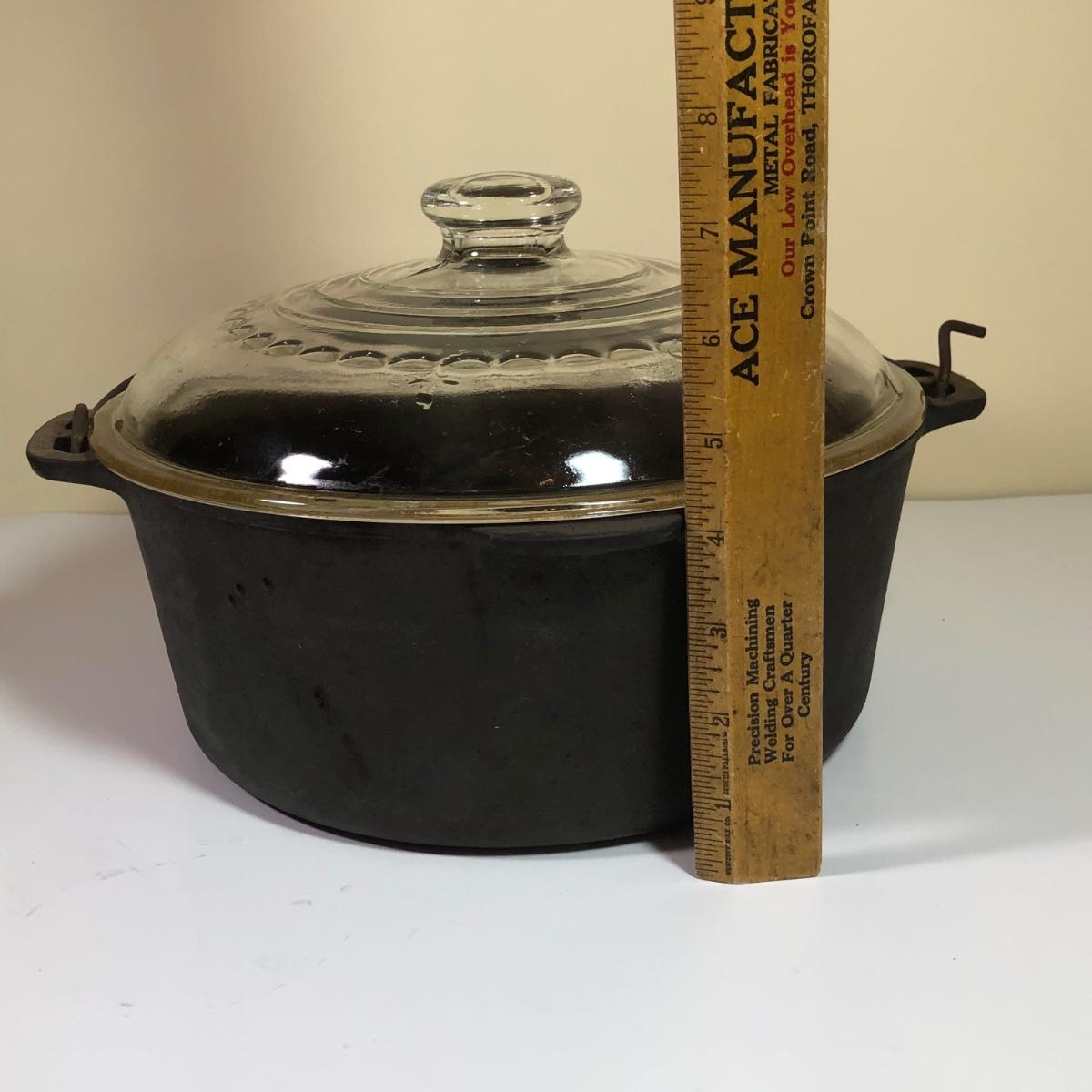 LOT 185M: WagnerWare Cast Iron Stock Pot w/ Glass Lid