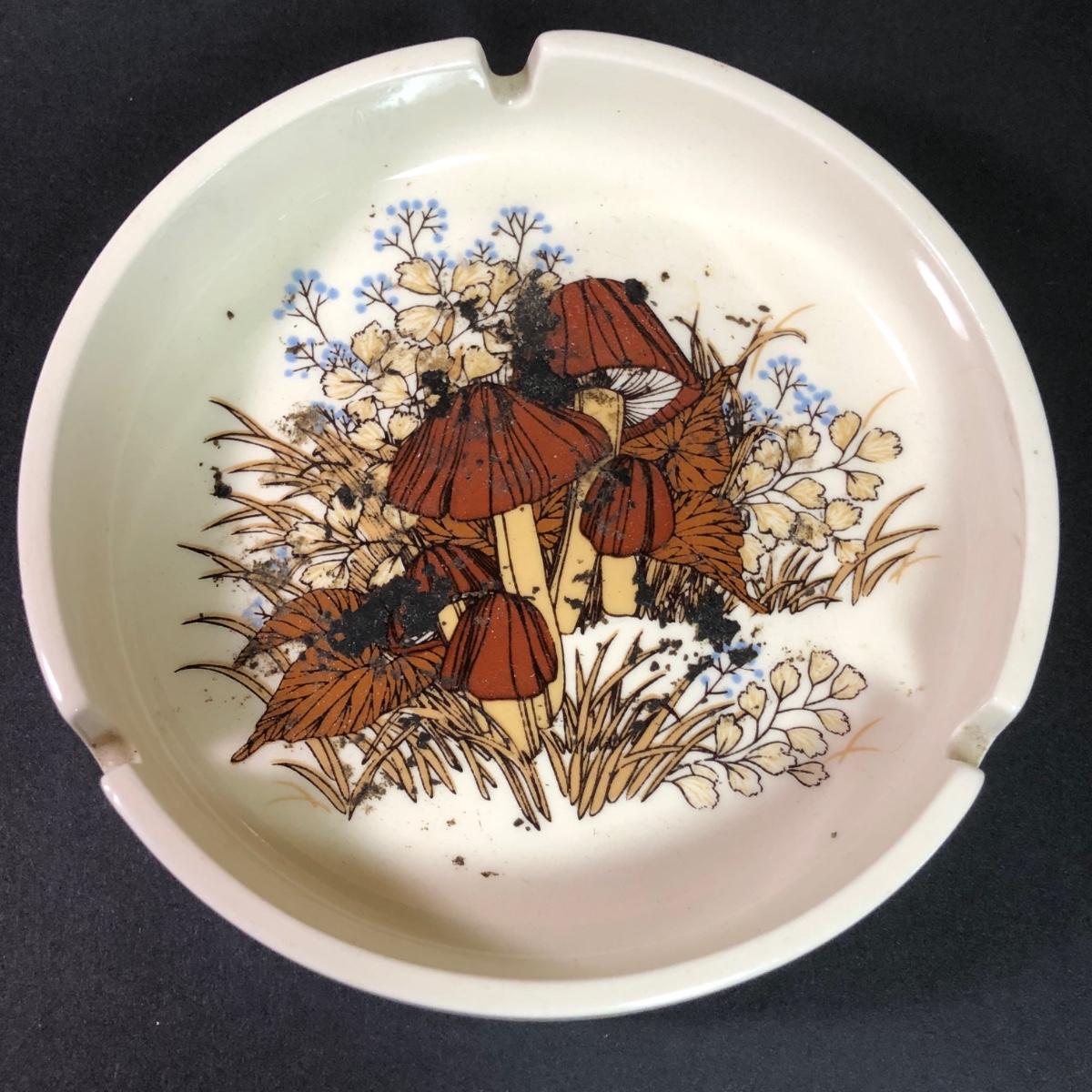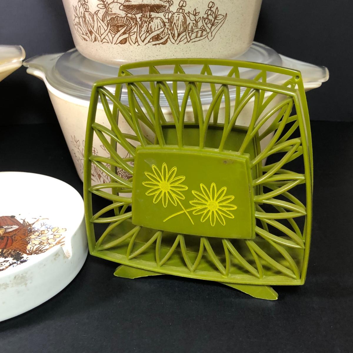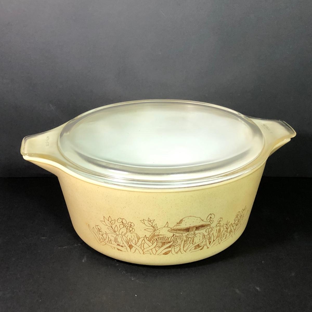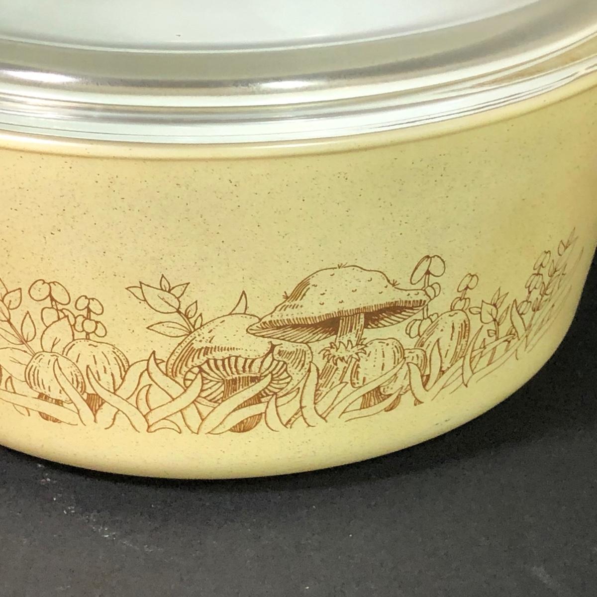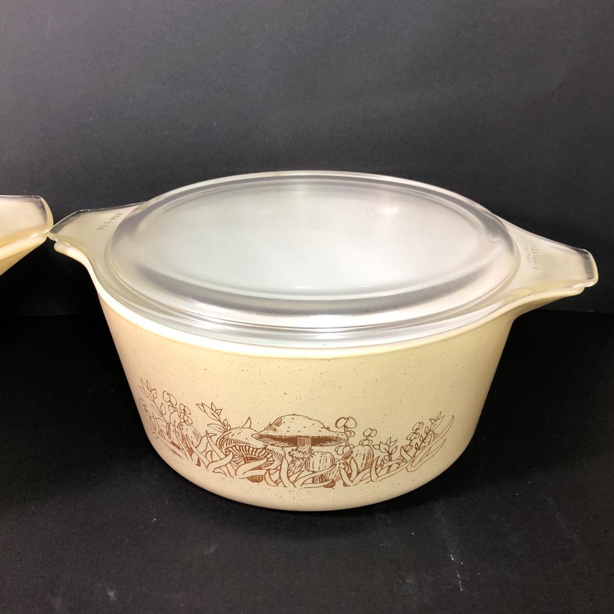 LOT 189: Corning Ware Fall Mushroom Pattern Baking Dishes w/ Matching Pyrex Lids, Otagiri Mushroom Ash Tray & More